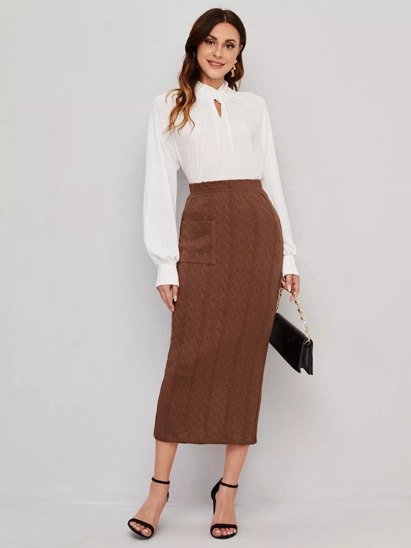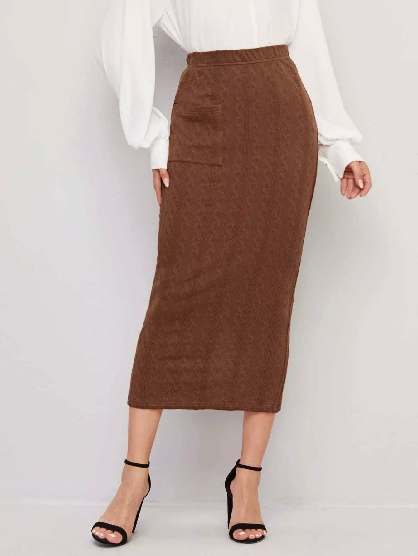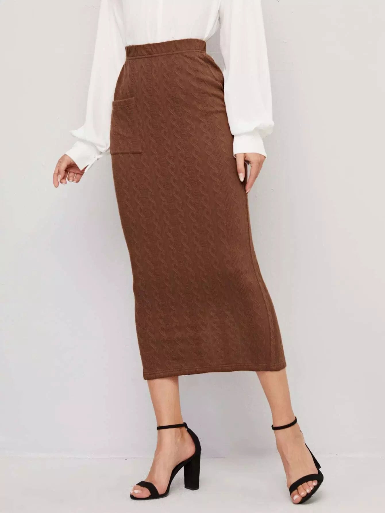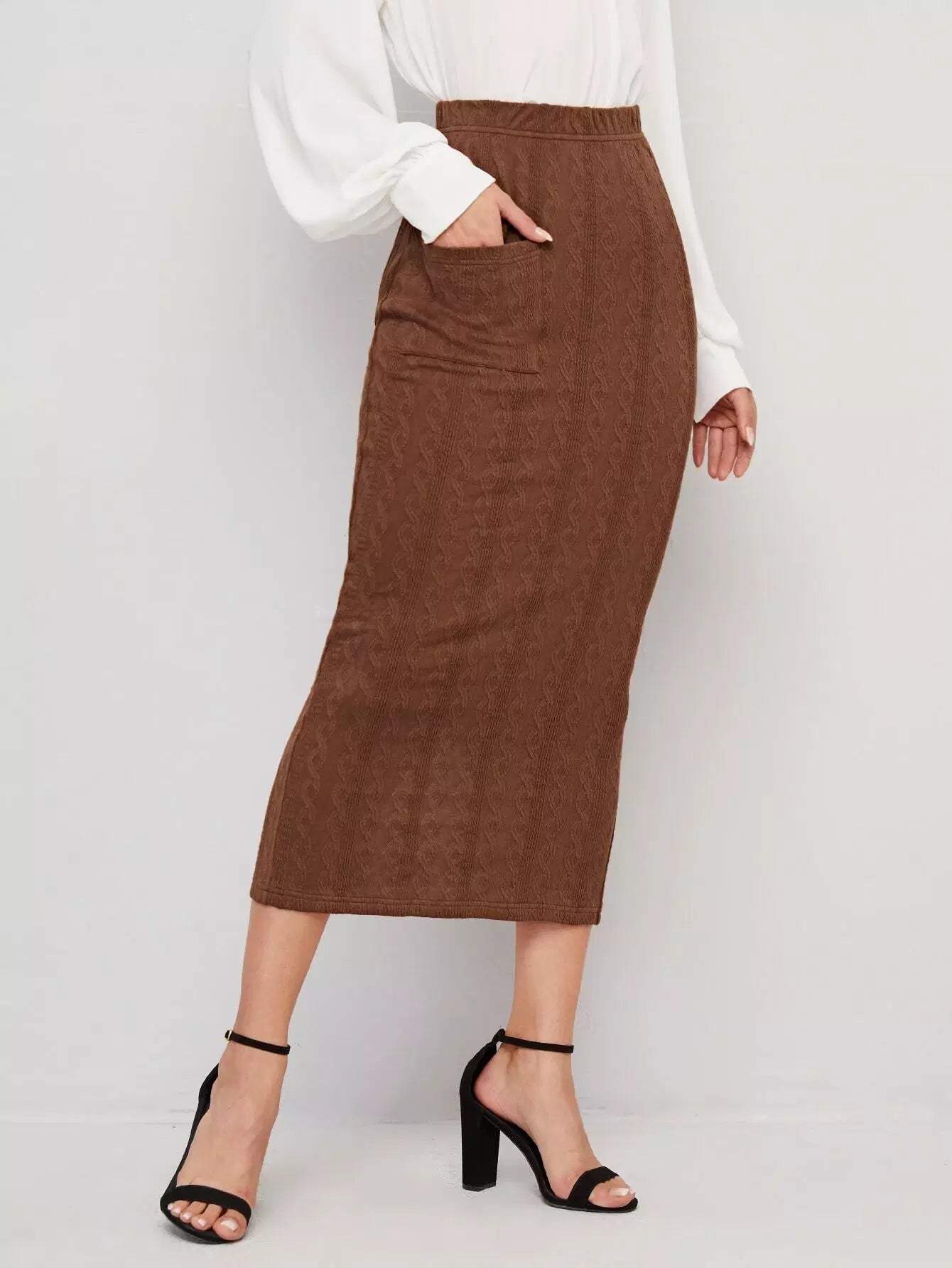 تنورة محبوكة بجيب أمامي كابل محبوكة