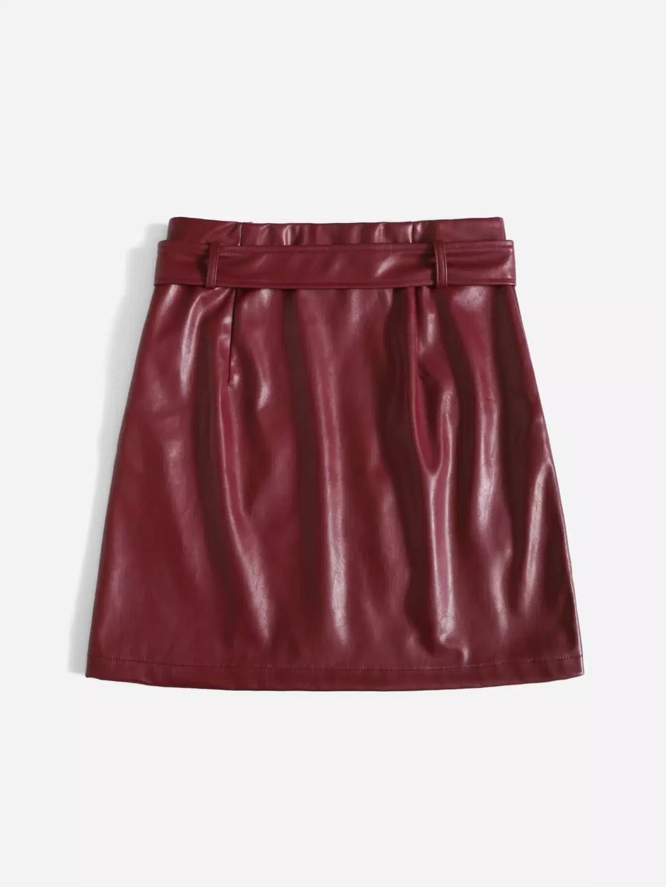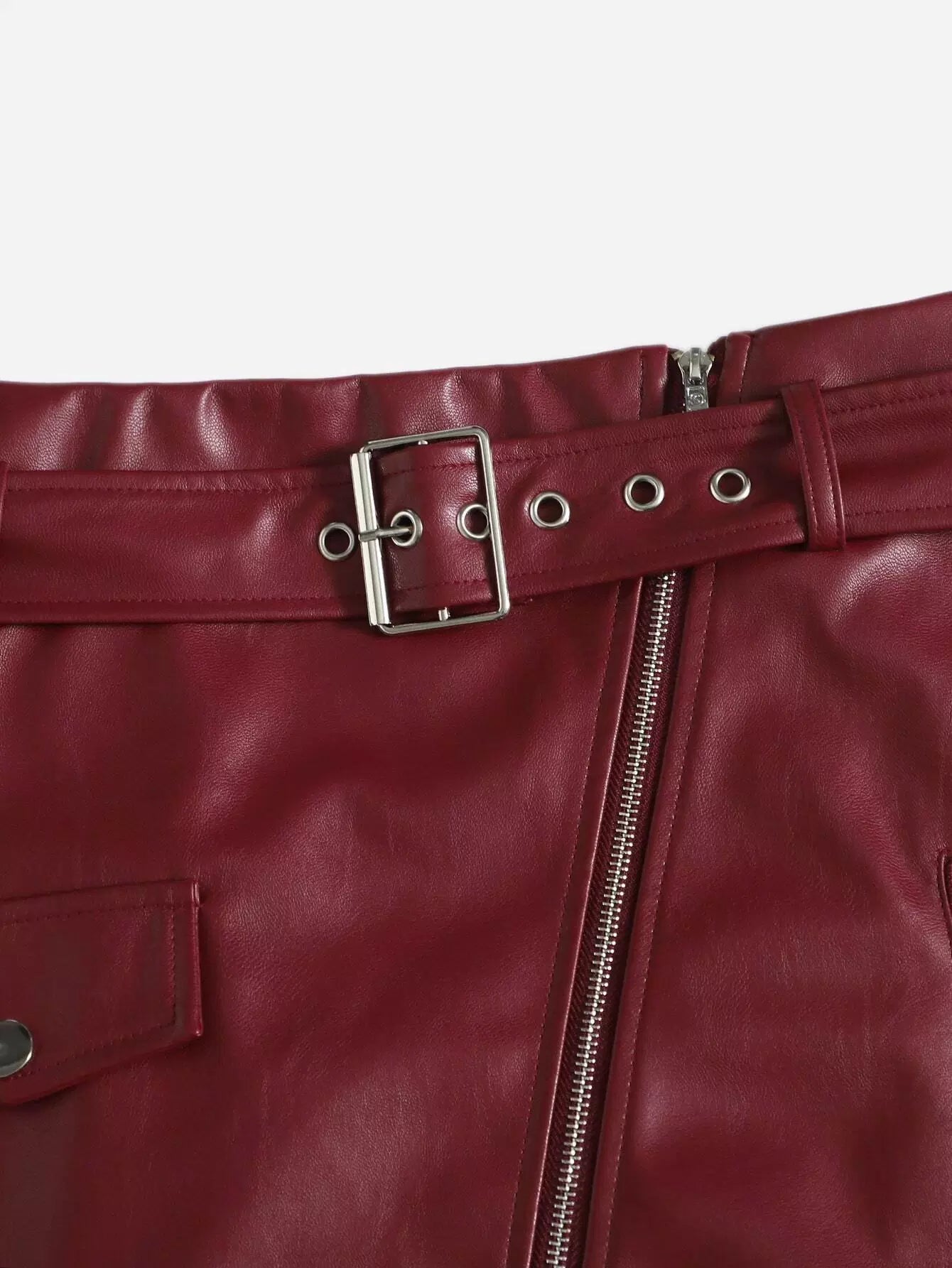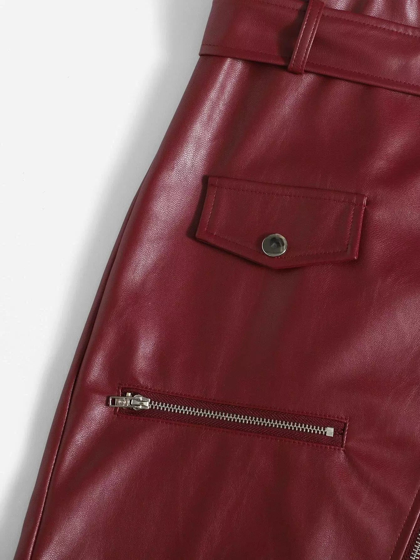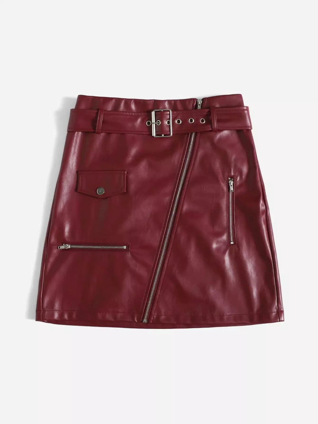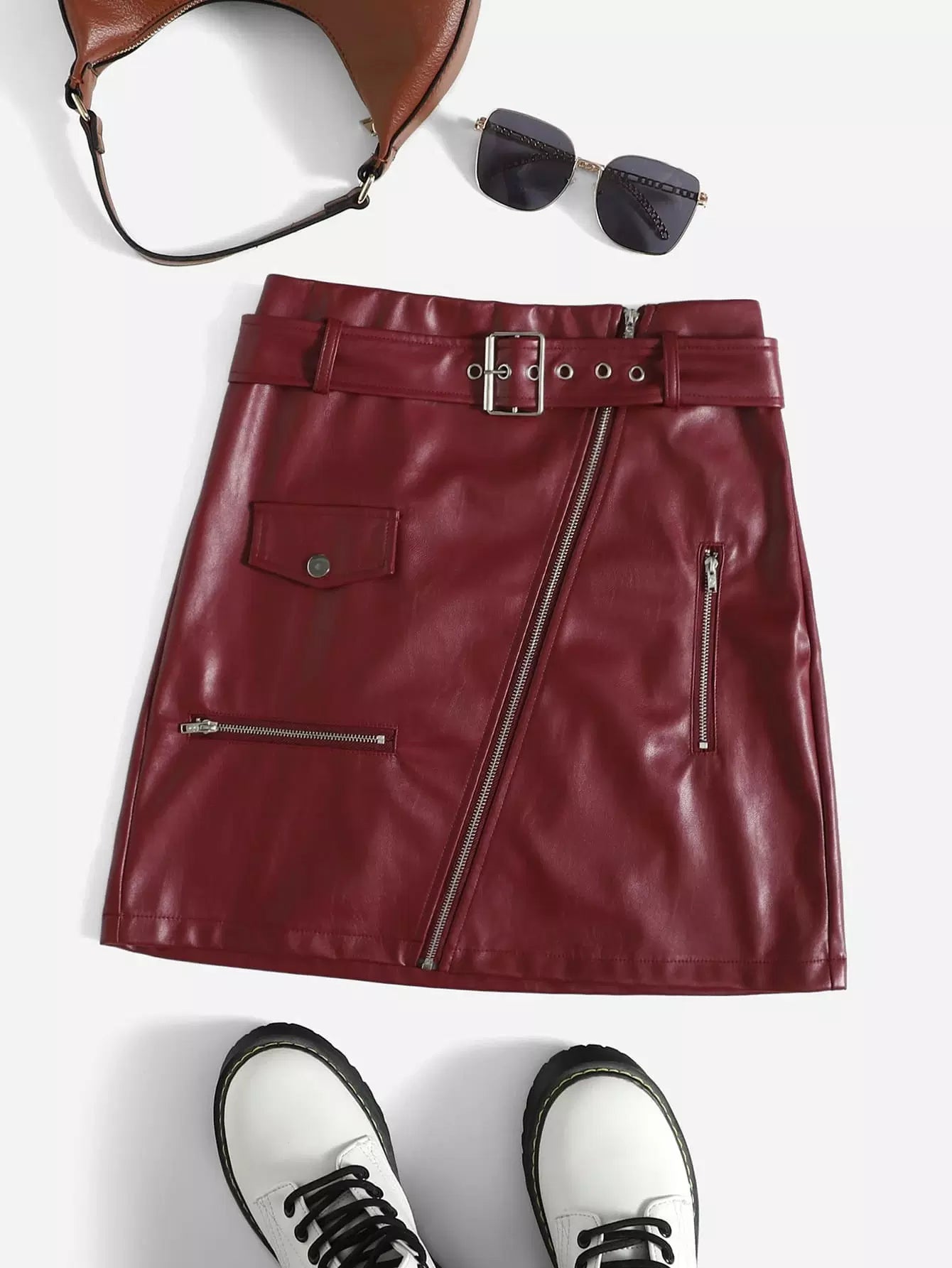 تنورة بإبزيم من جلد البولي يوريثان بسحاب أمامي وتفاصيل رفرف بدون حزام