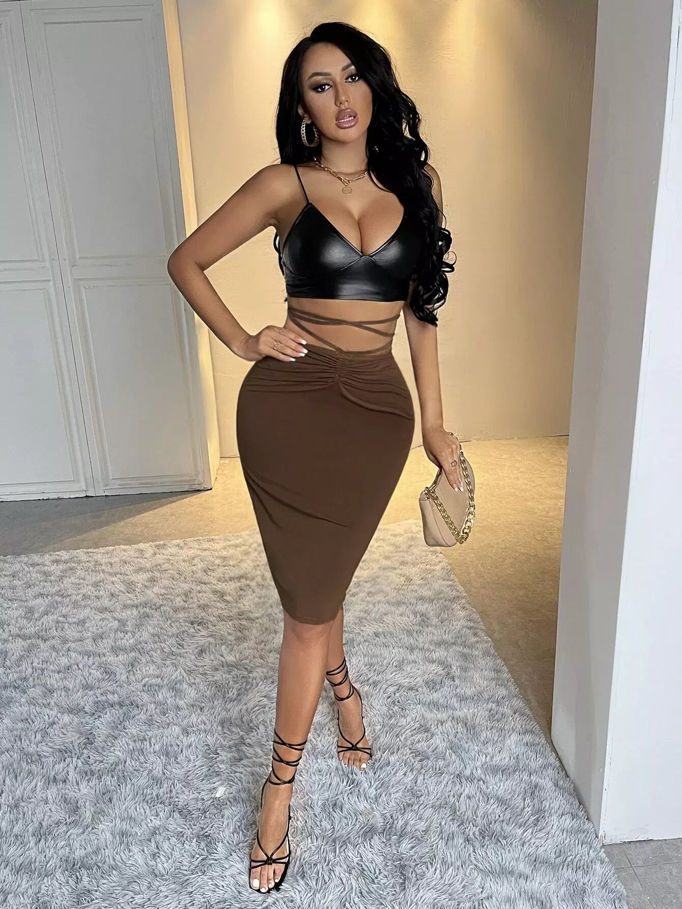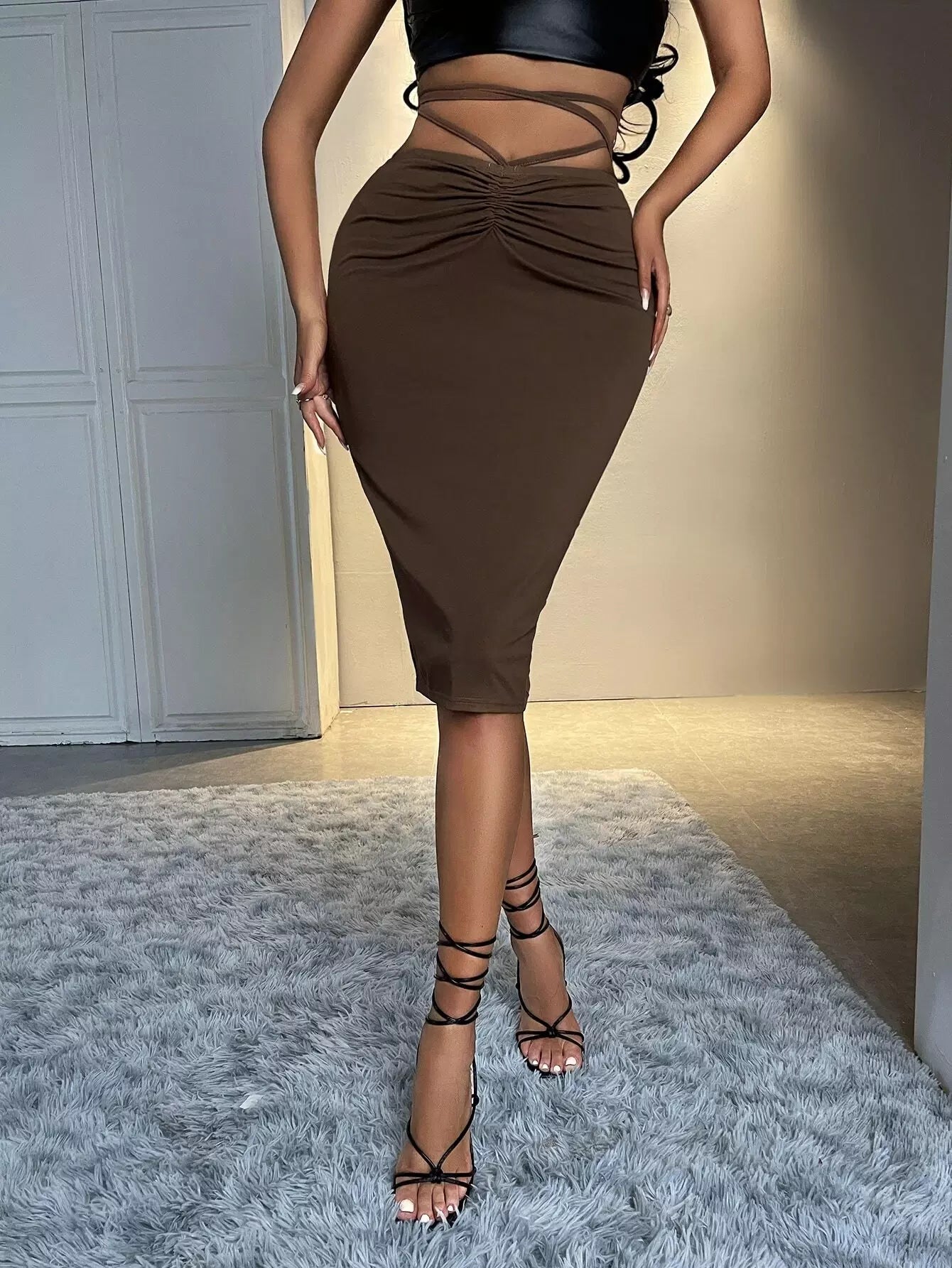 النساء - تنورة ضيقة مكشكشة ومتقاطعة ورباط خلفي