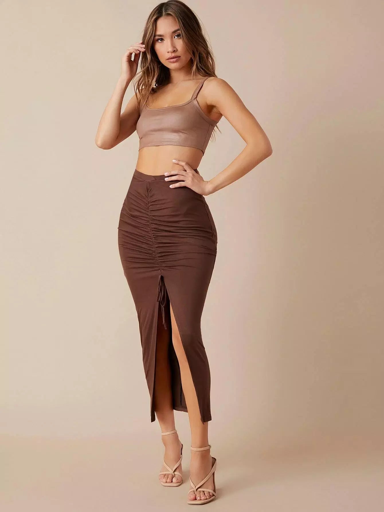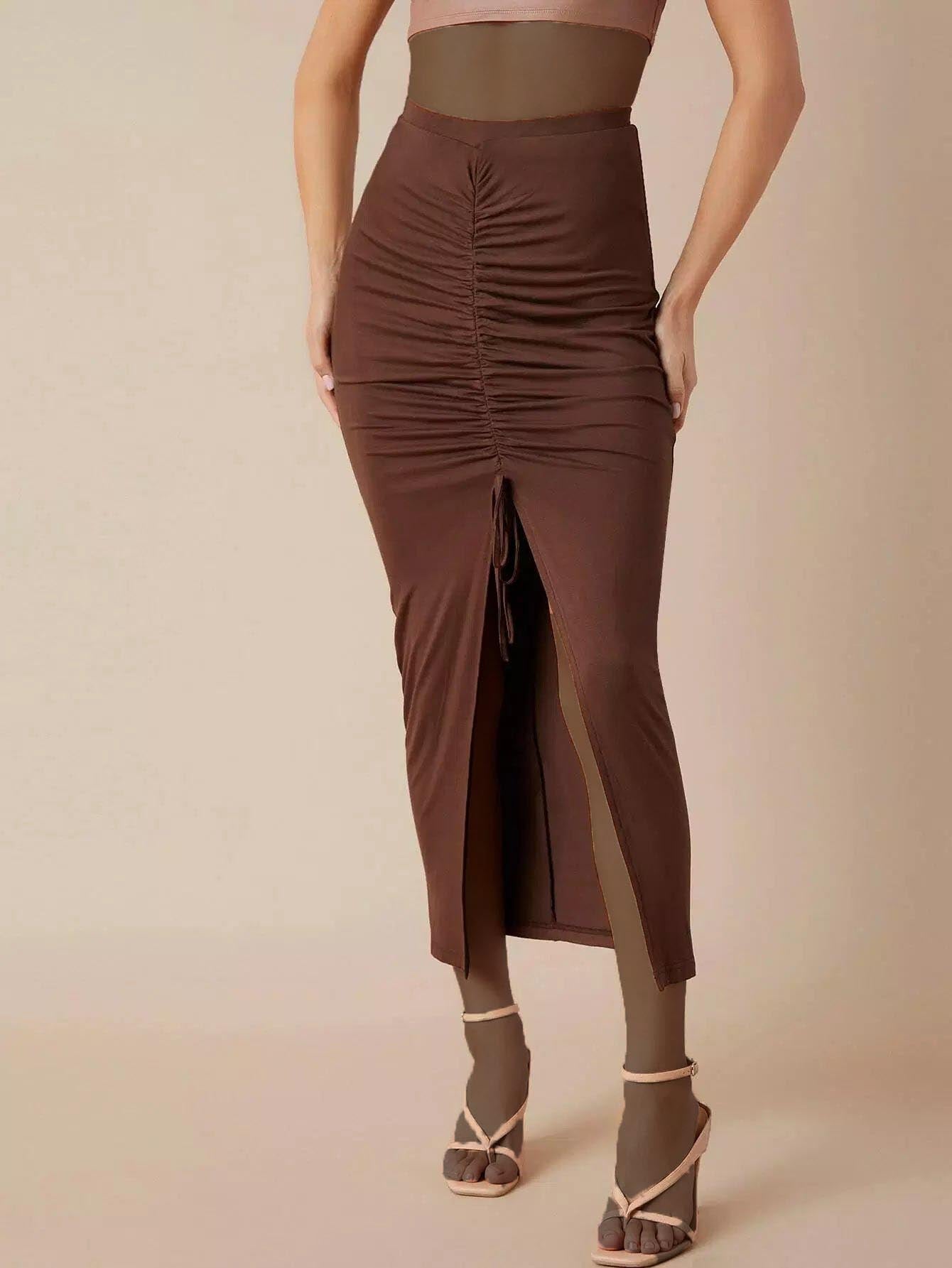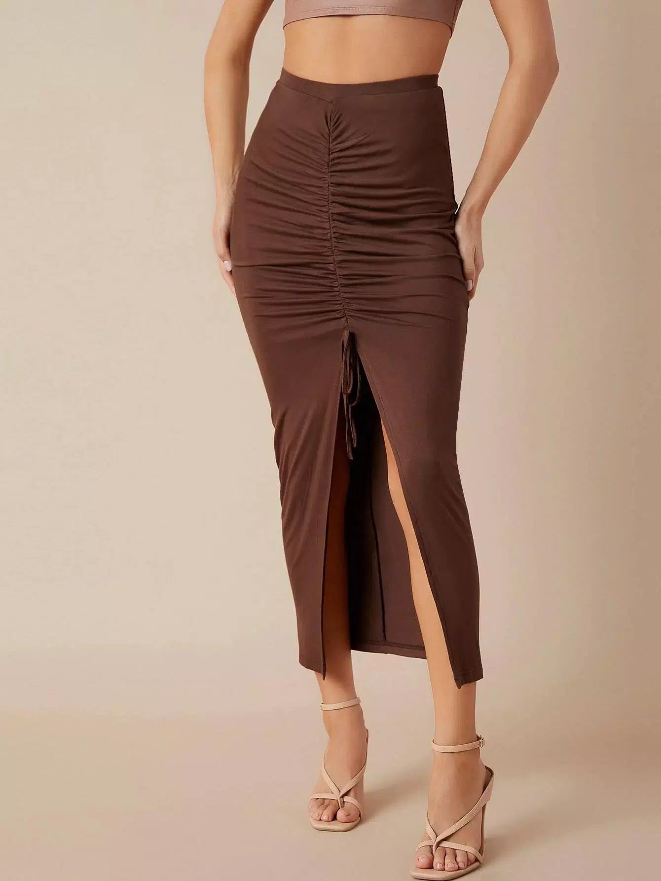 تنورة مكشكشة ذات عقدة أمامية منقسمة من الأمام على الفخذين