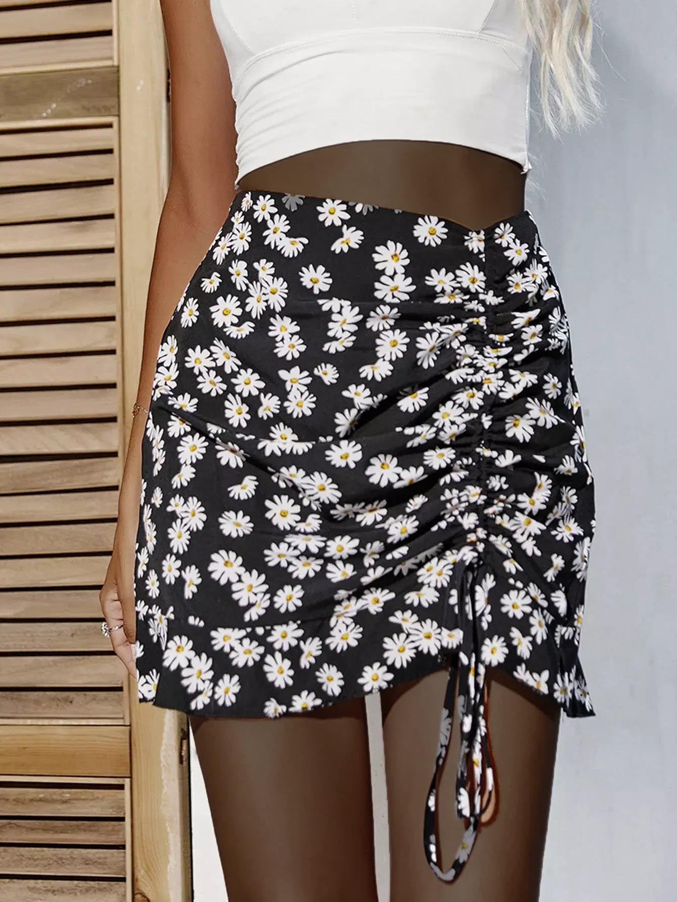 النساء - تنورة مزهرة بحاشية مكشكشة وعقدة مكشكشة