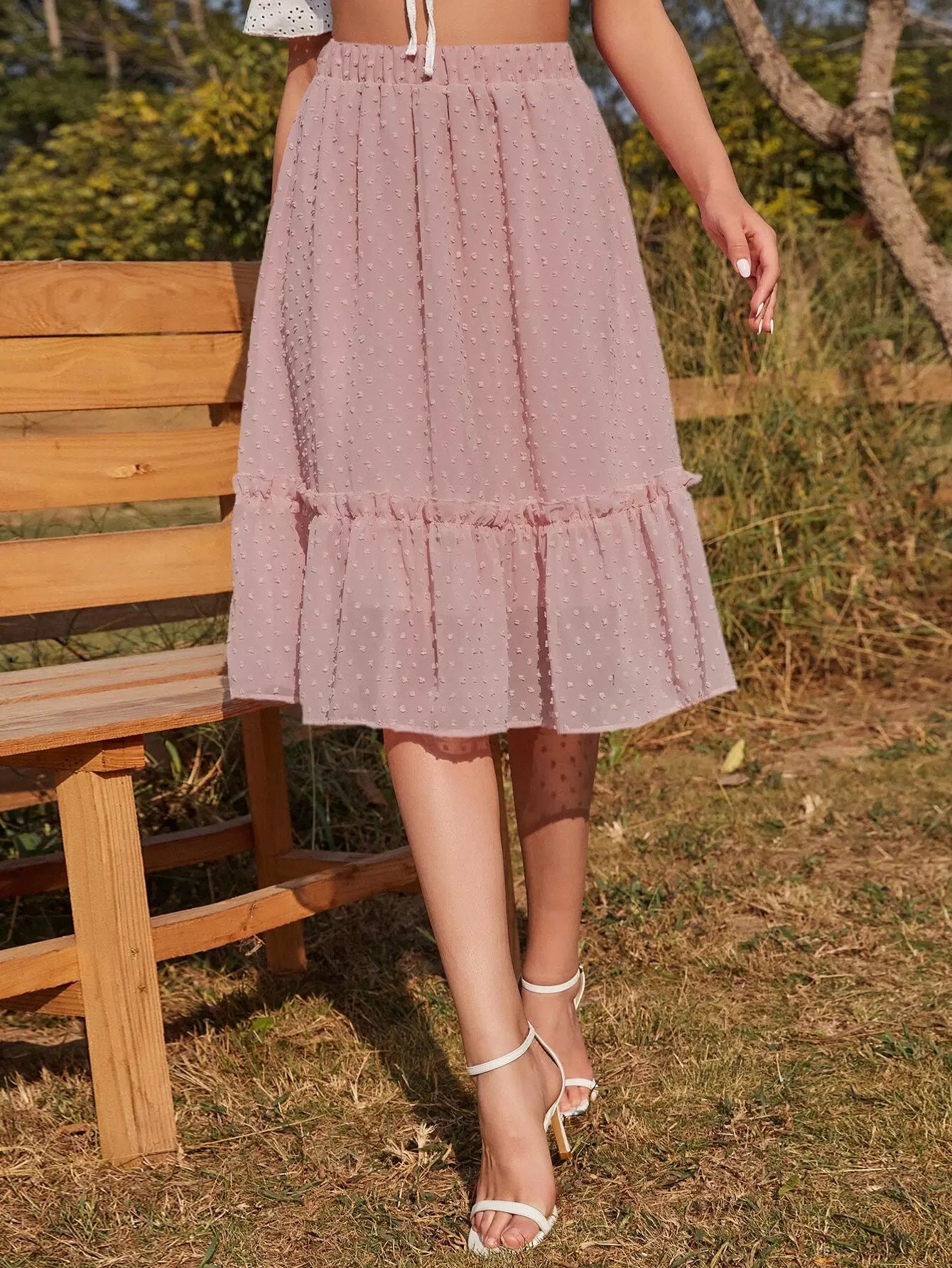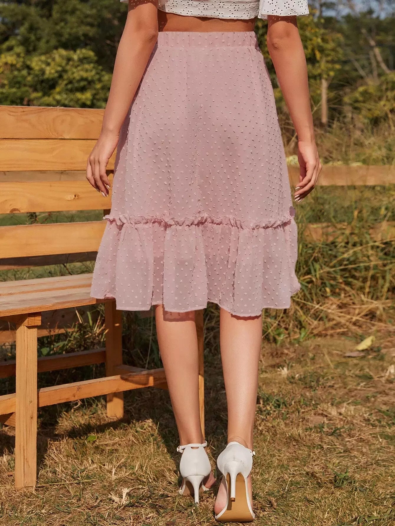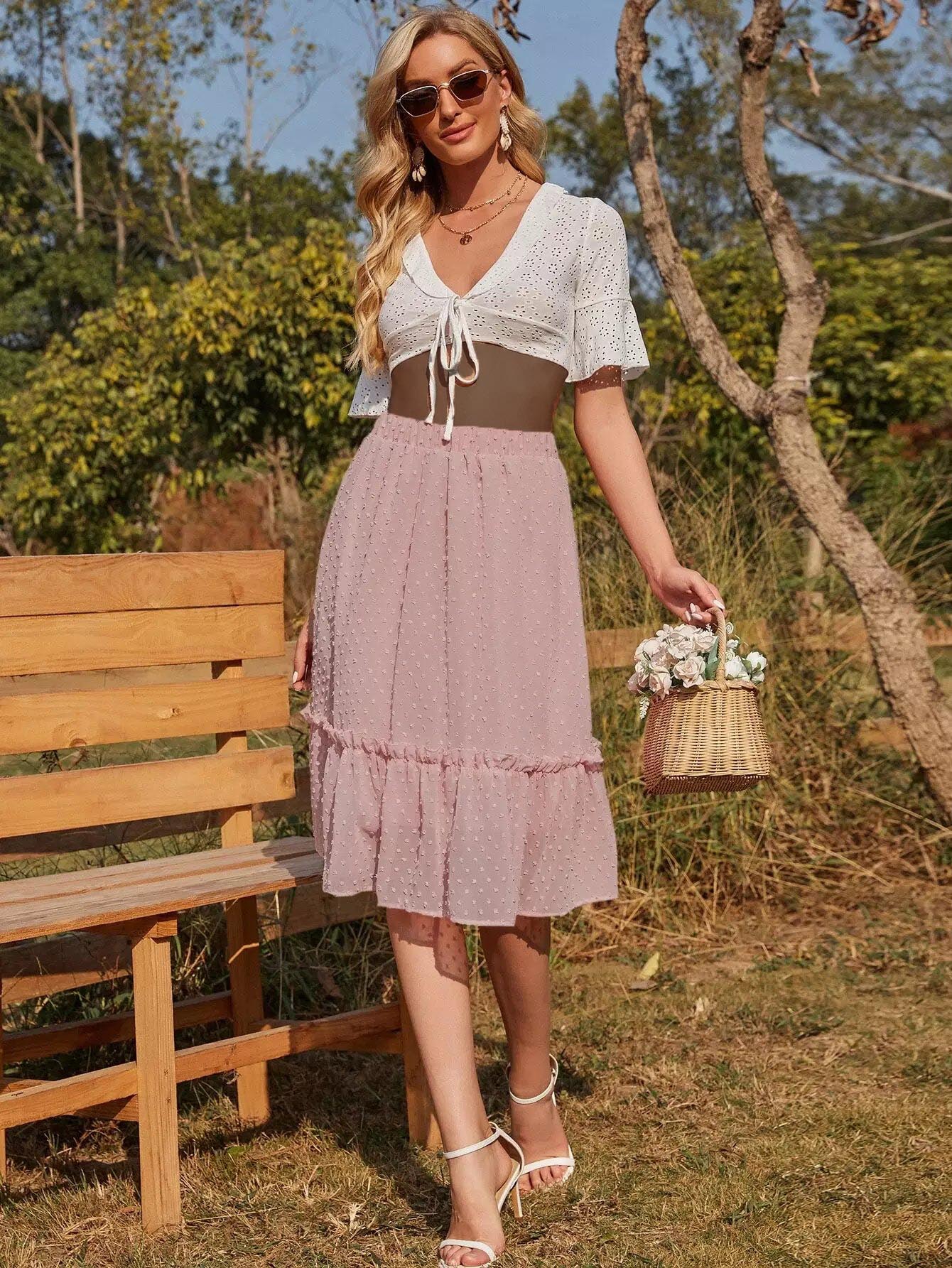 تنورة سويسرية منقطة مزينة بكشكش مكشكشة