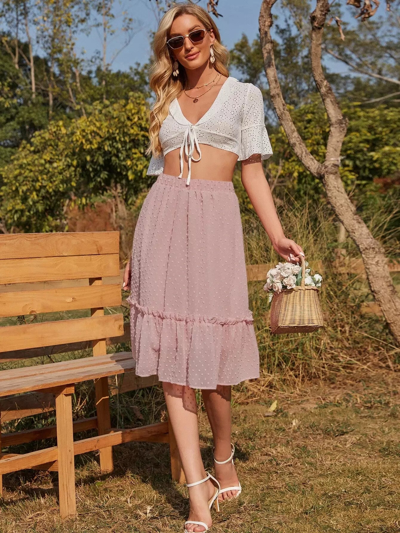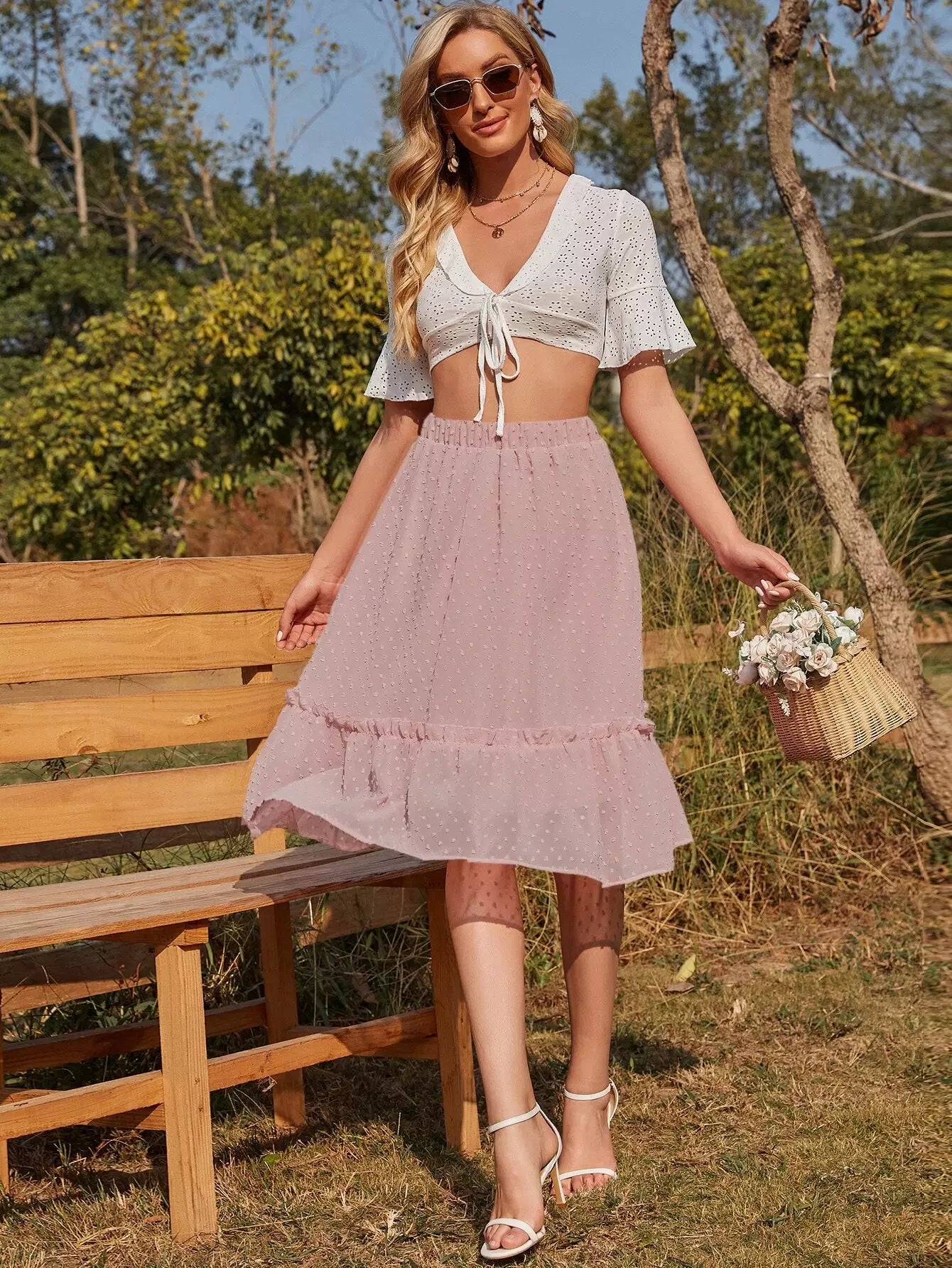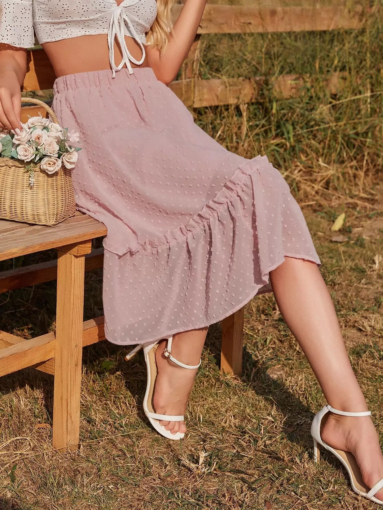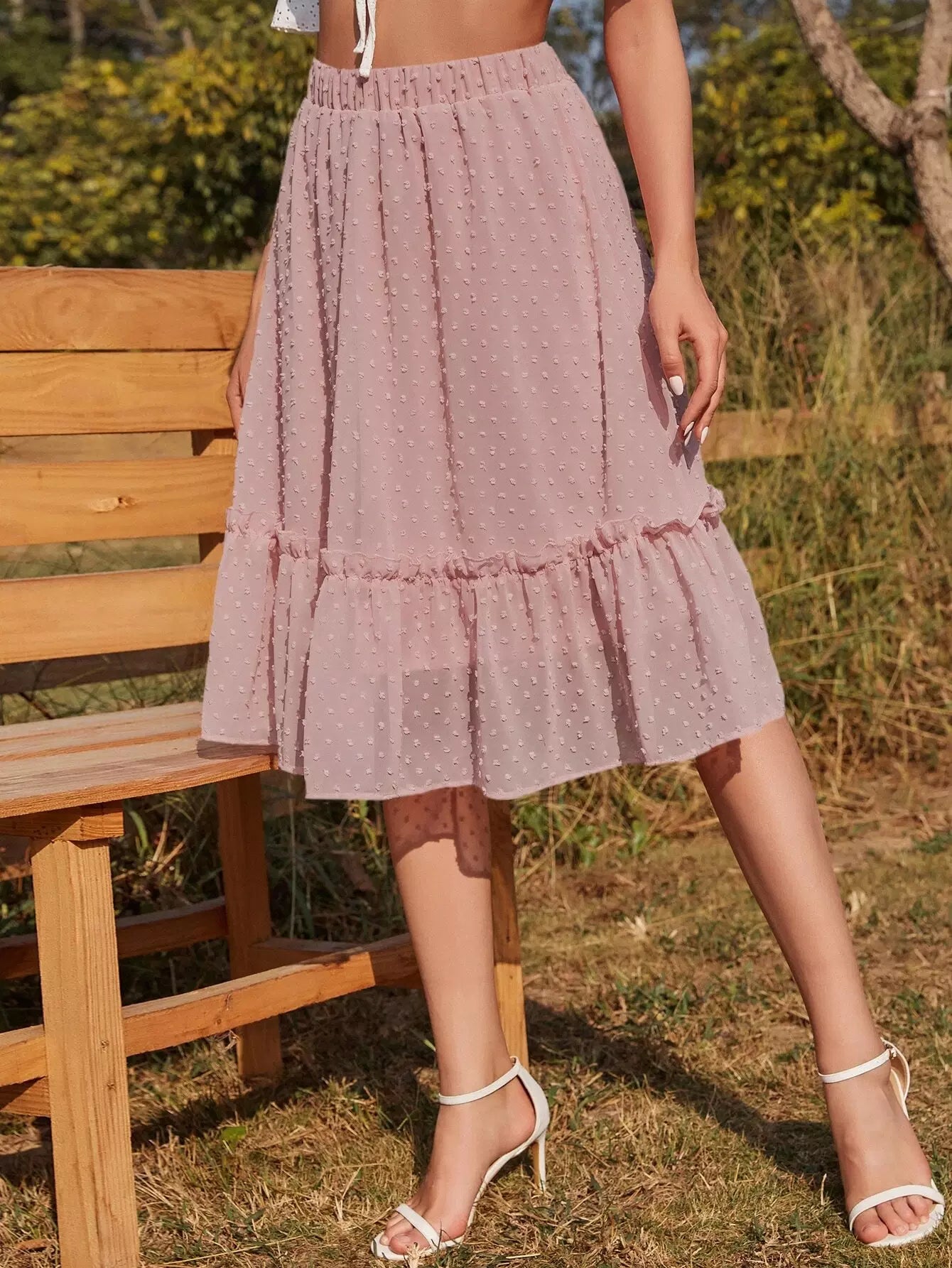 تنورة سويسرية منقطة مزينة بكشكش مكشكشة