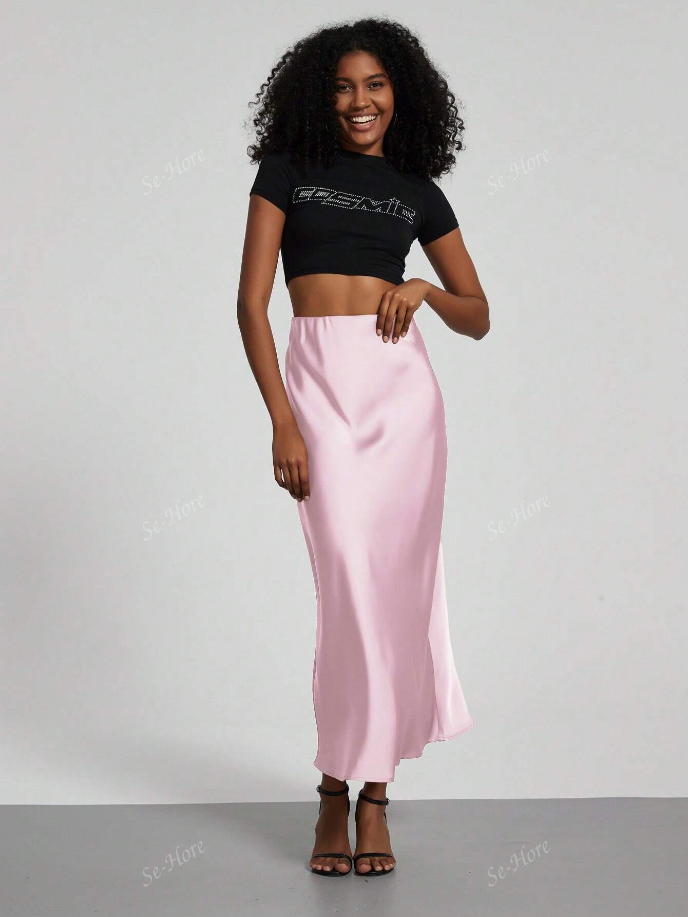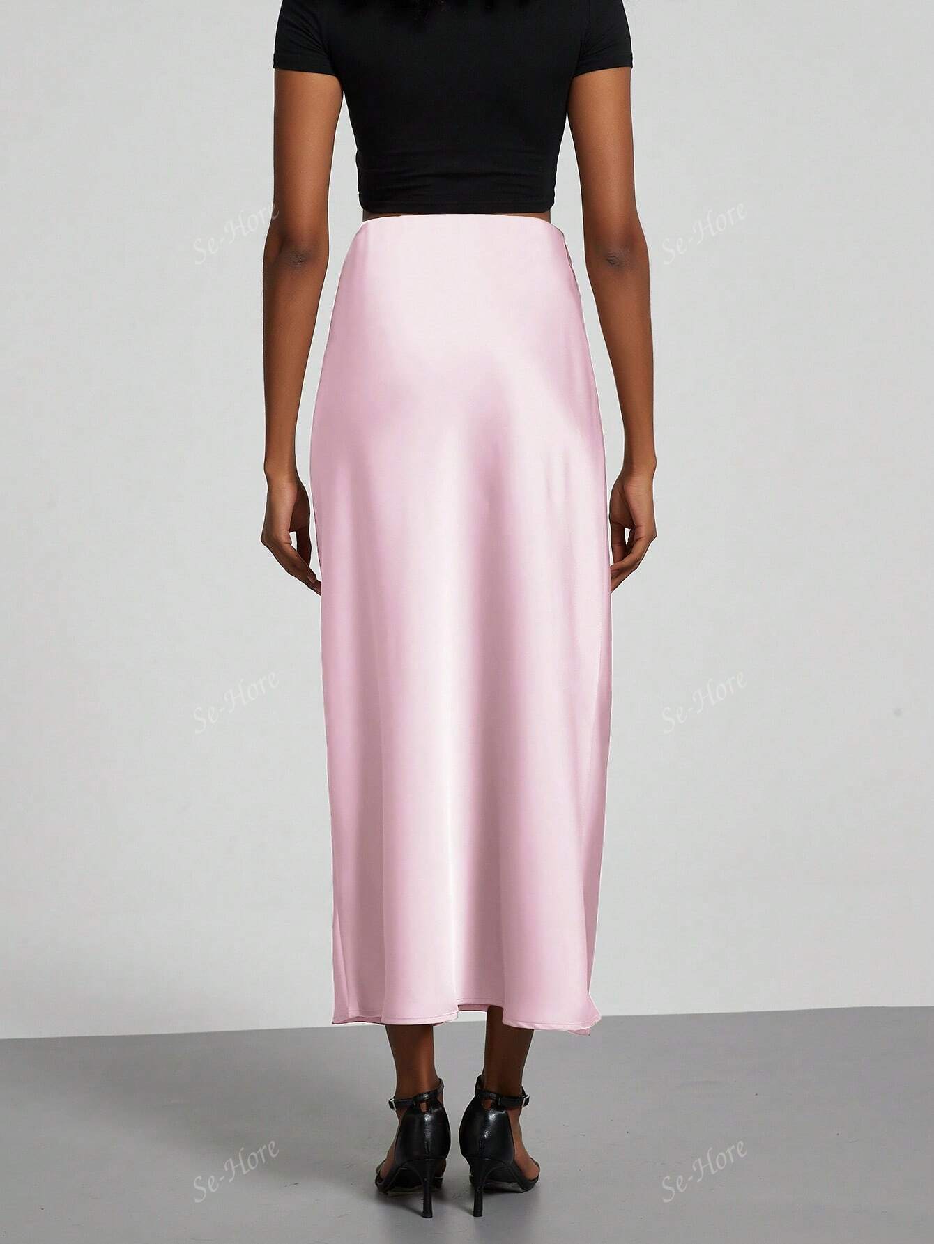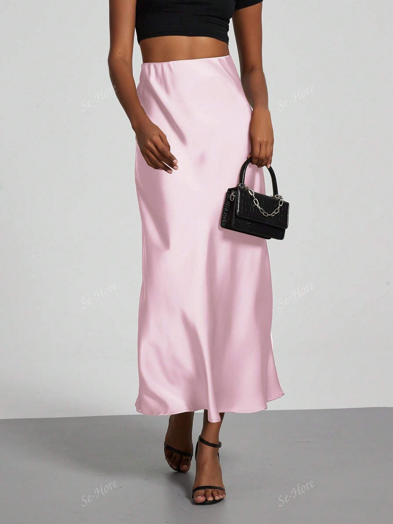 Se-Hore Fashion Flowing Satin Feel Elastic Waist Maxi Skirt For Women