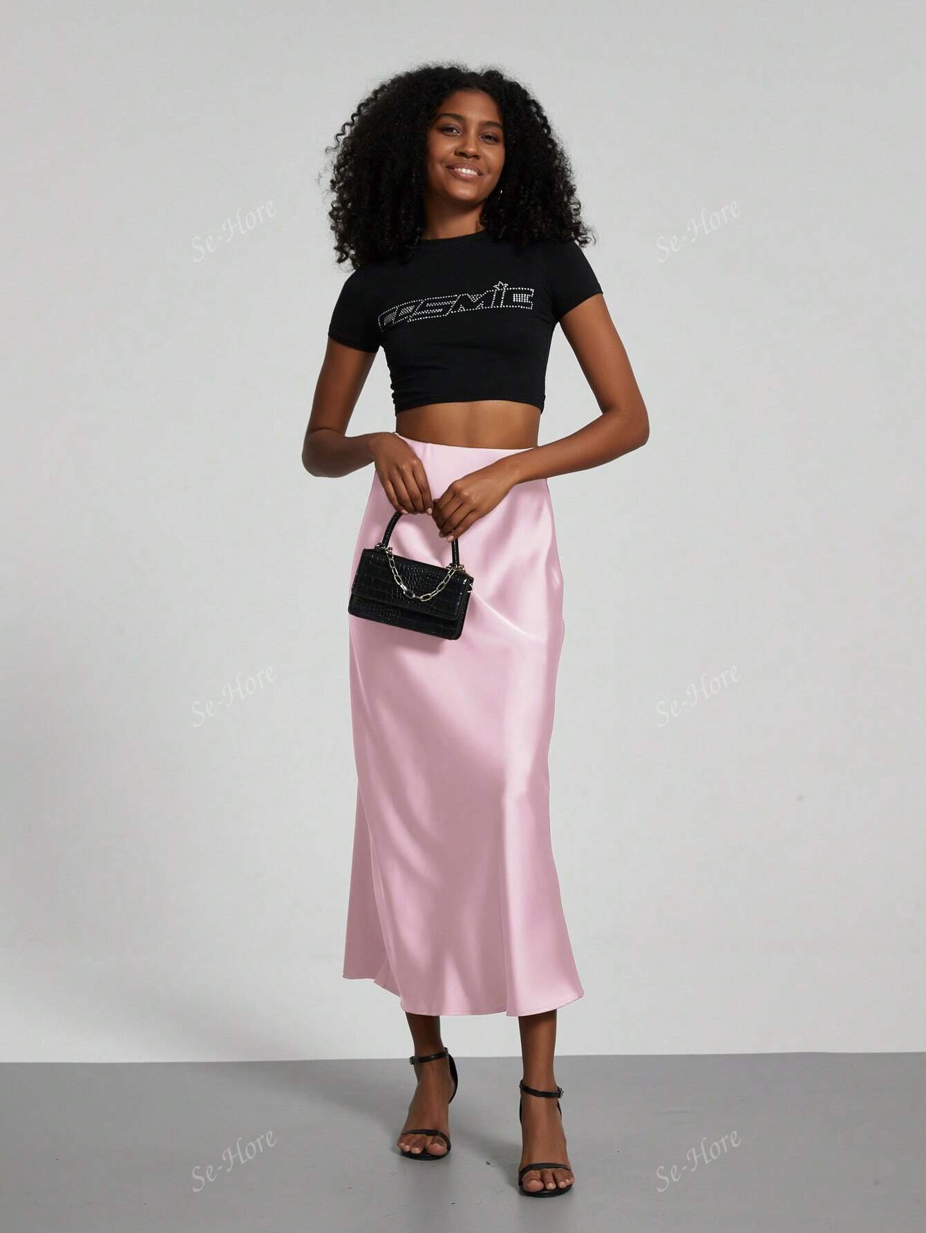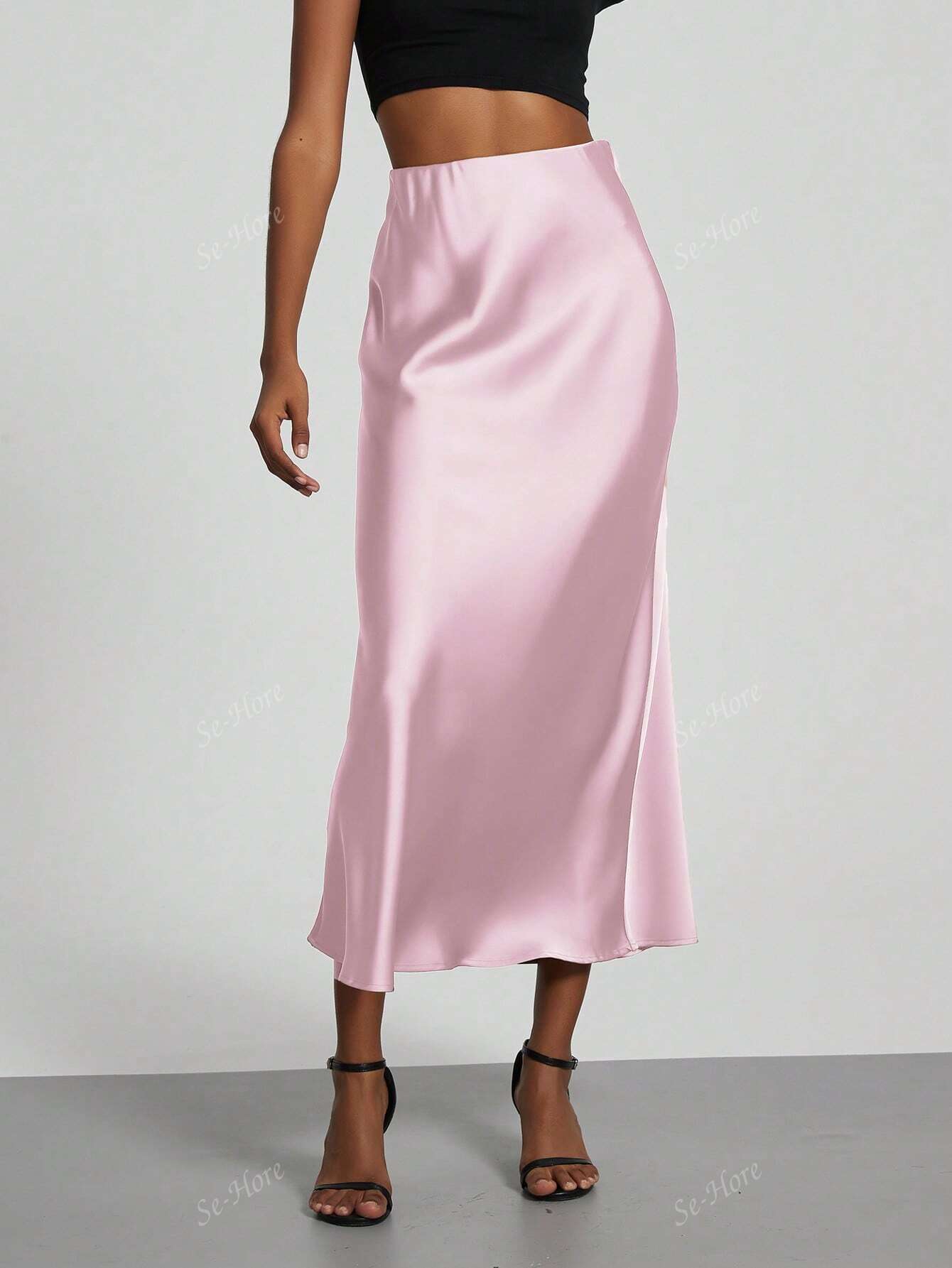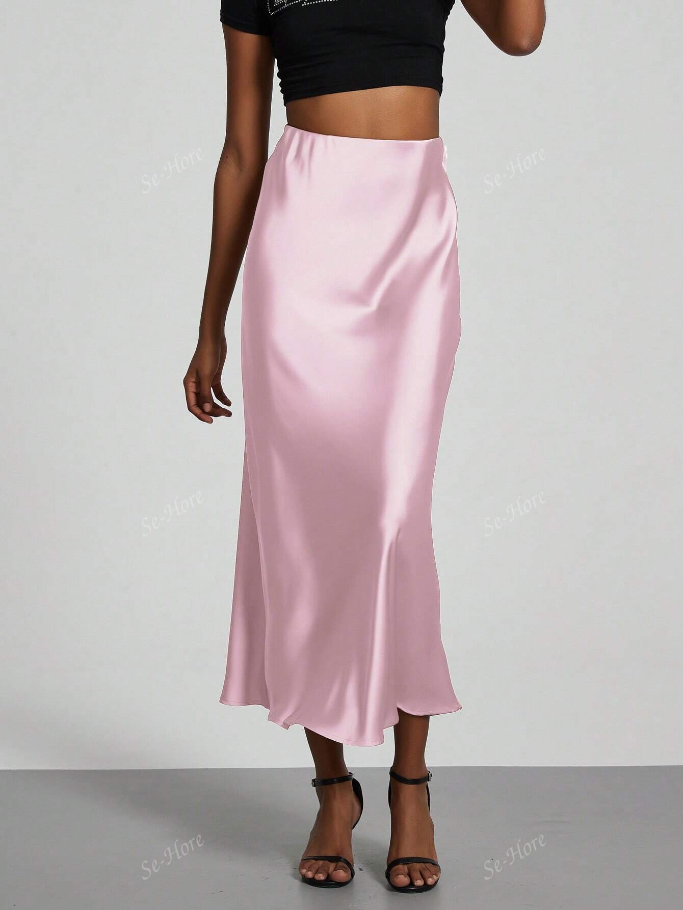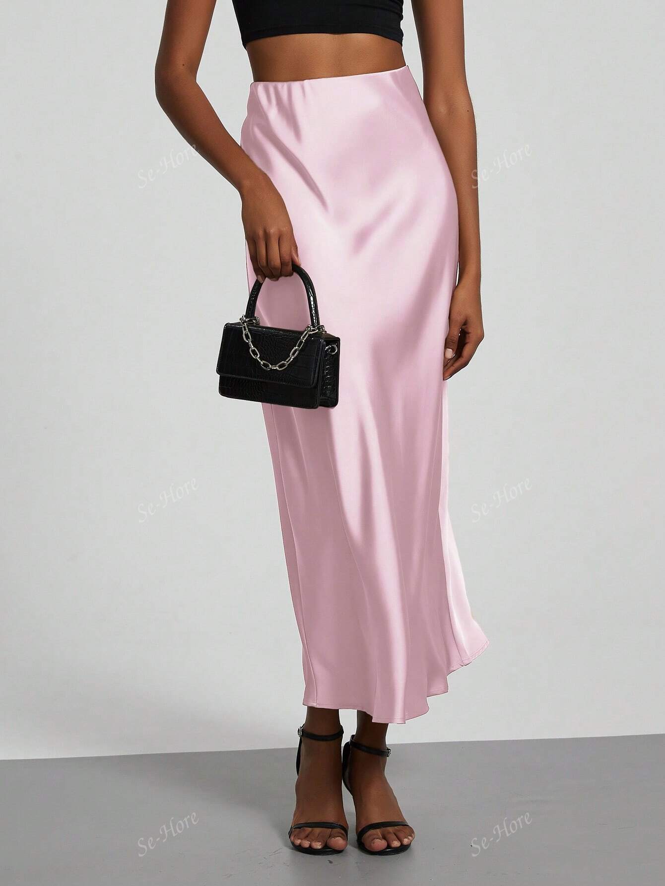 Se-Hore Fashion Flowing Satin Feel Elastic Waist Maxi Skirt For Women