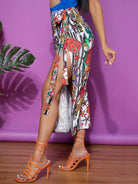 تنورة مخططة بطبعة جرافيك ذاتية بدون حزام