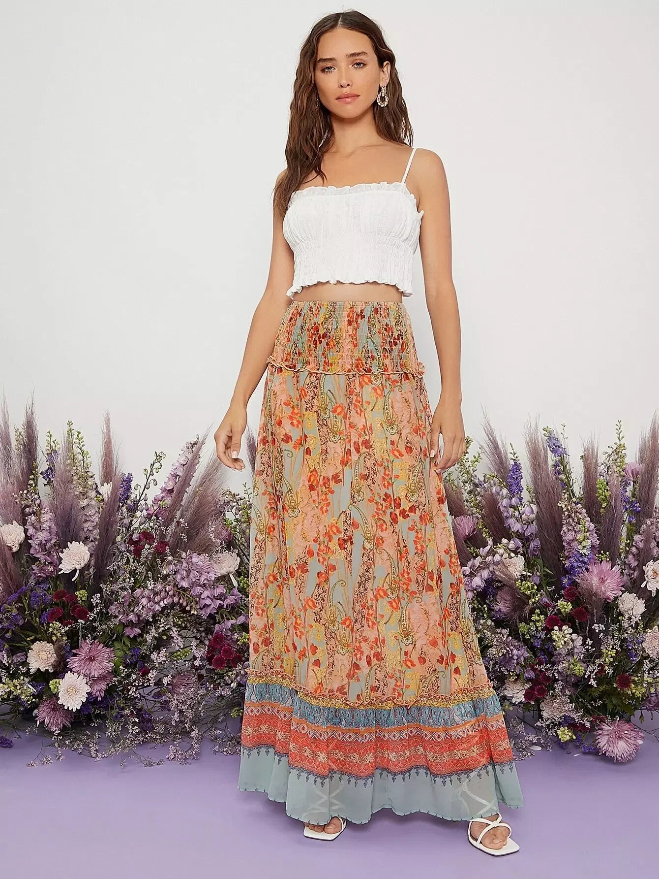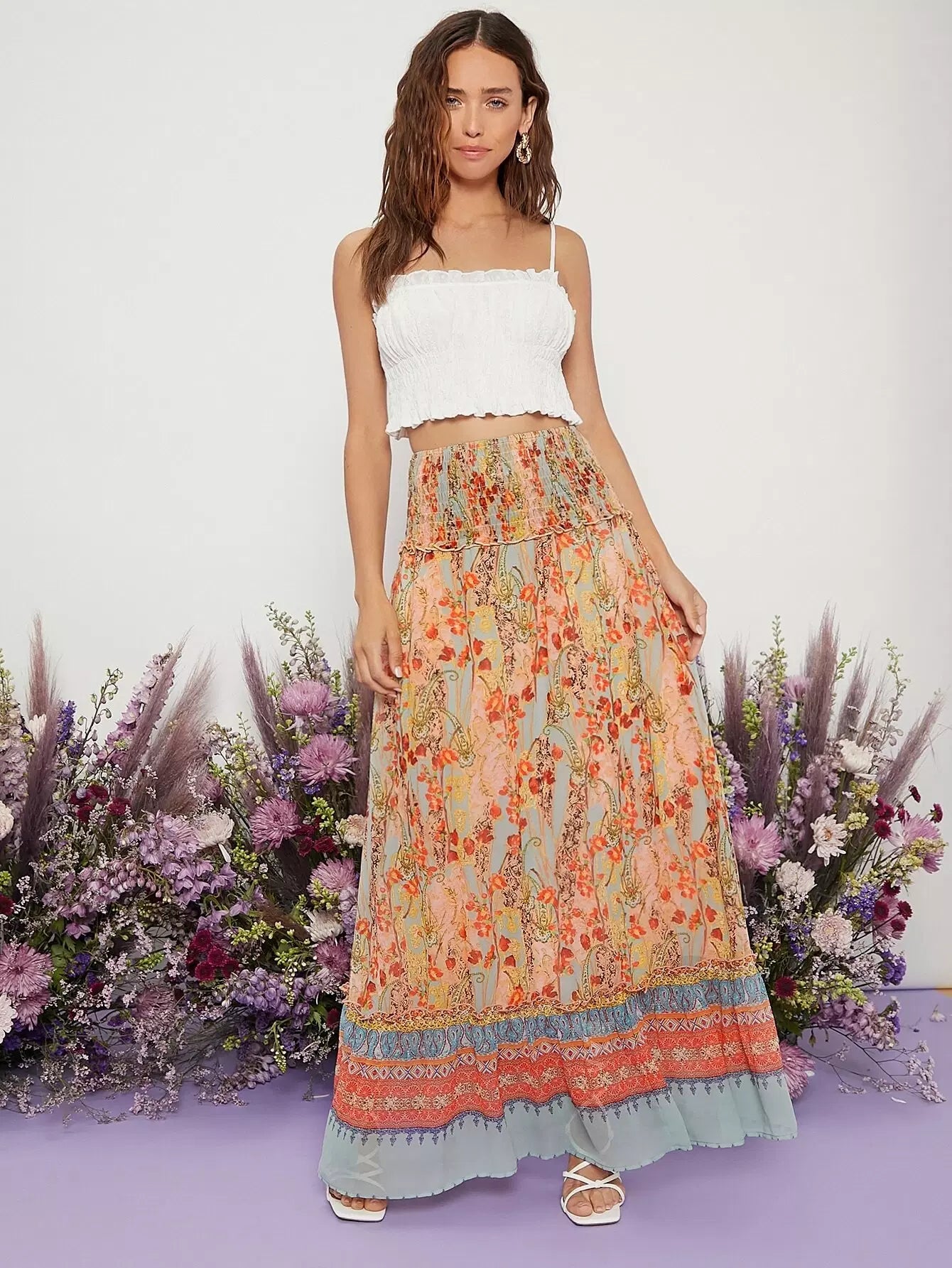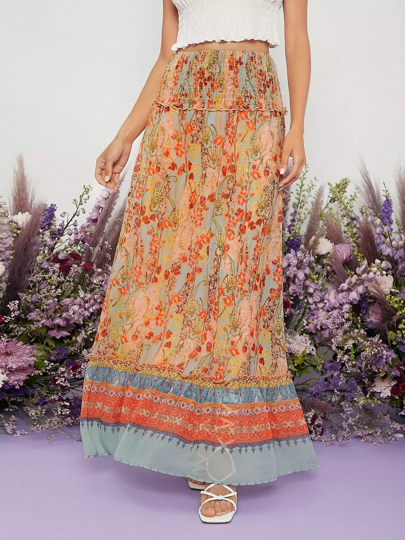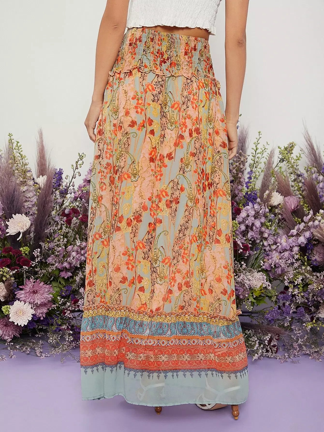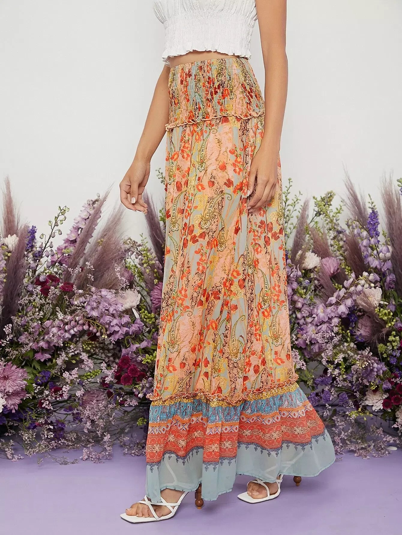 تنورة زهرية ذات خصر مشدود