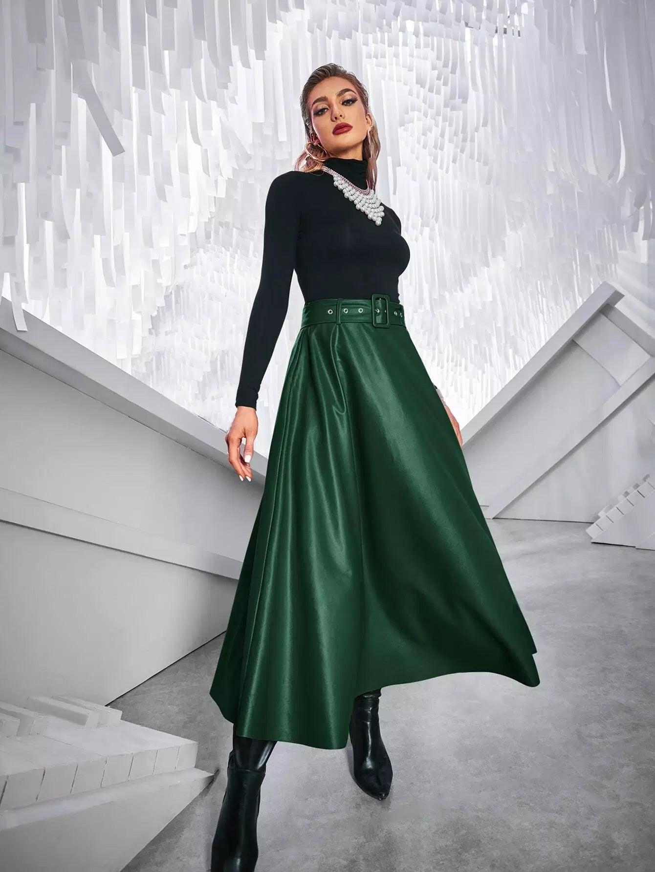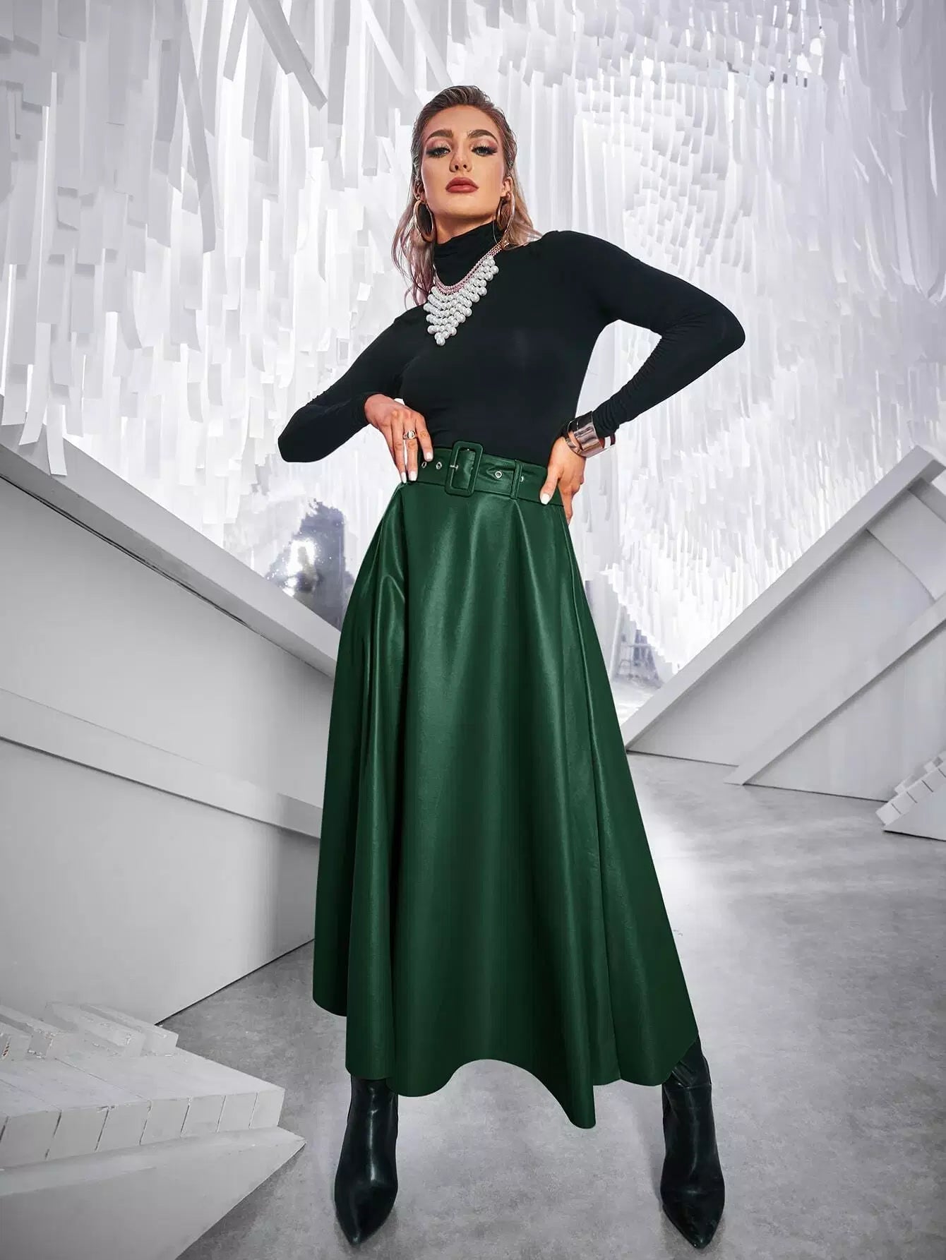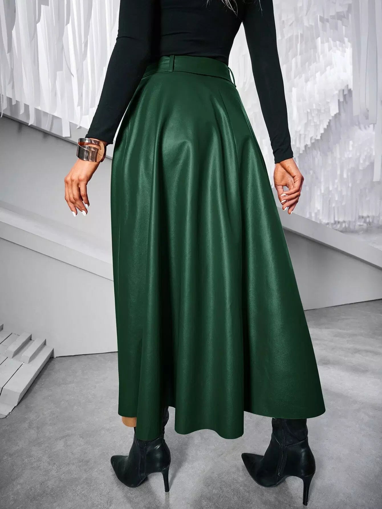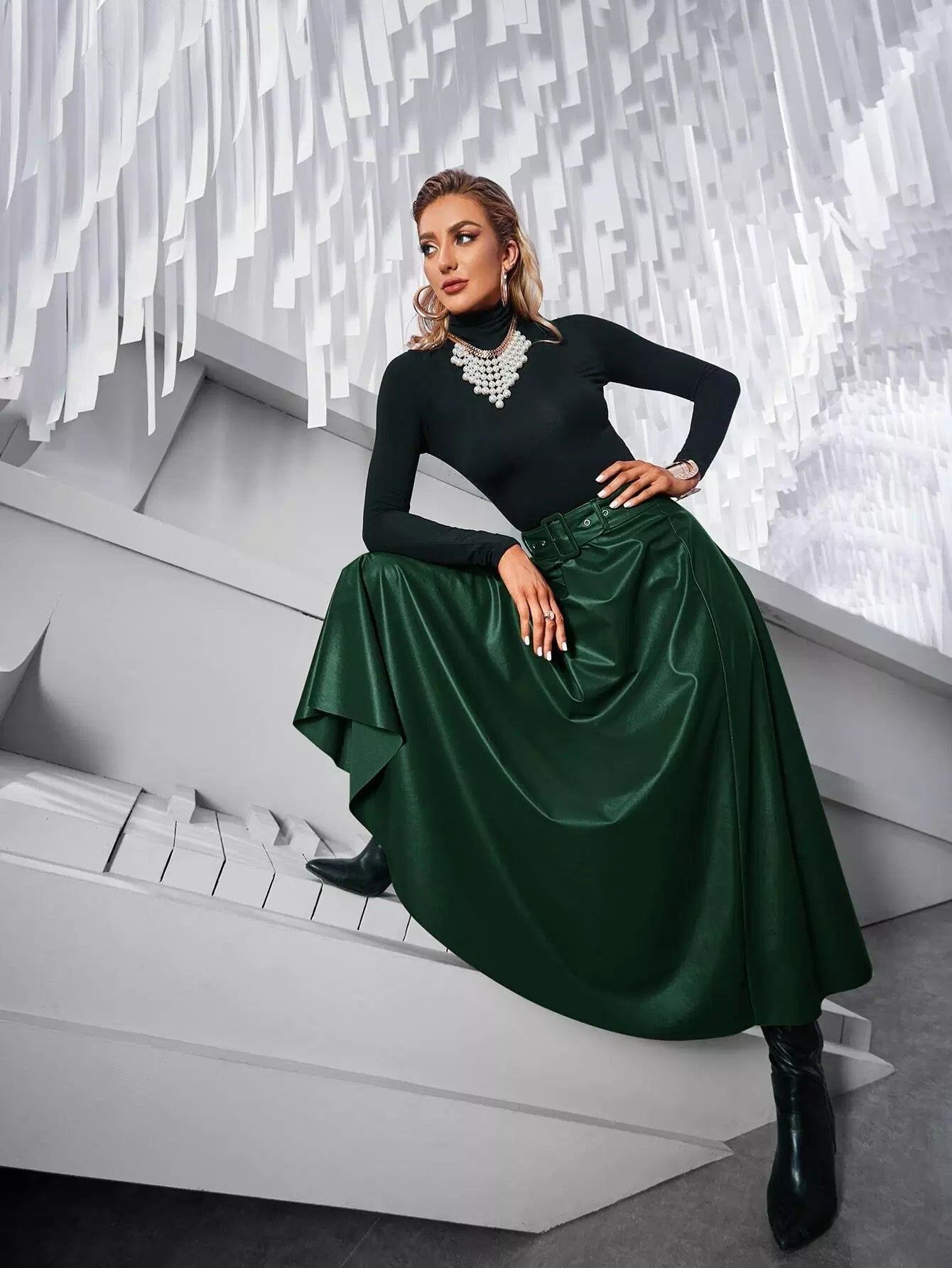 تنورة واسعة من جلد البولي يوريثان الصلب بدون حزام