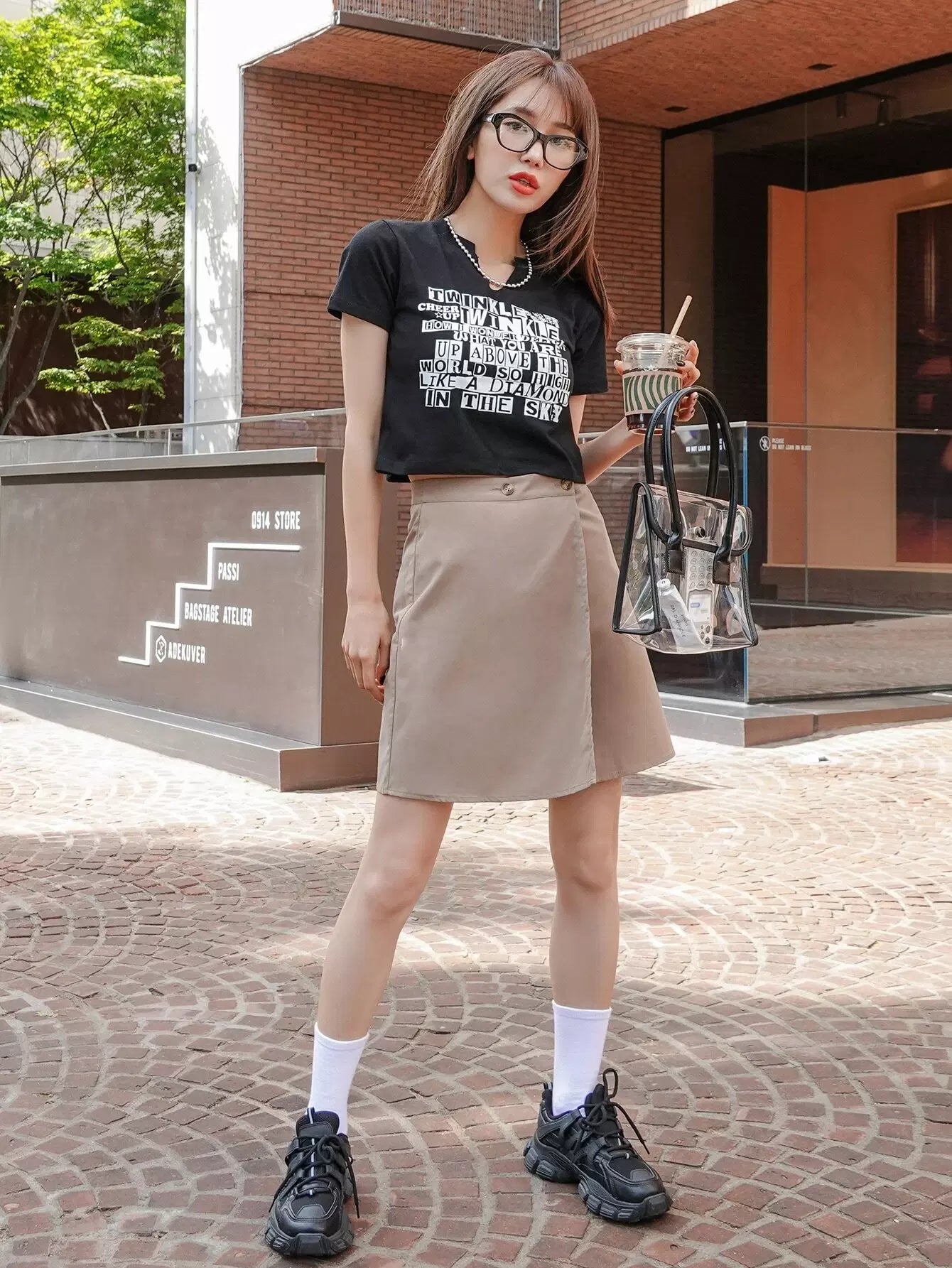 تنورة ملفوفة بأزرار مزدوجة سادة