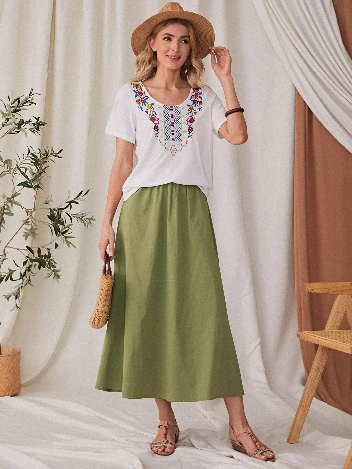 للنساء - فستان على شكل حرف A بخصر مطاطي متين