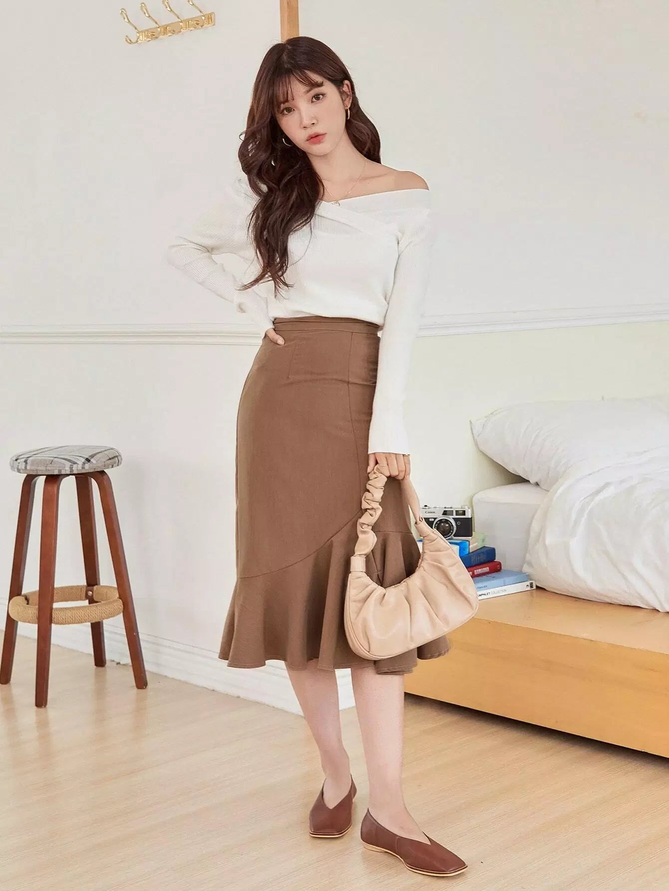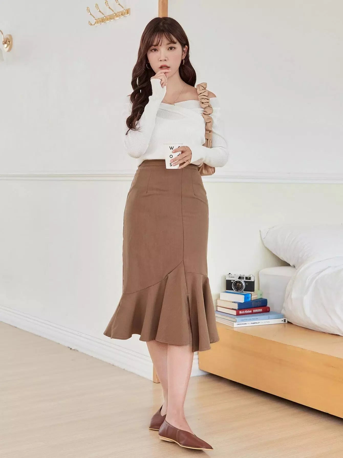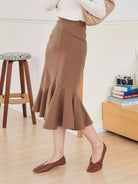 تنورة سادة عالية الخصر بحاشية حورية البحر