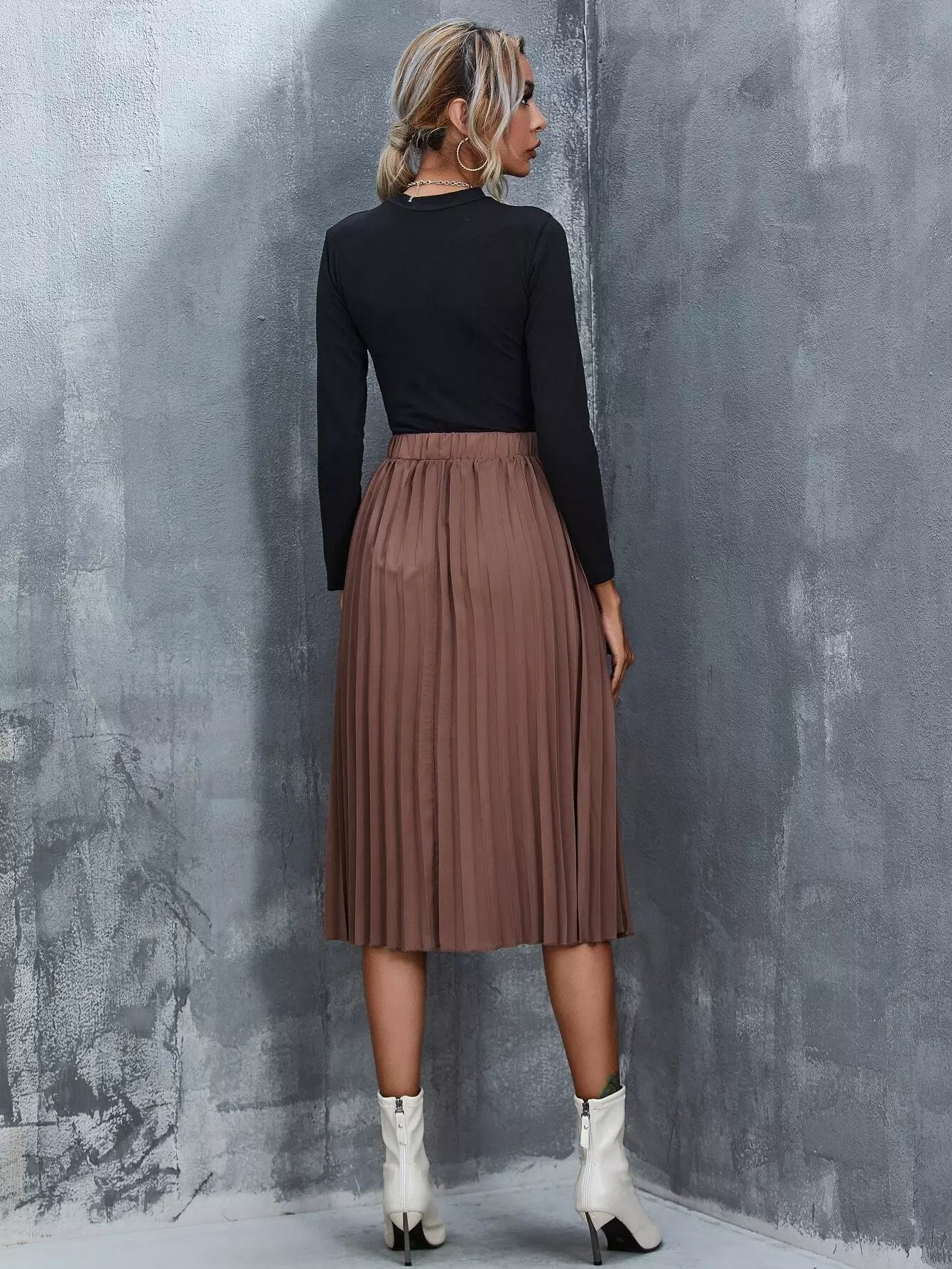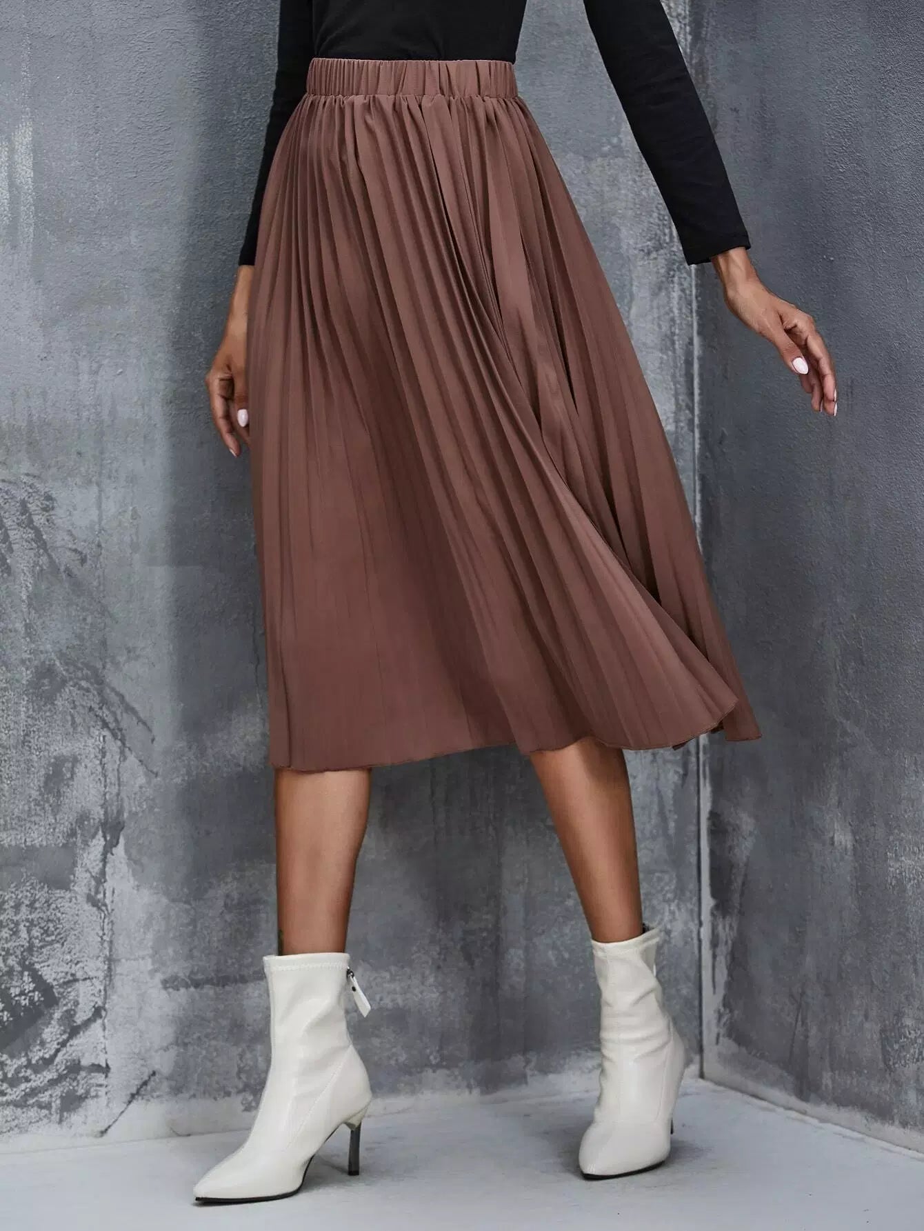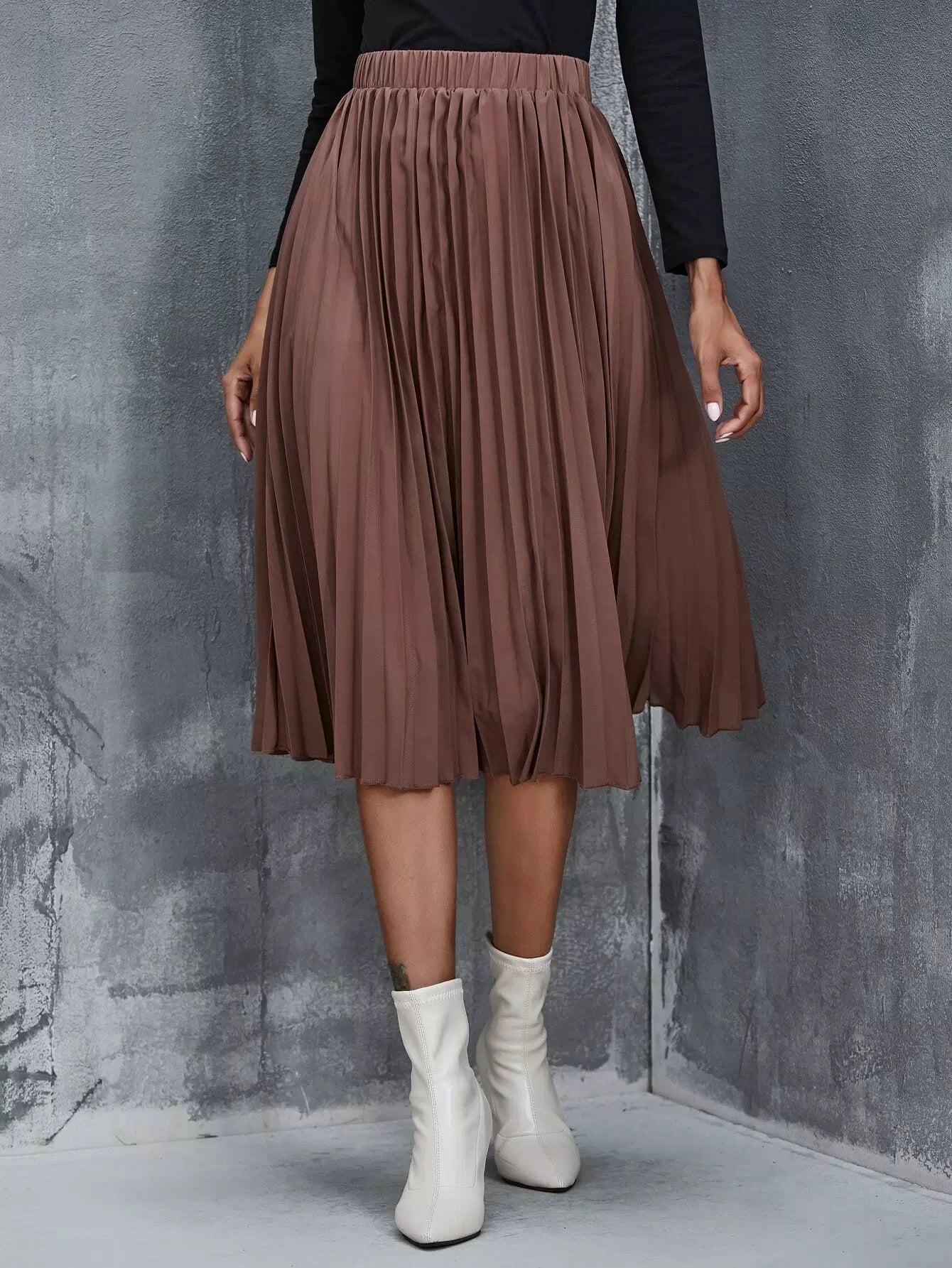 تنورة سادة ذات ثنيات عالية الخصر سادة