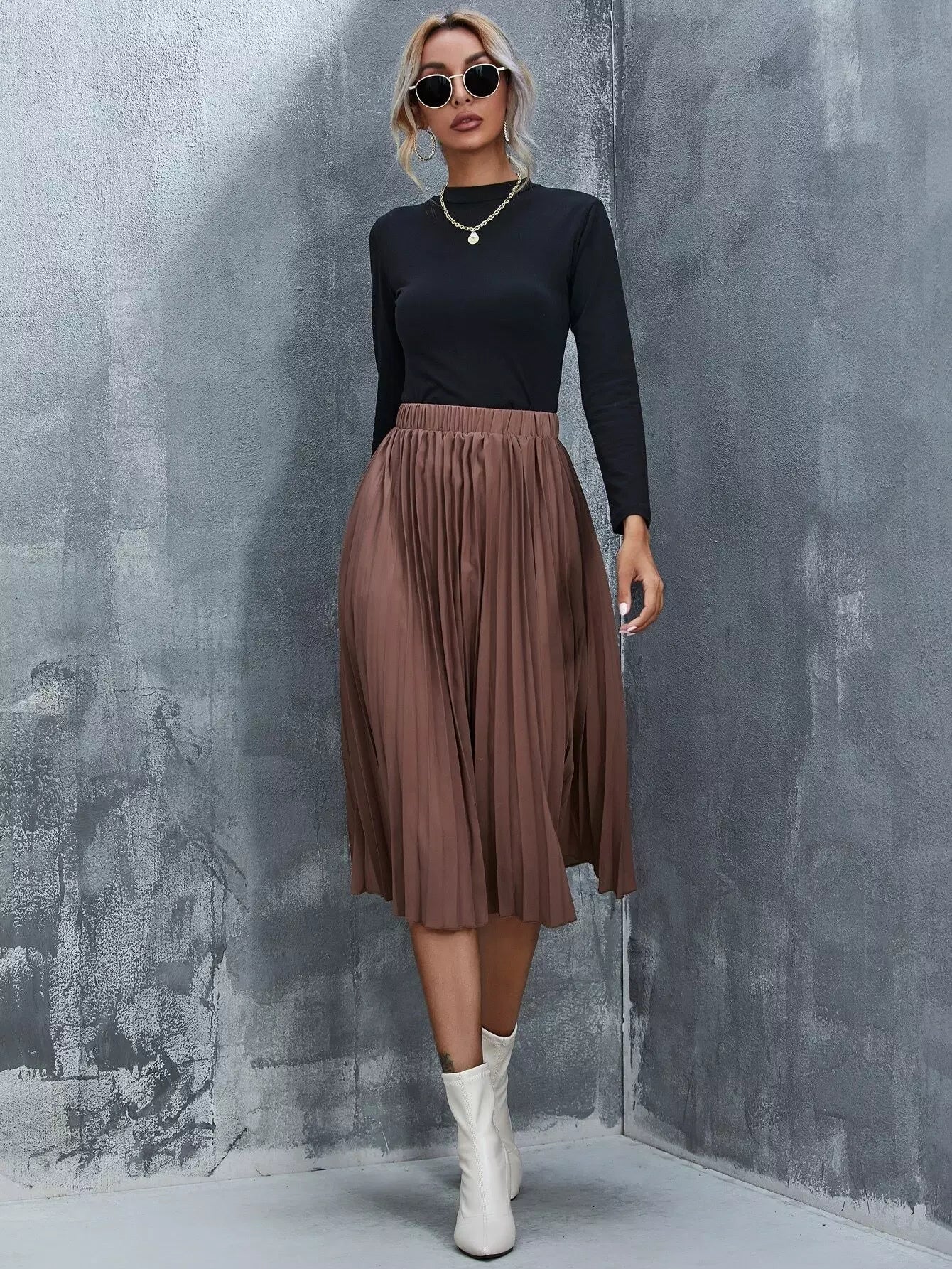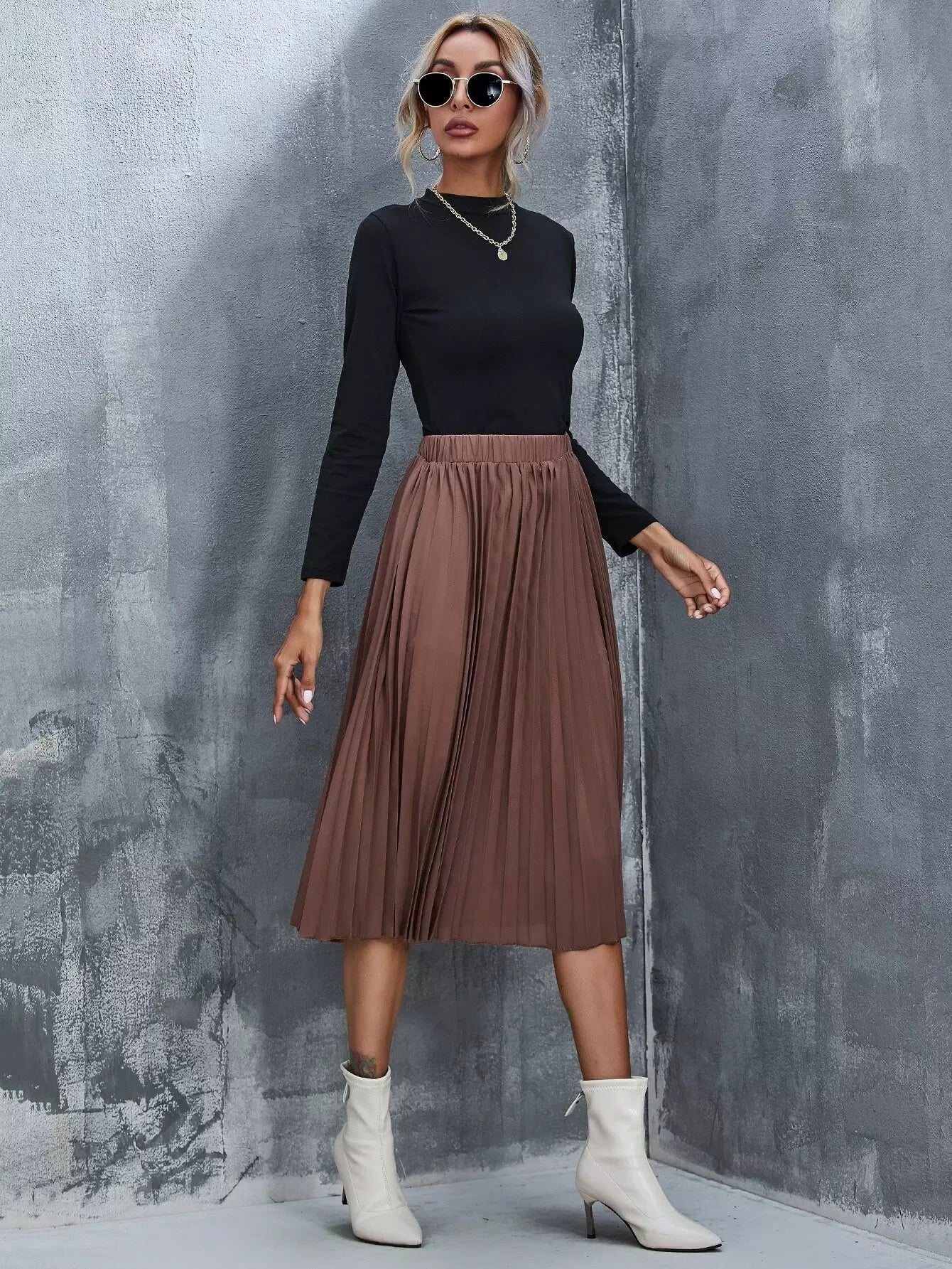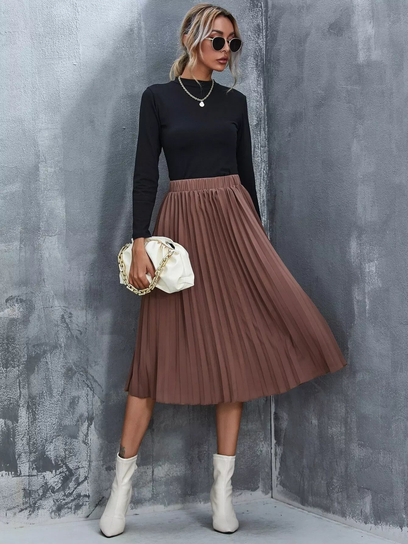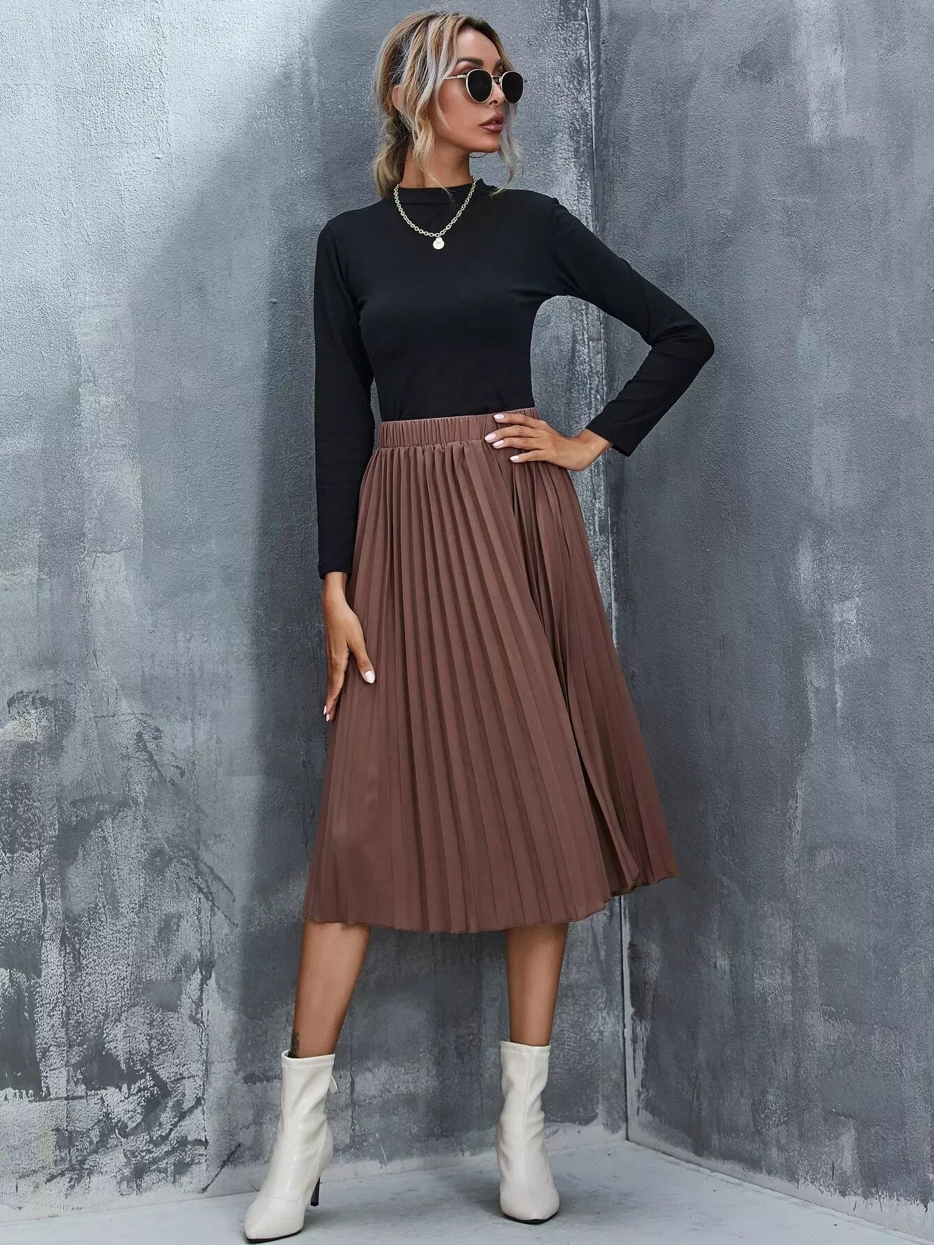 تنورة سادة ذات ثنيات عالية الخصر سادة