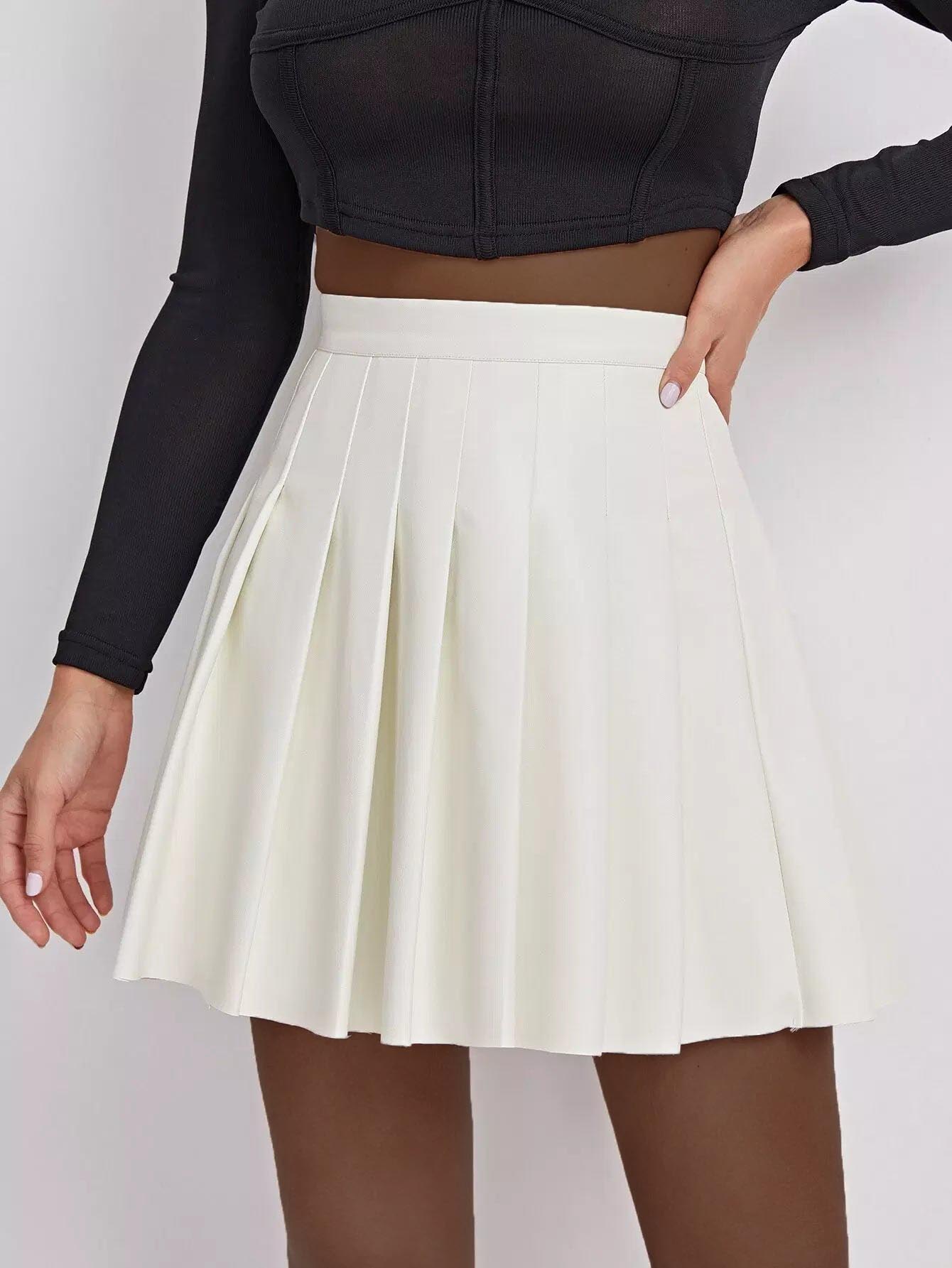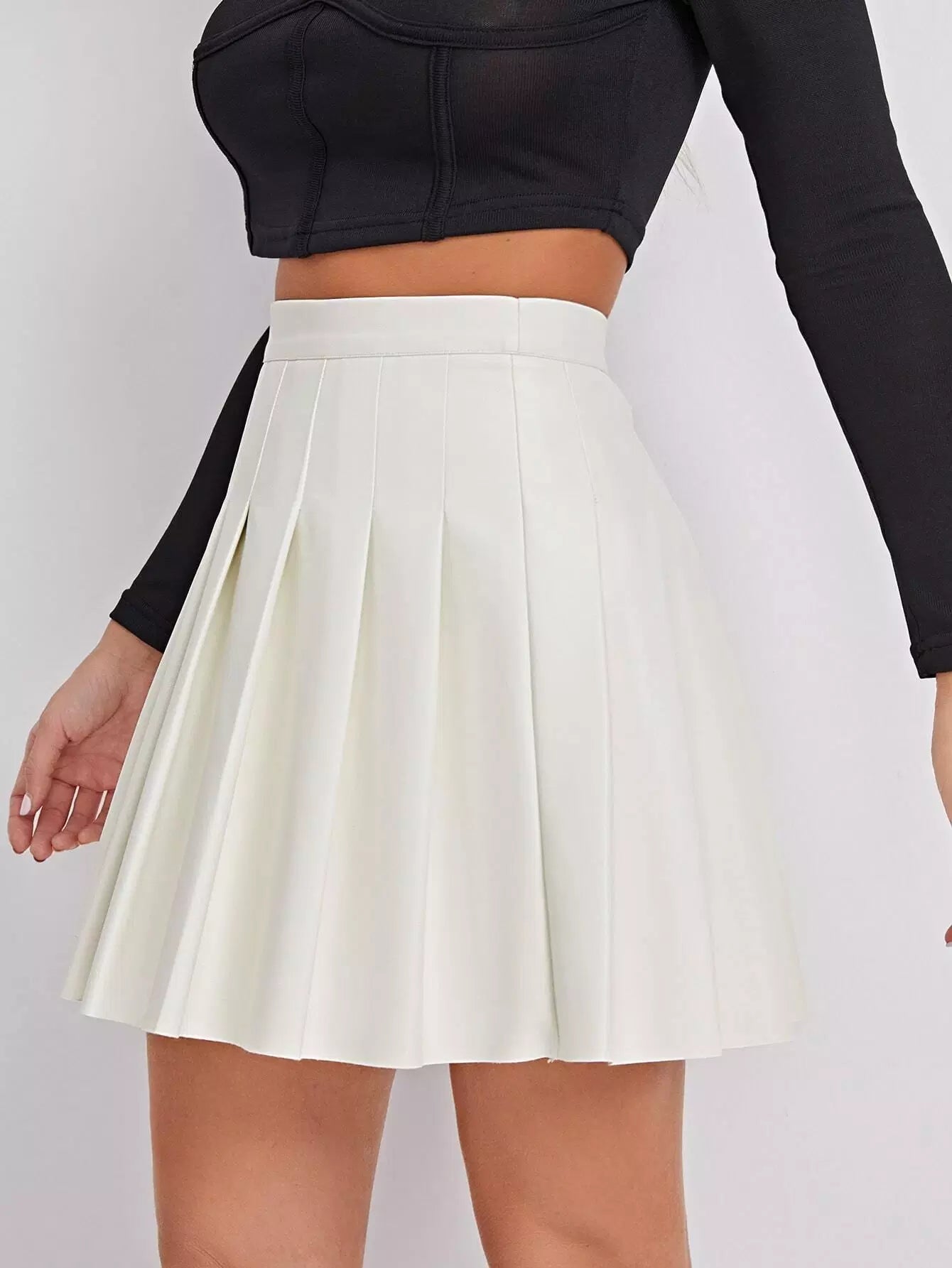 تنورة جلدية صغيرة سادة مطوية من جلد البولي يوريثان
