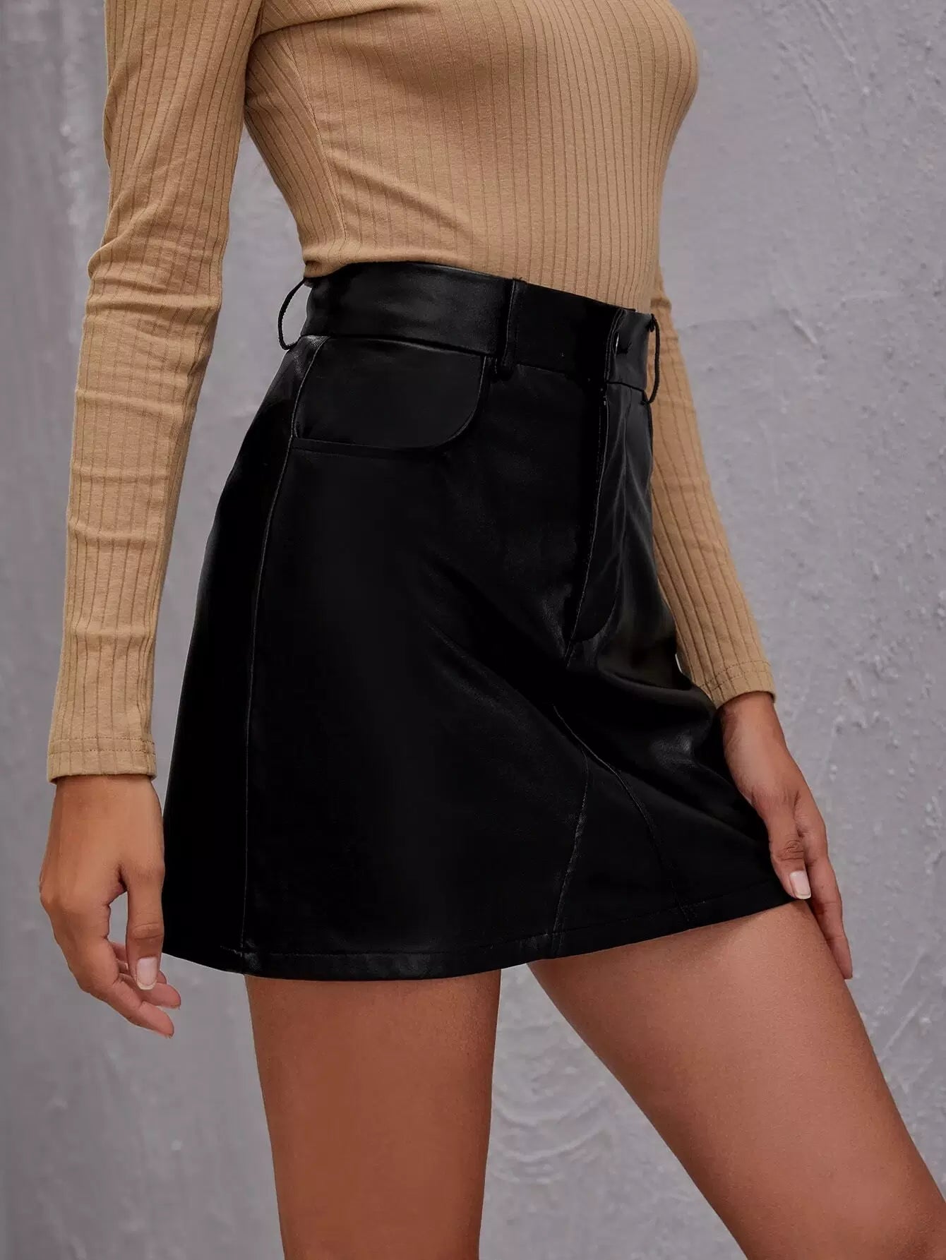 تنورة قصيرة من جلد البولي يوريثان السادة