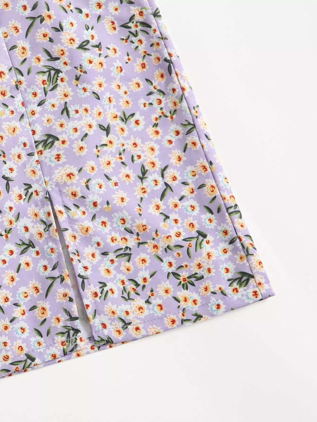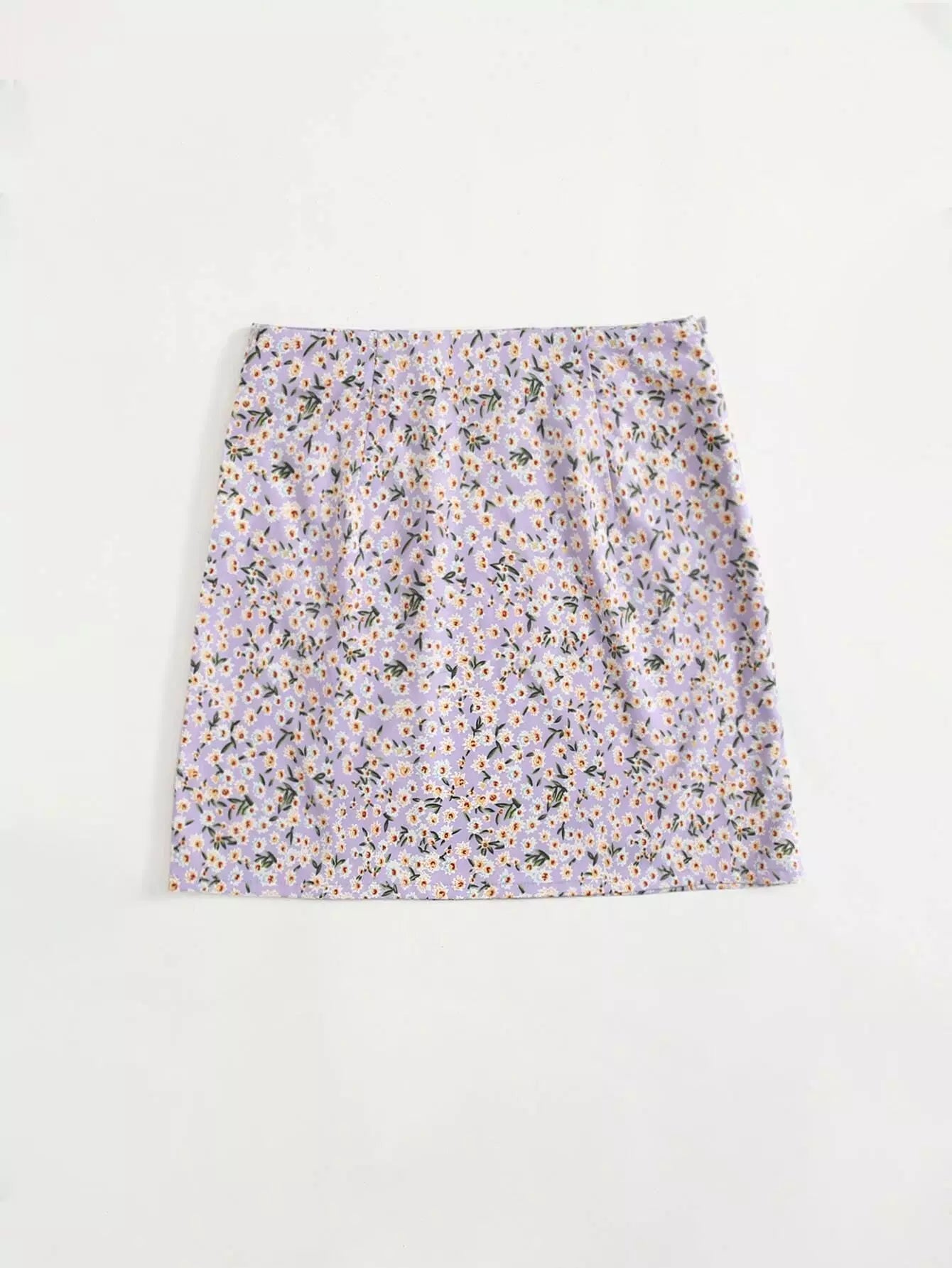 تنورة مزينة بنقشة الزهور الصغيرة ذات الحافة المنقسمة