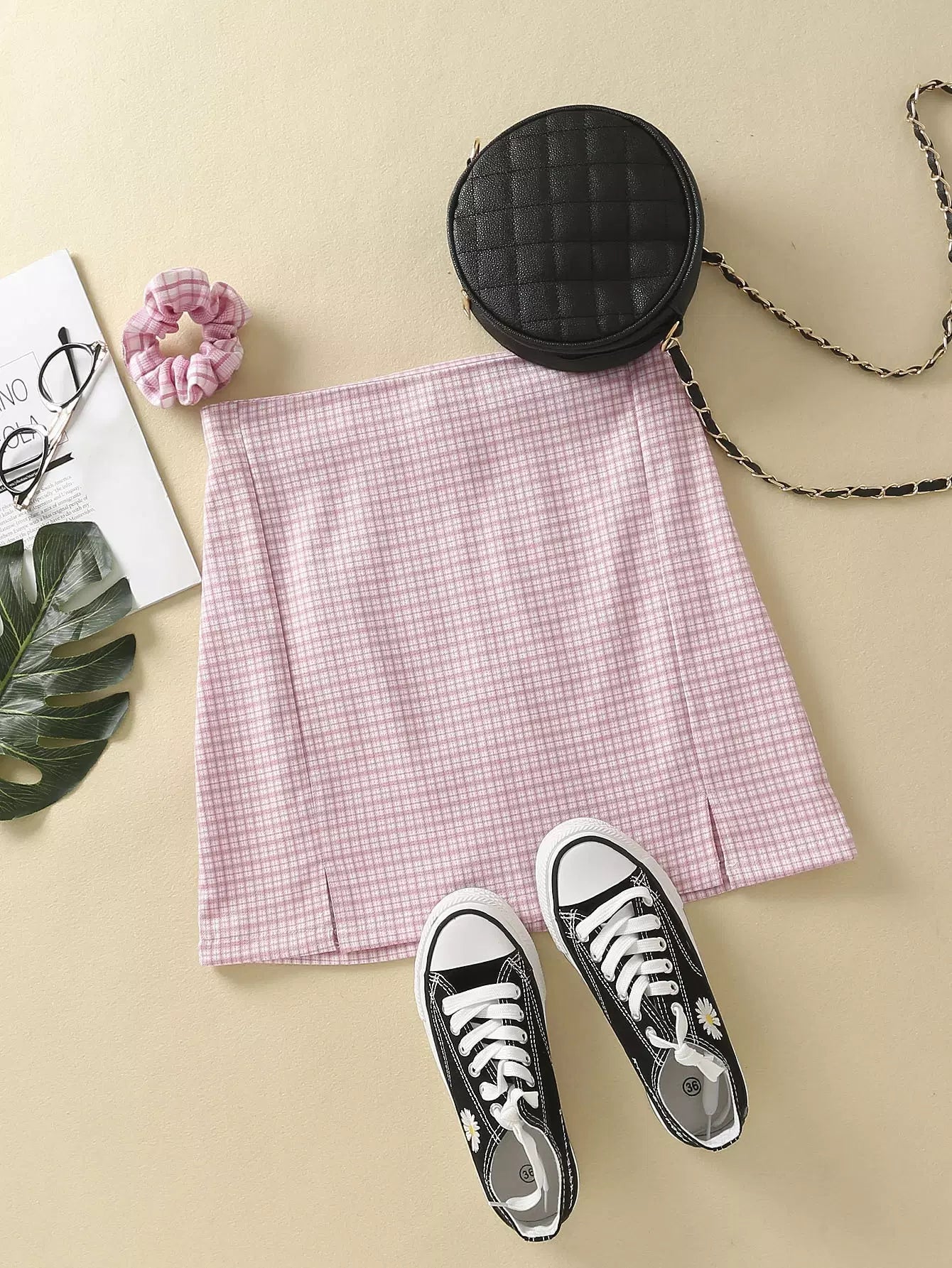 تنورة منقوشة بحافة منقسمة على شكل حرف A