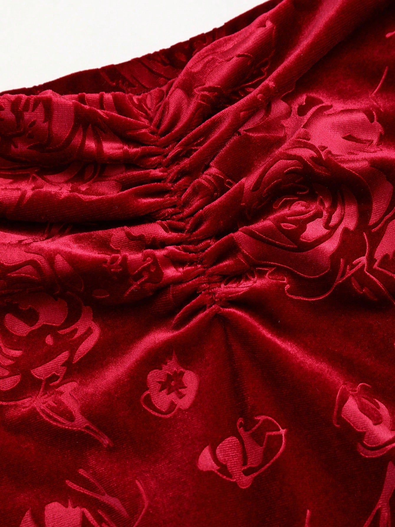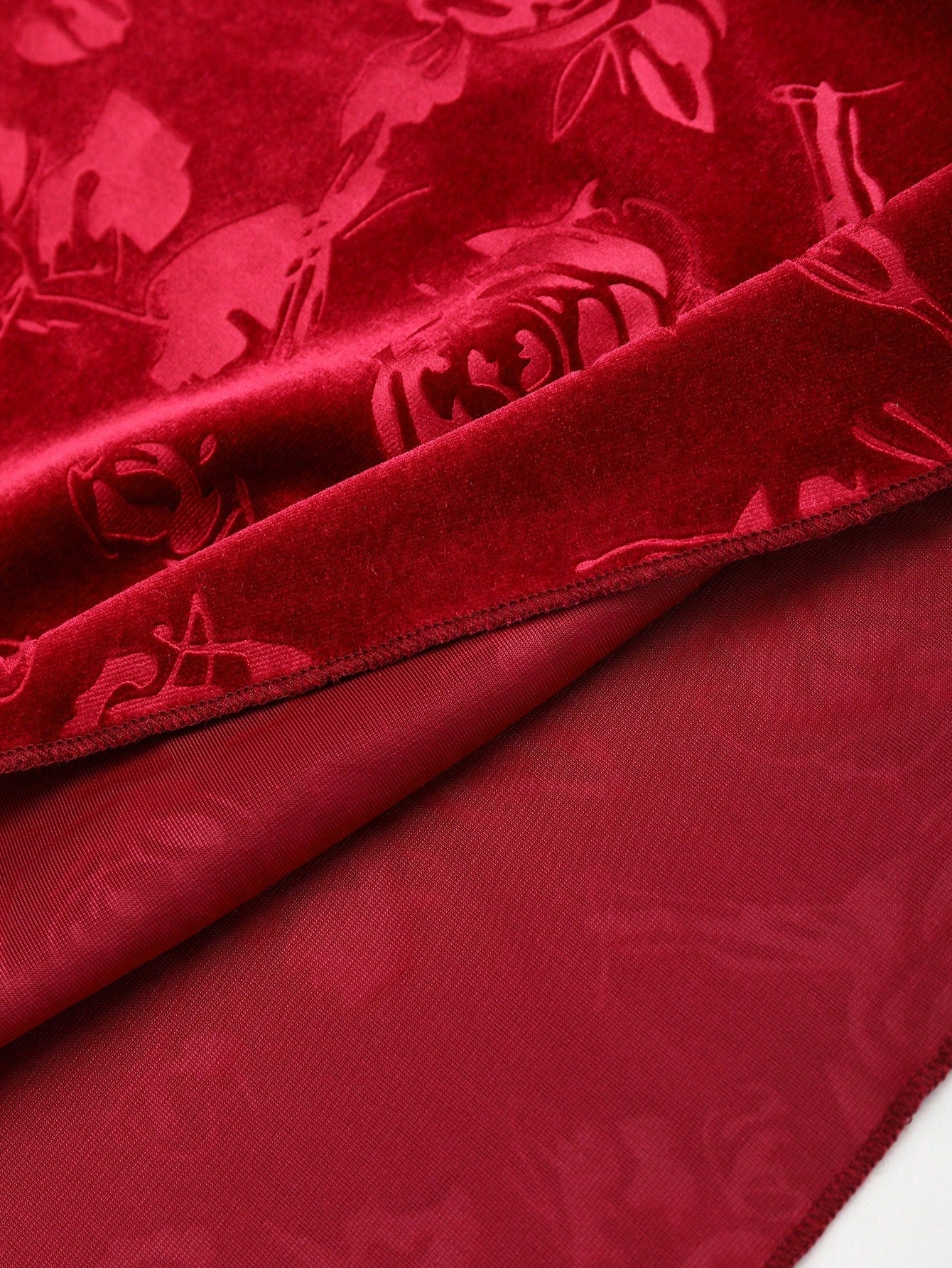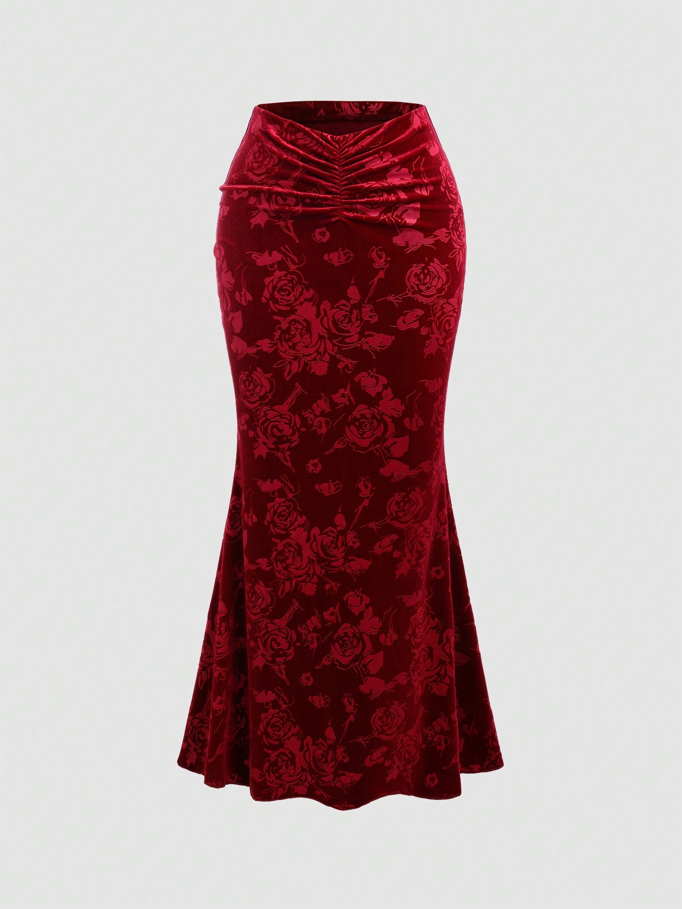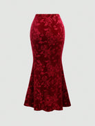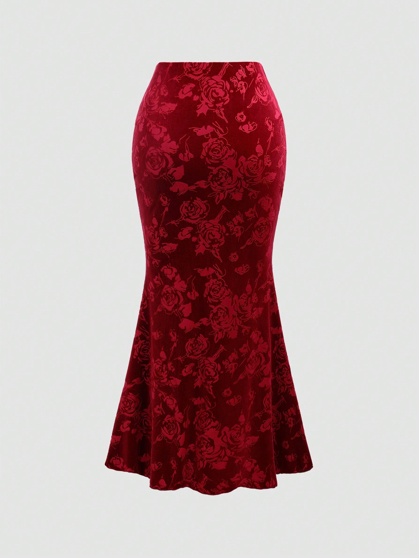 Sweetra Jacquard Rose Patterned Sexy Bodycon Mermaid Skirt With Elastic Waist, Retro And Fashionable