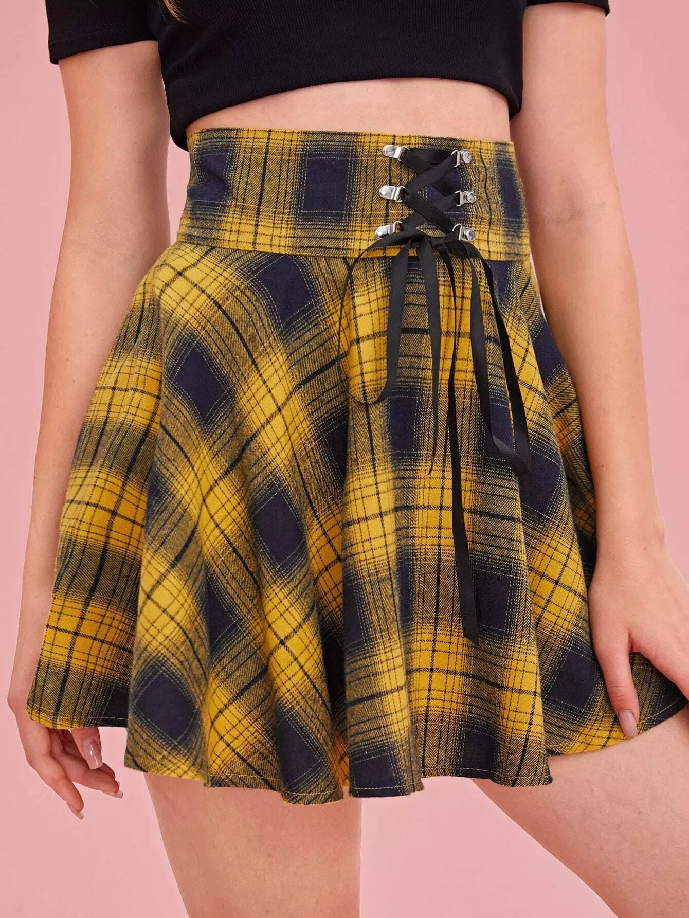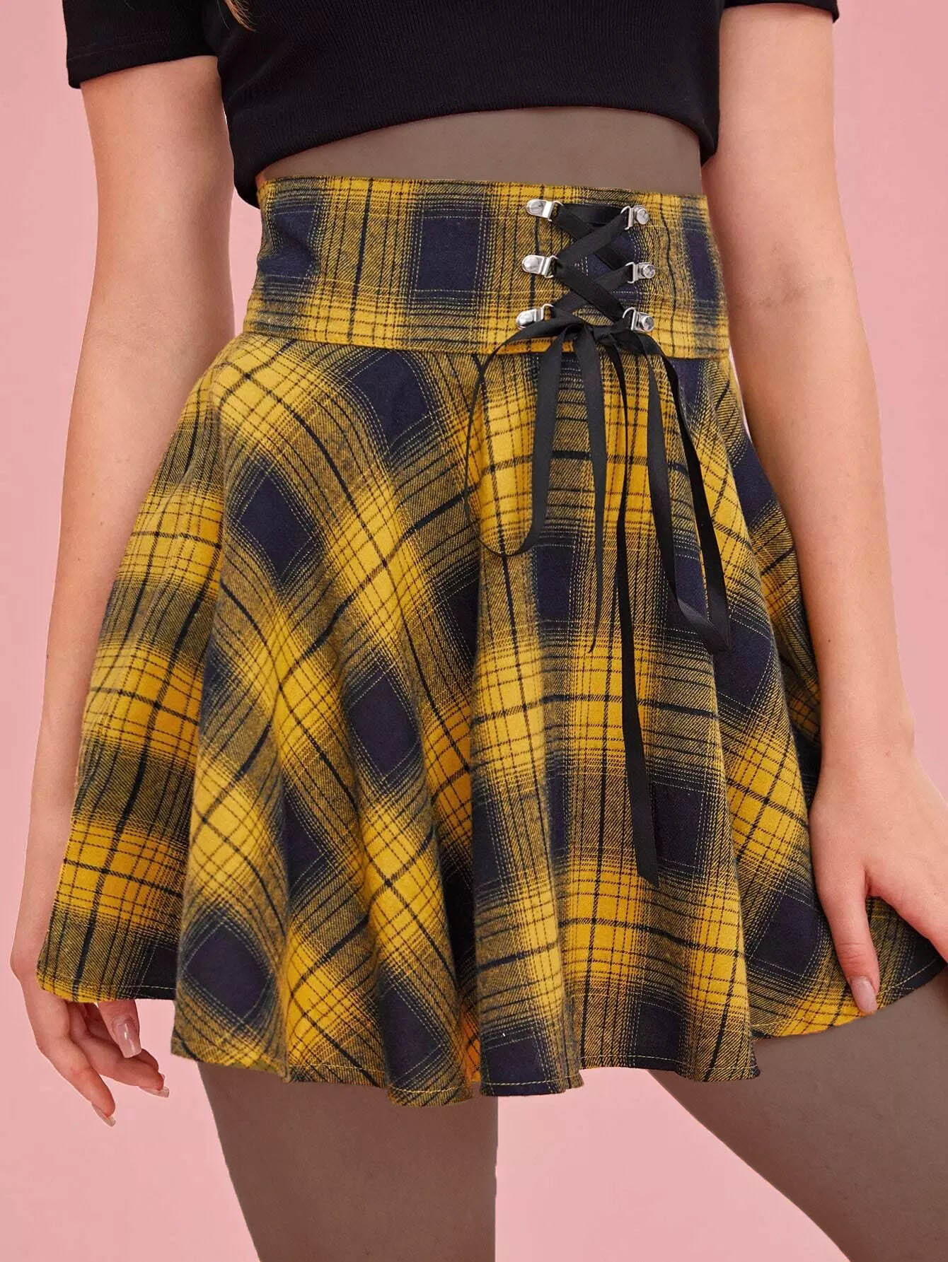 تنورة واسعة من الدانتيل الترتان برباط من الترتان