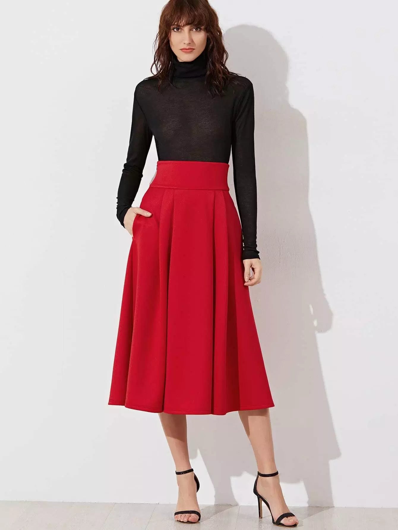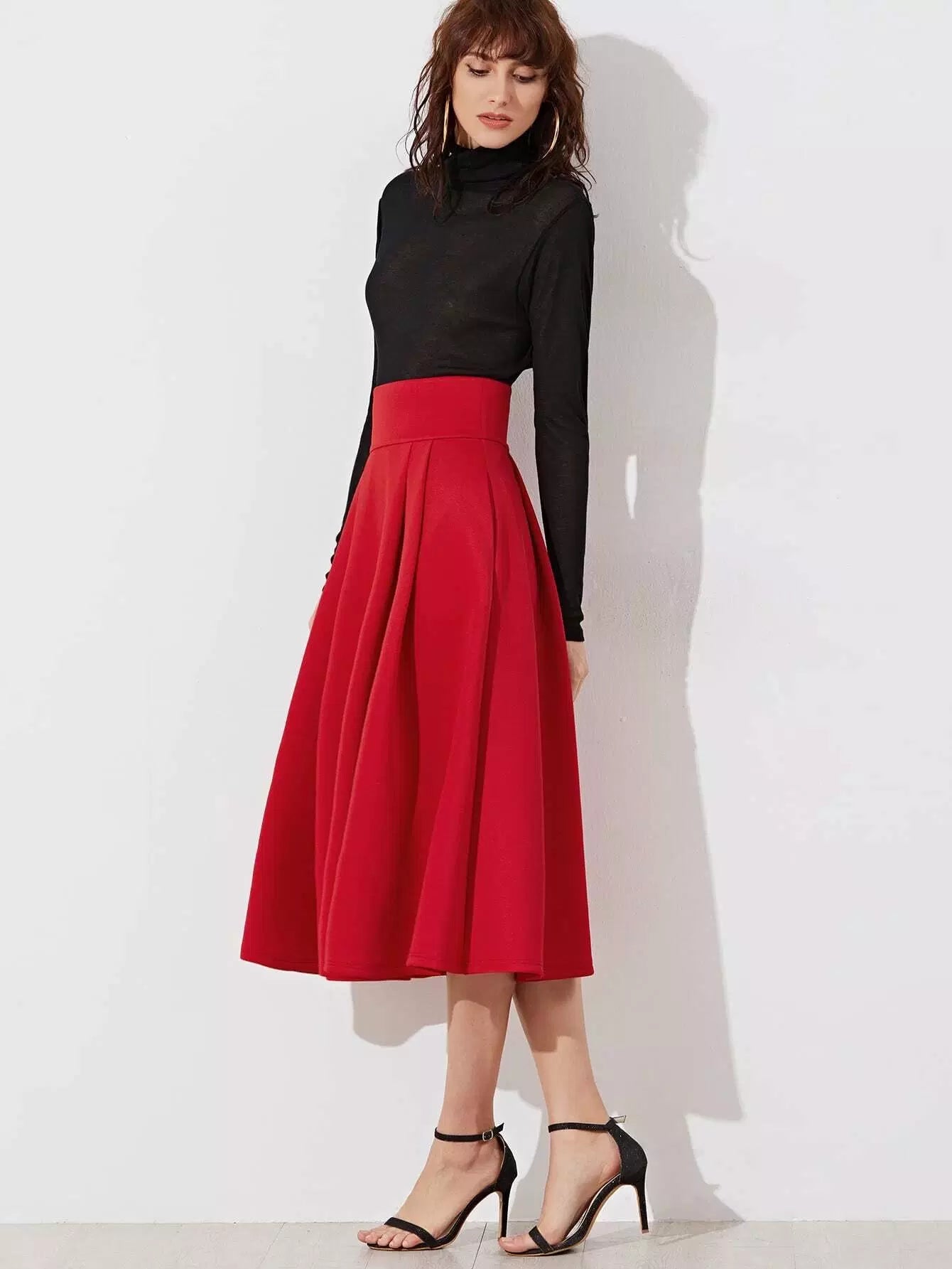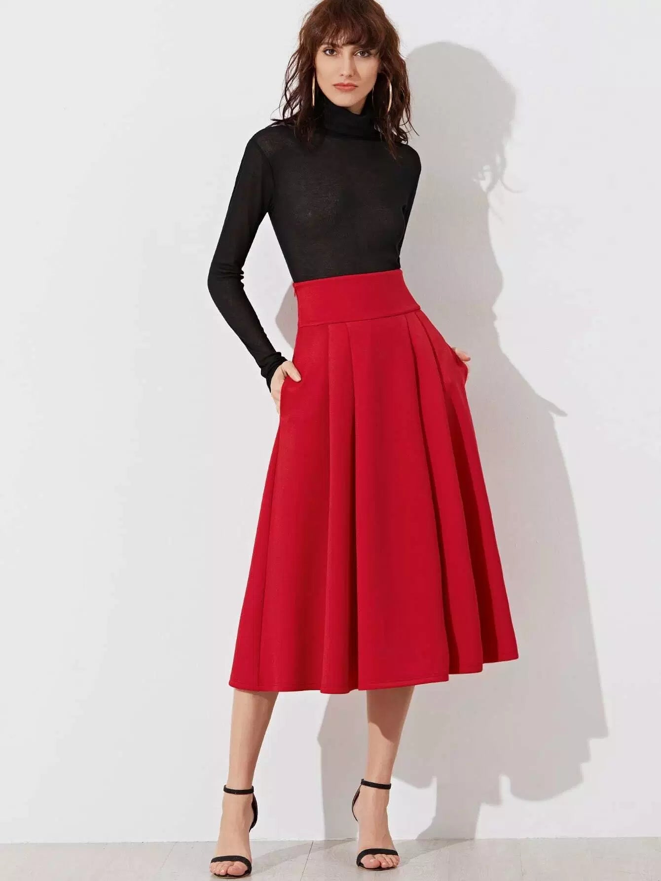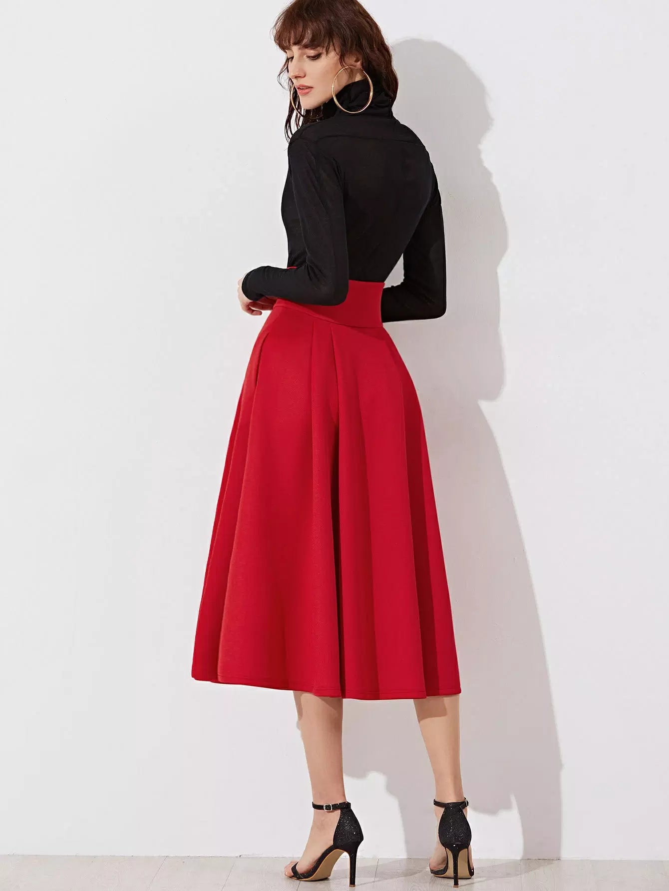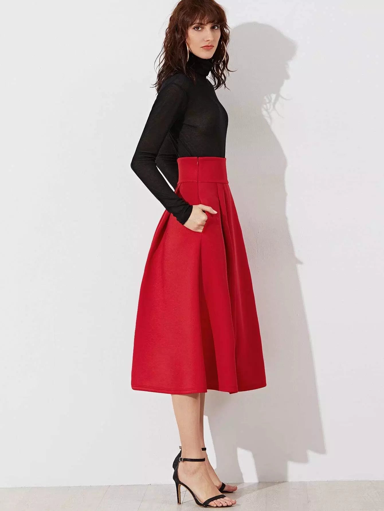 تنورة ميدي عريضة بحزام خصر عريض بسحّاب جانبي بسحّاب مربع مطوية