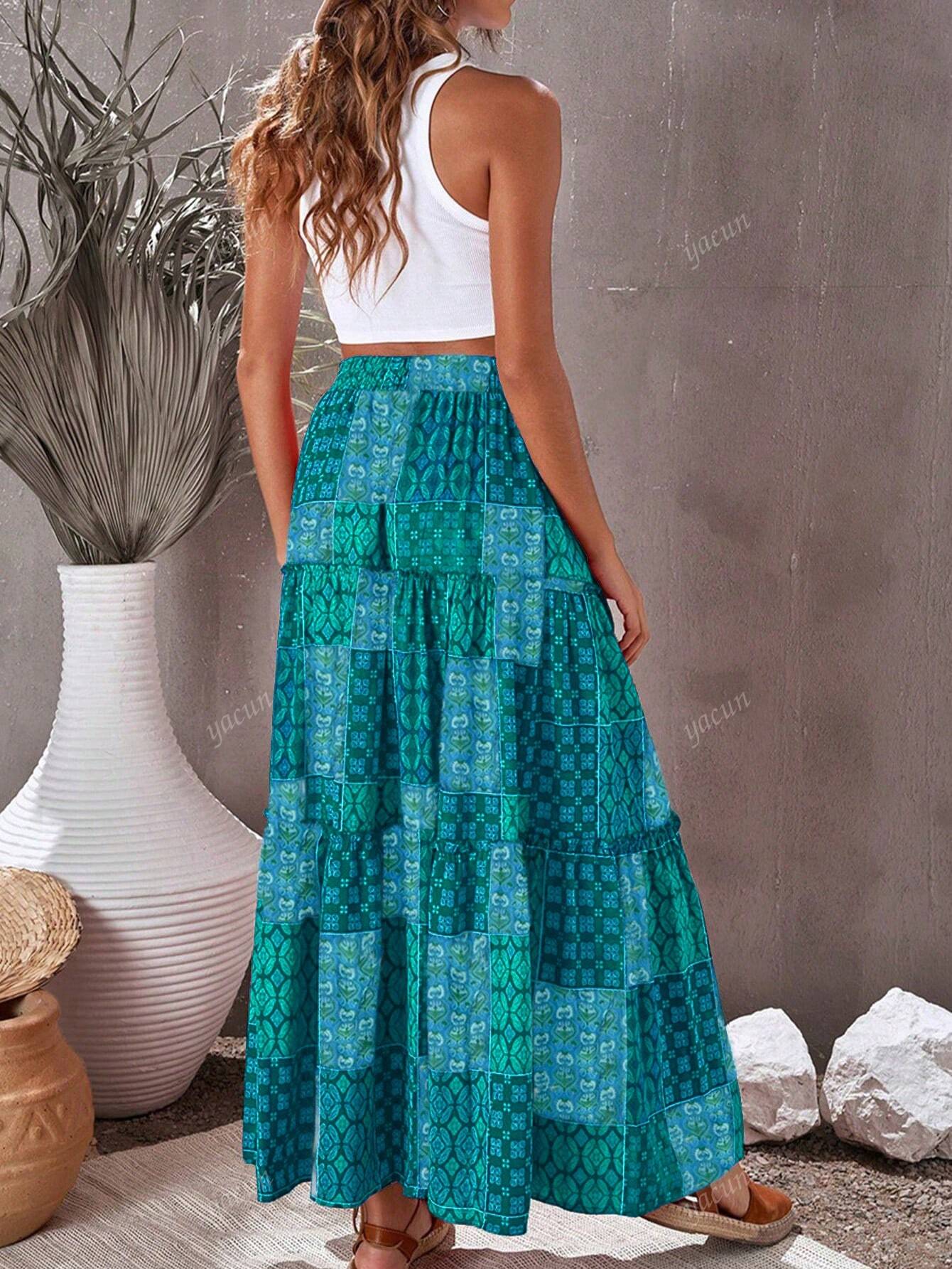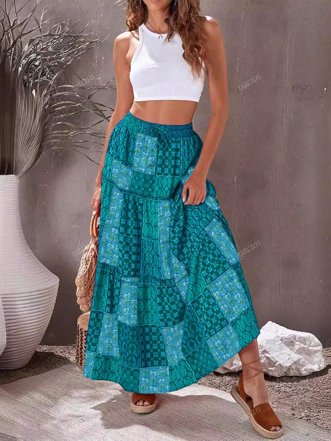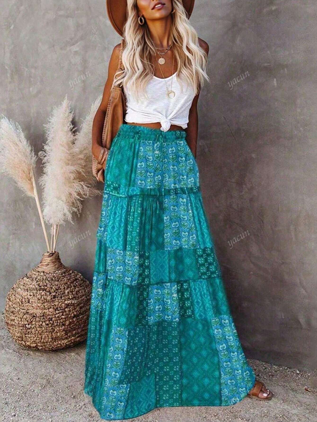 تنورة نسائية طويلة فضفاضة غير رسمية ذات خصر مرتفع بتصميم بوهيمي جديد