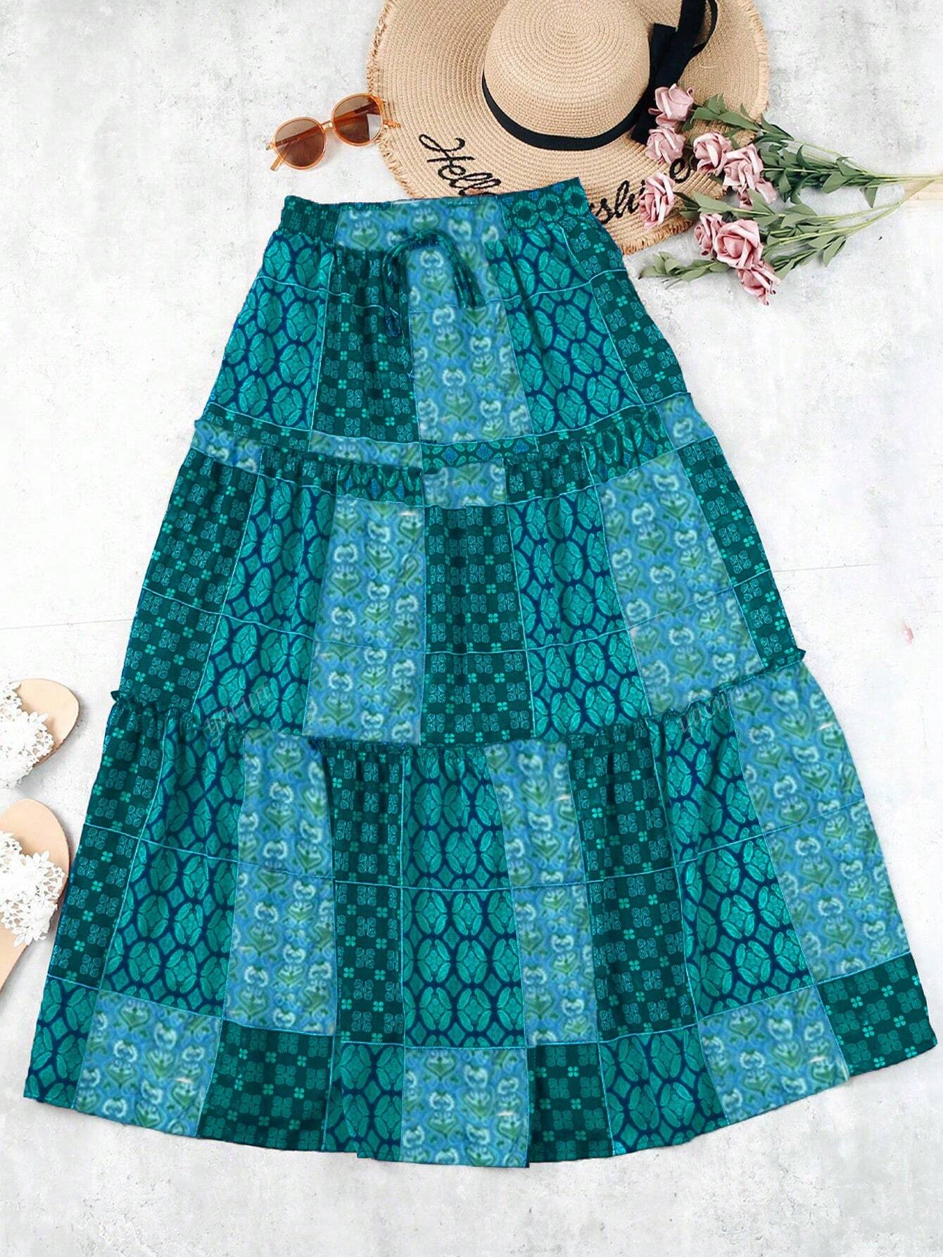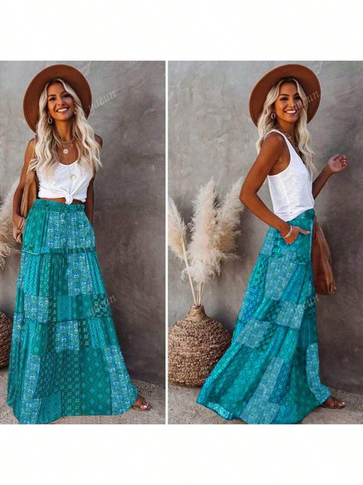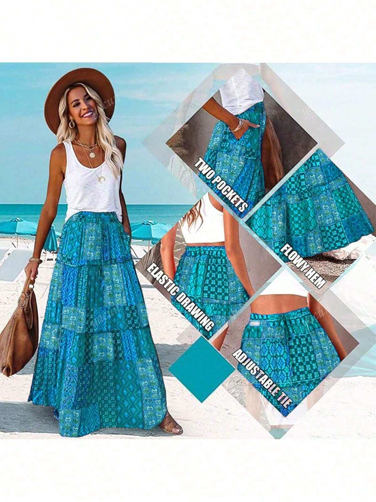 تنورة نسائية طويلة فضفاضة غير رسمية ذات خصر مرتفع بتصميم بوهيمي جديد