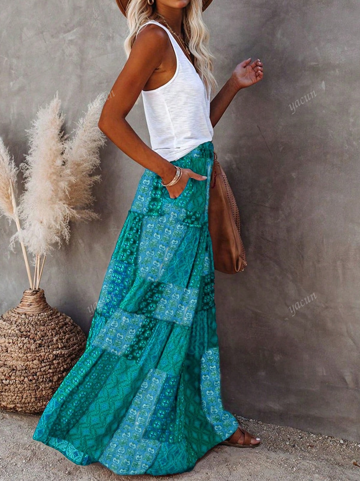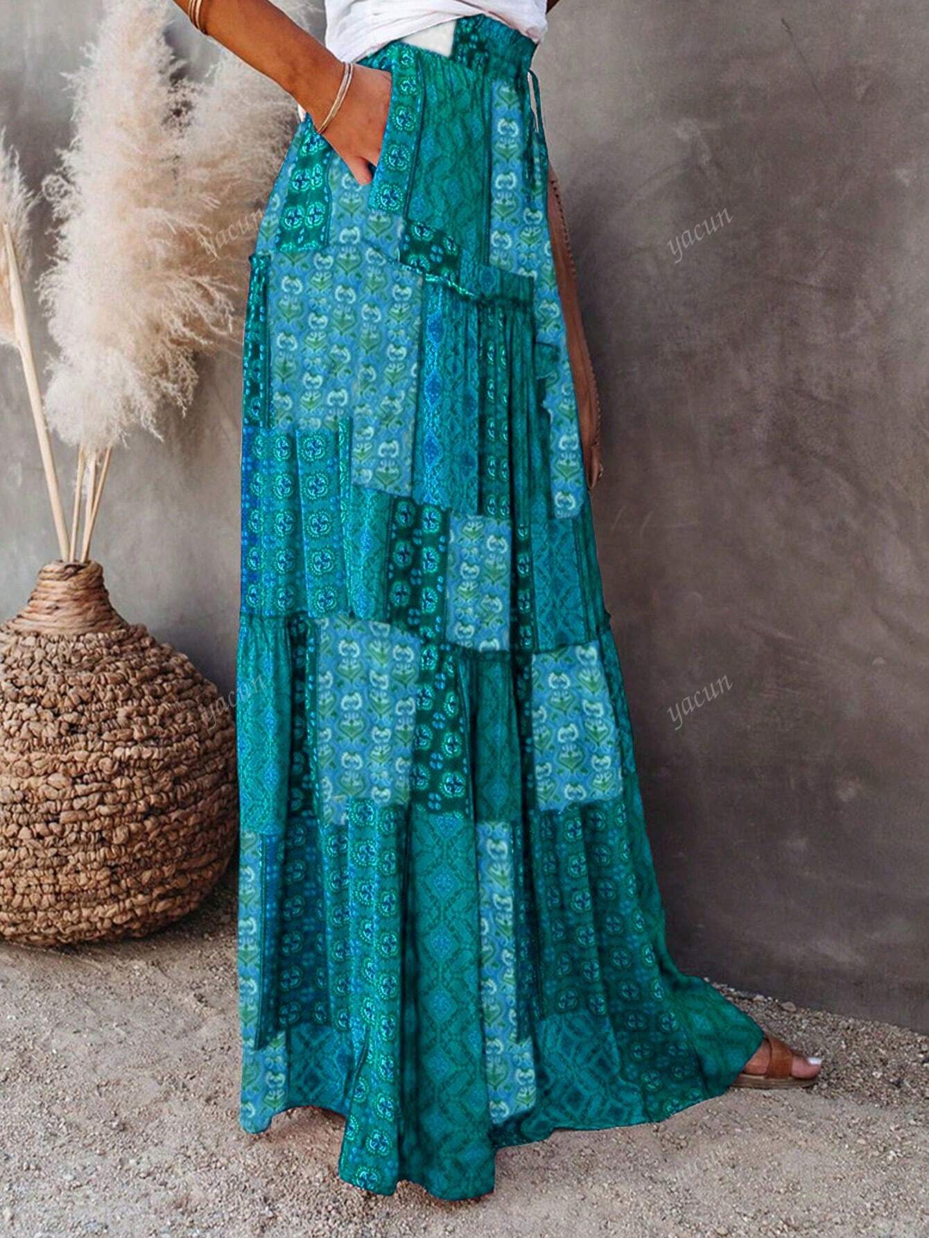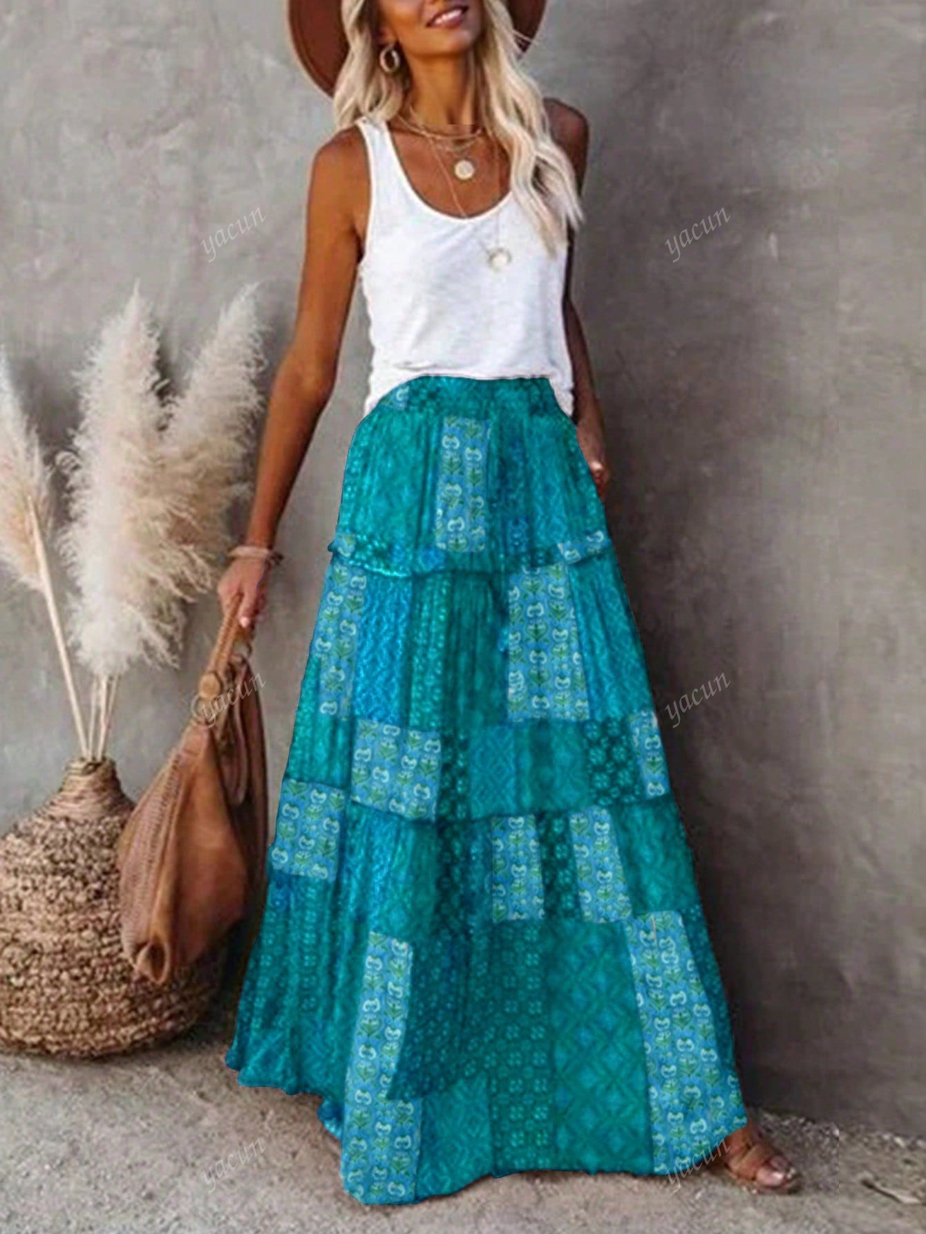 women Women's New Bohemian Style High Waist Loose Casual Long Skirt