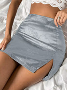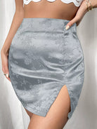 تنورة ساتان جاكار بحافة منقسمة من الساتان بسحاب من الخلف
