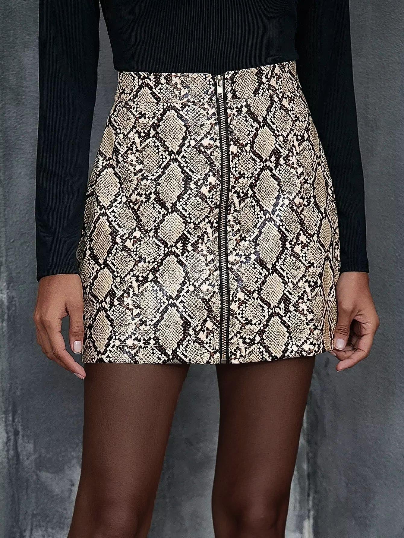 تنورة من جلد البولي يوريثان بسحّاب من جلد الثعبان