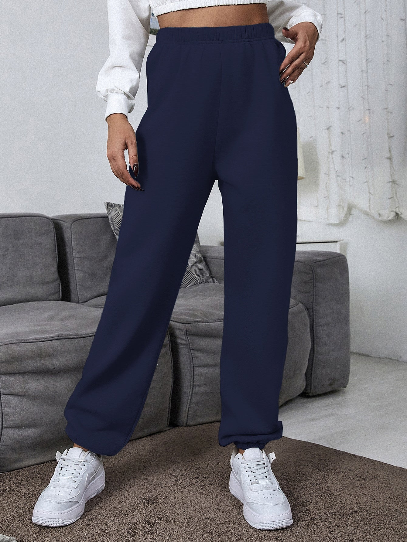 Solid High Waisted Sweatpants