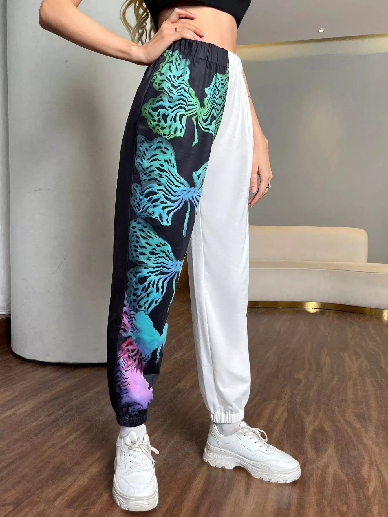 بنطال رياضي بجيب مائل بطبعة فراشات