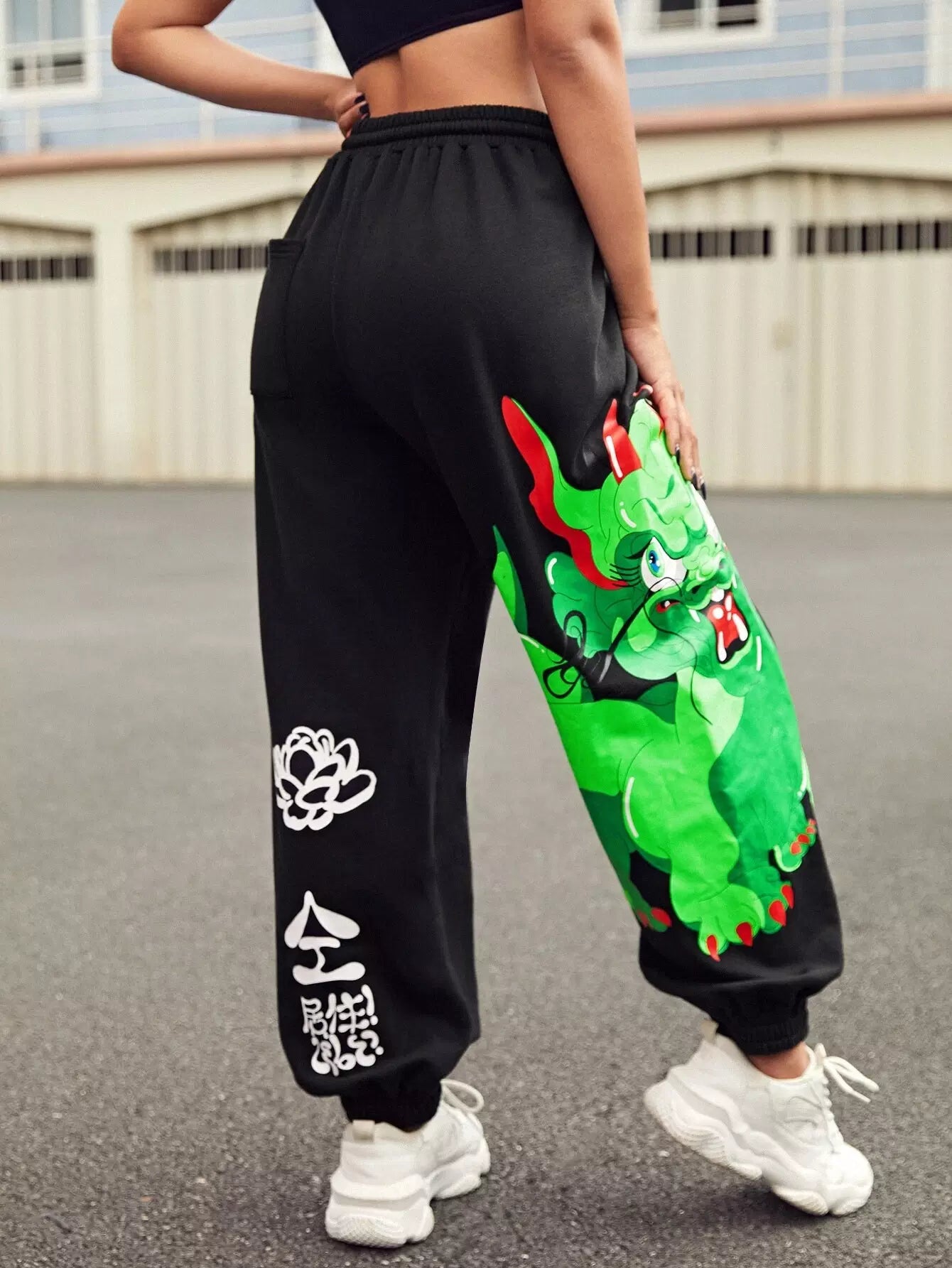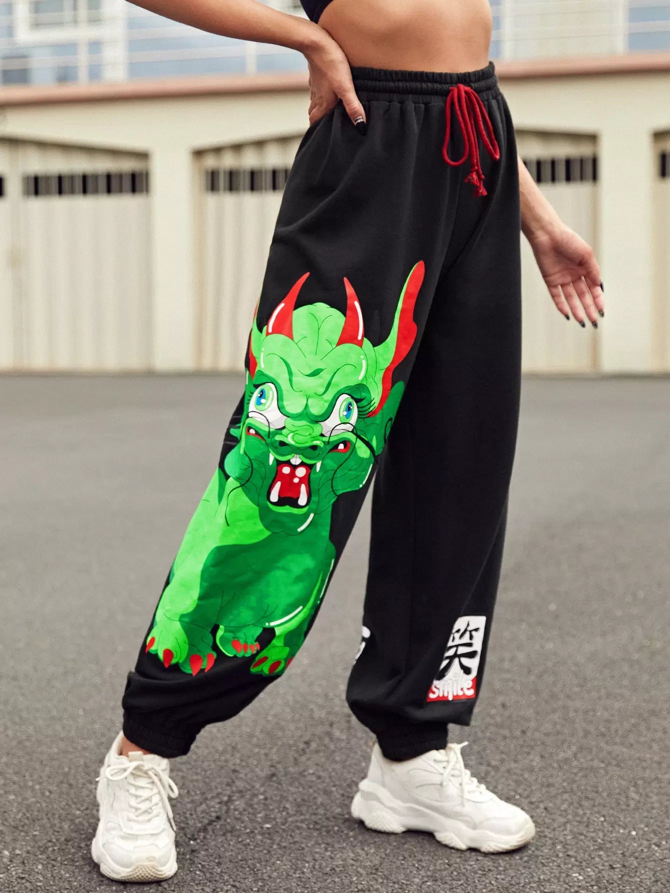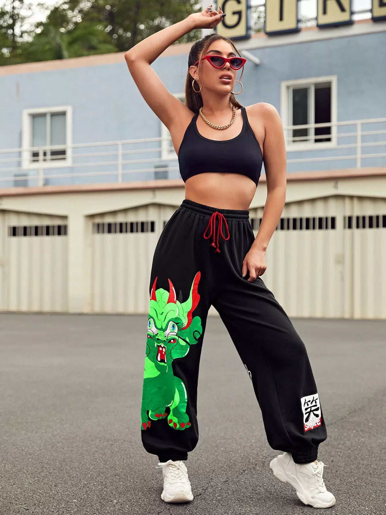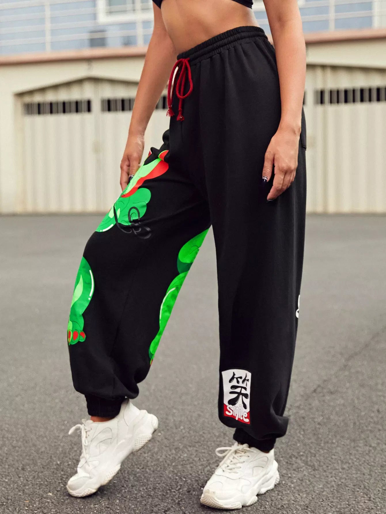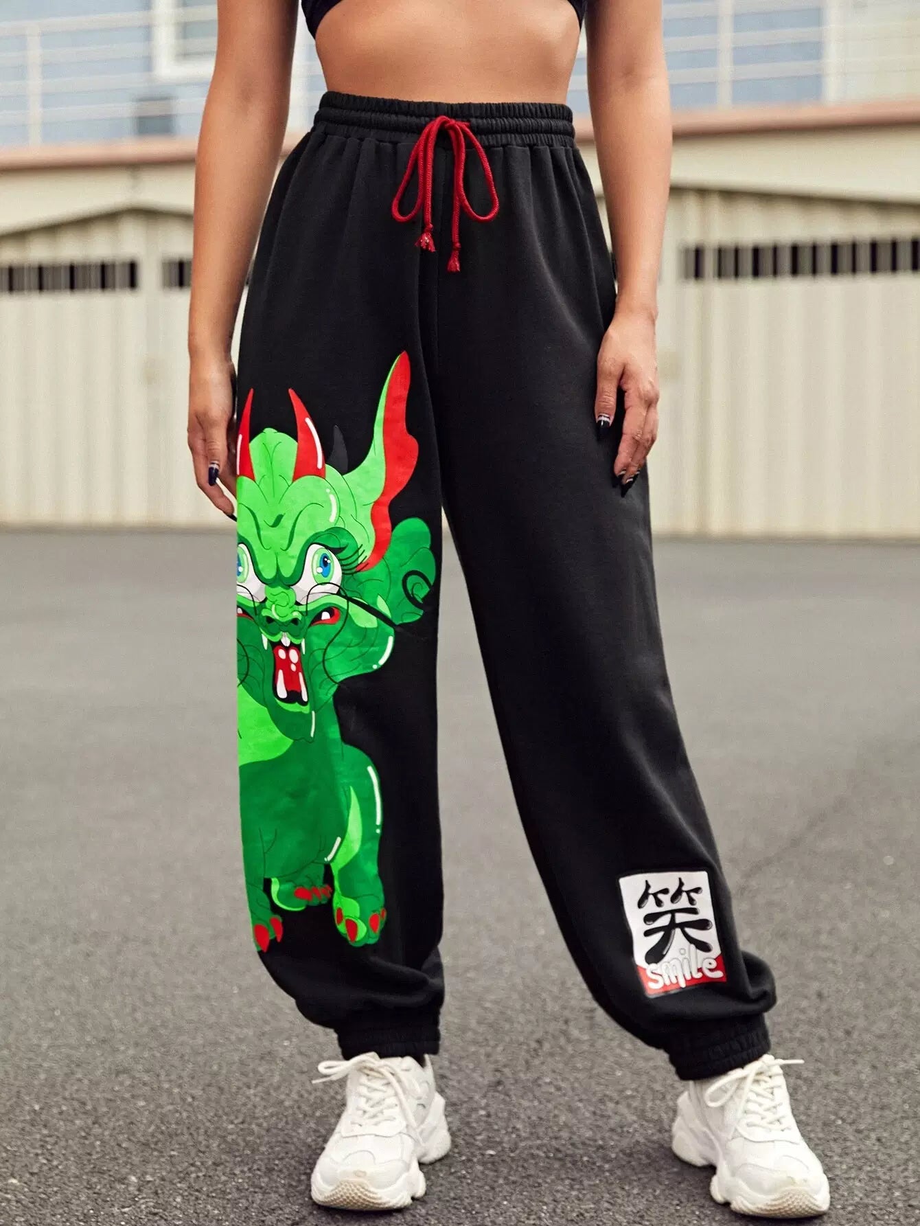 بنطلون رياضي بطبعة كرتونية وصينية برباط خصر مربوط