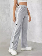 بنطال رياضي بحياكة جانبية أمامية بلون مغاير