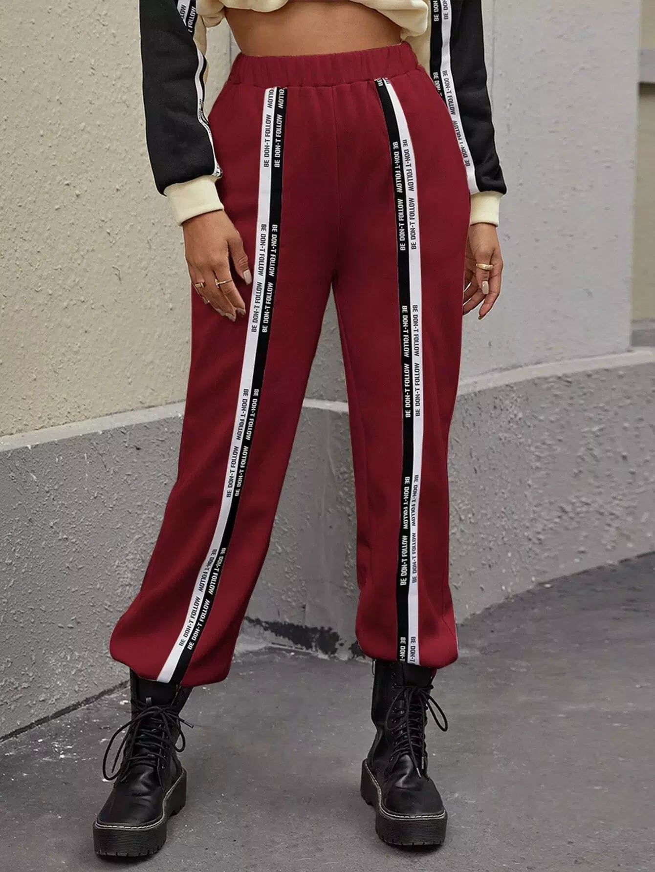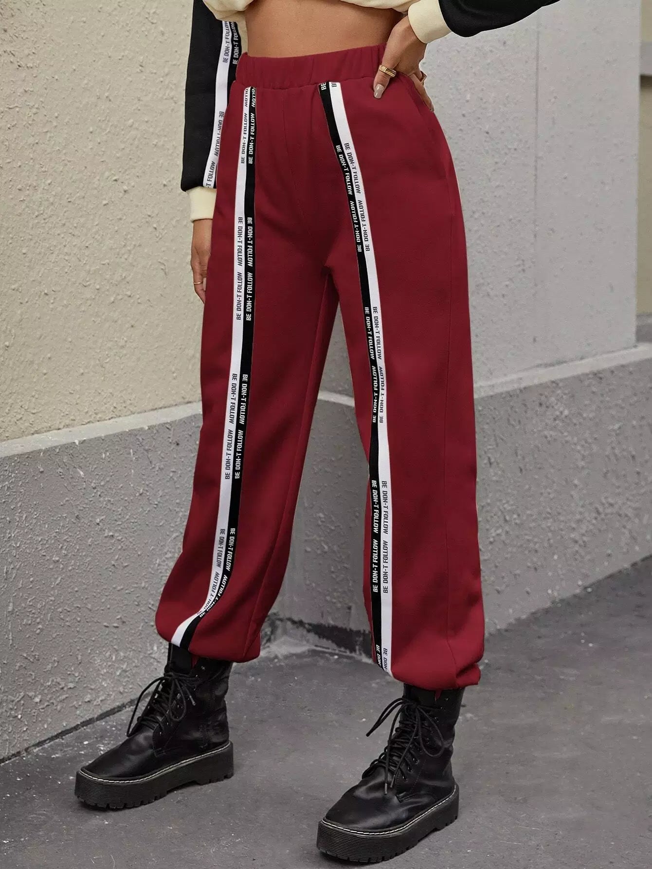 للنساء - بنطال رياضي بجيب مائل وشريط بشعار متباين