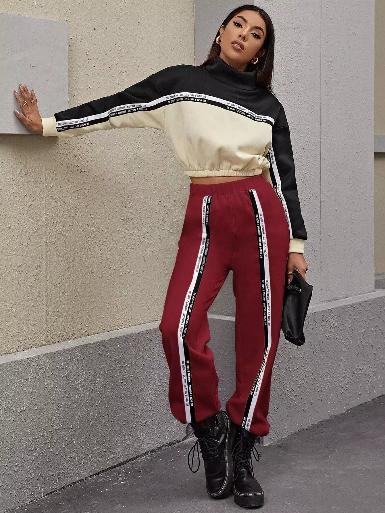 بنطلون رياضي بجيب مائل بشريط بلون مغاير