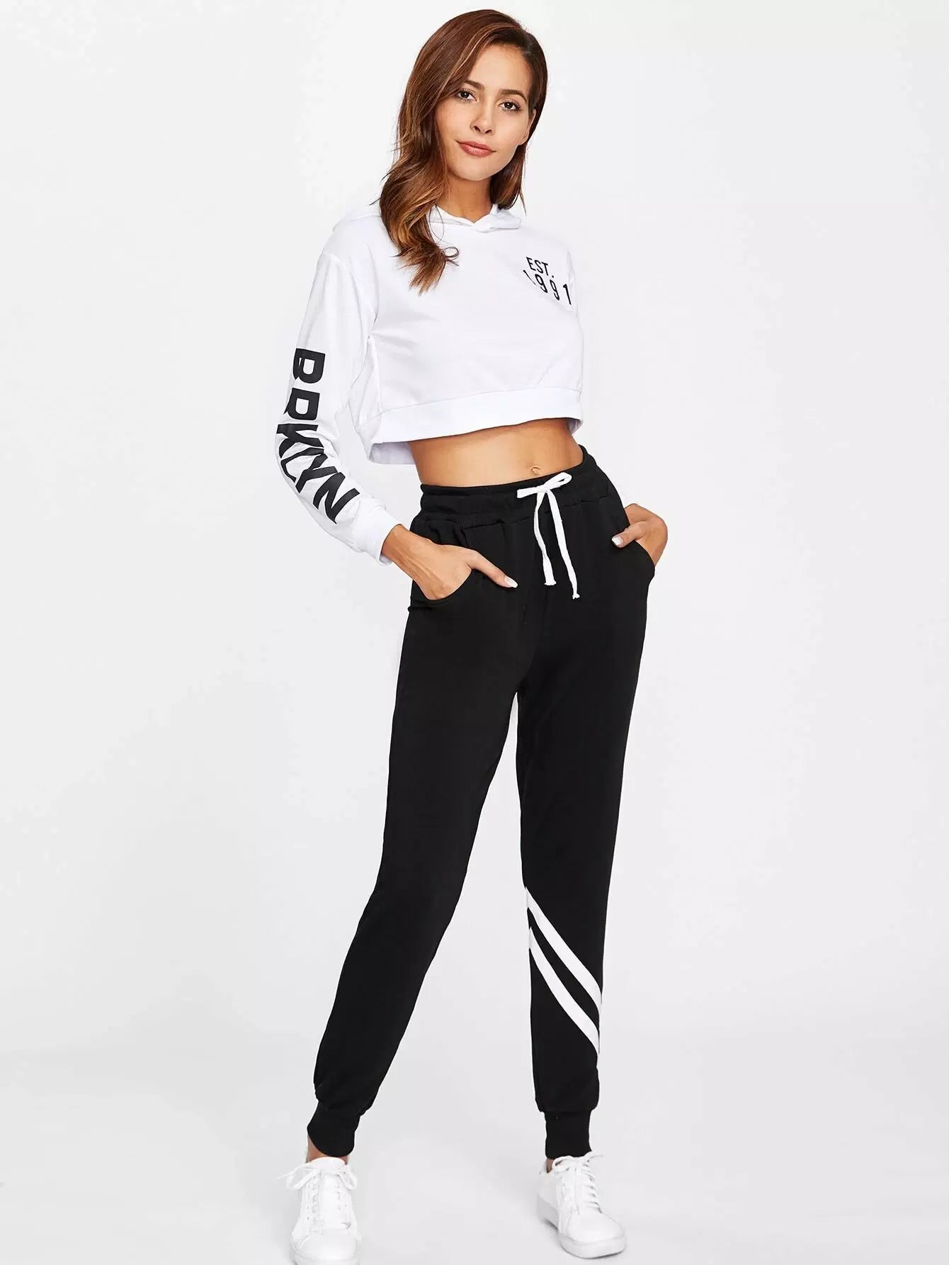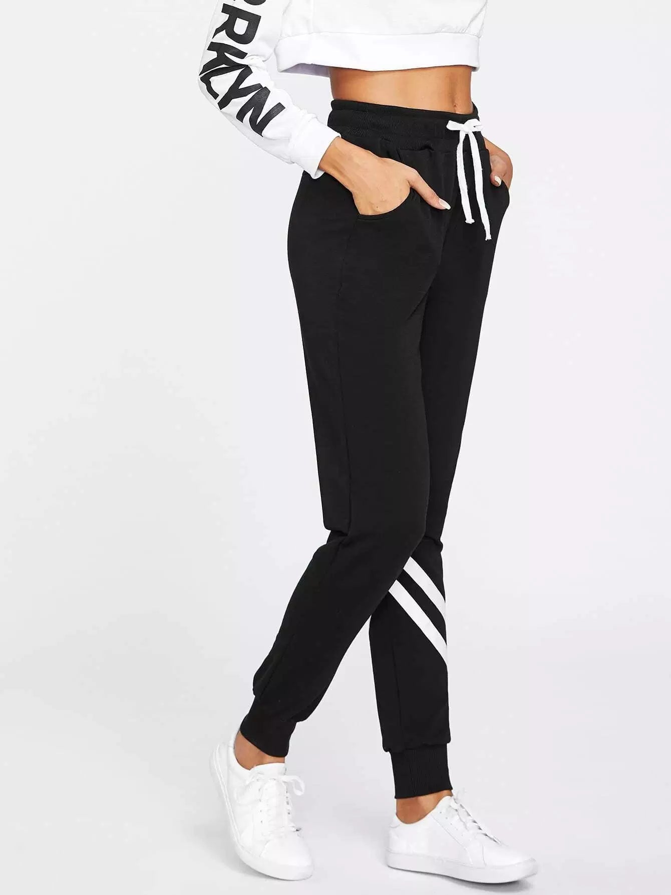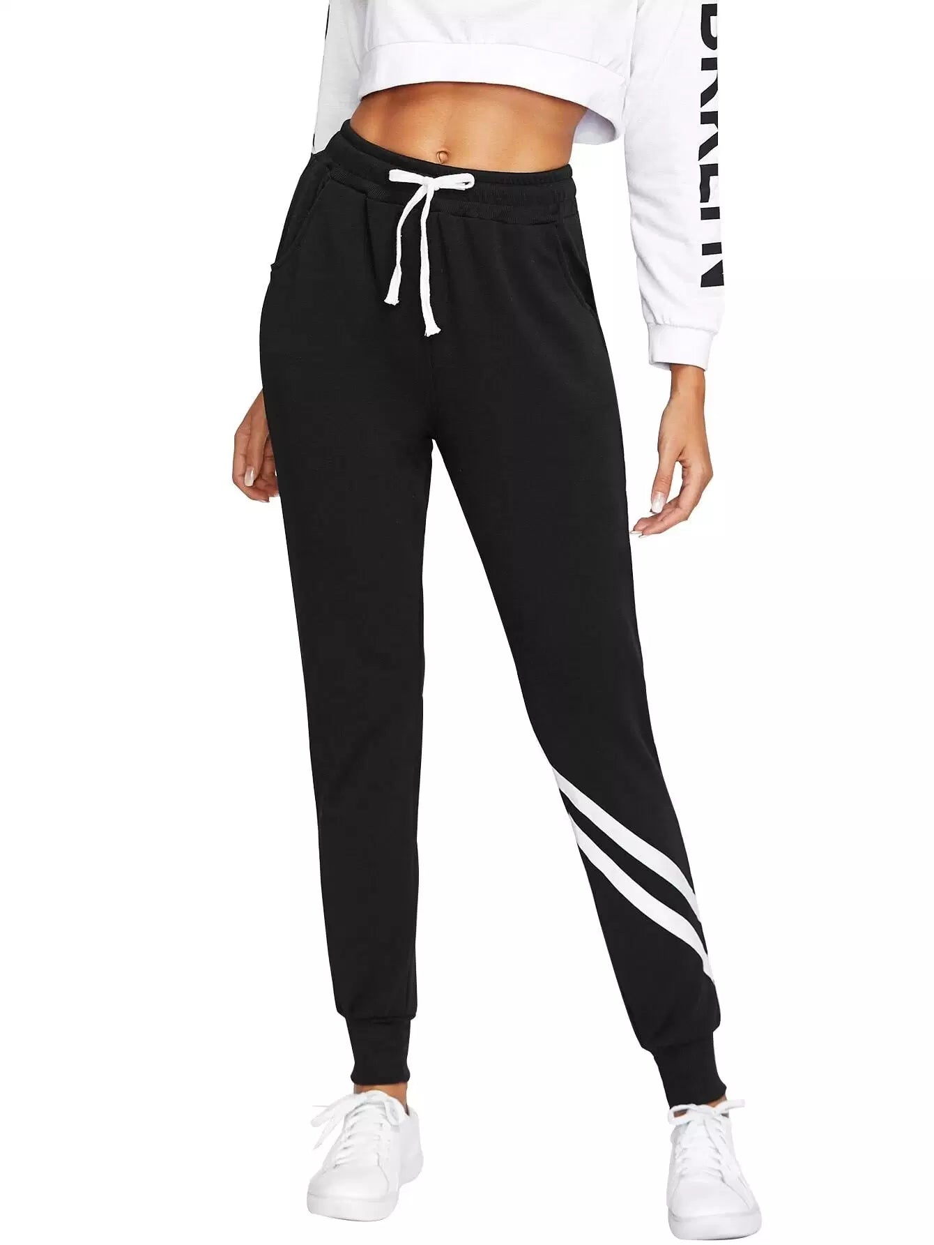 بنطال رياضي - بنطال رياضي مخطط بخصر برباط