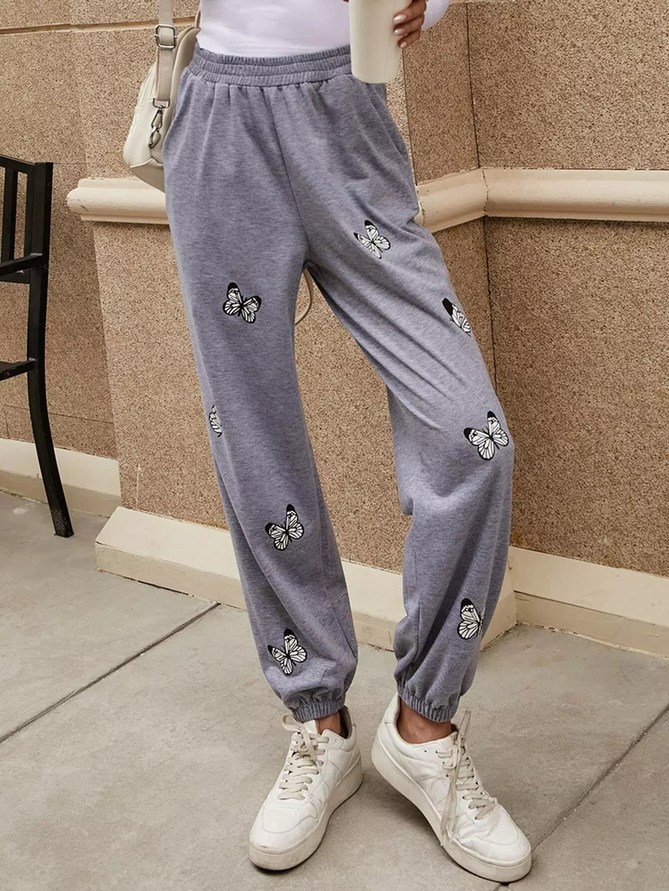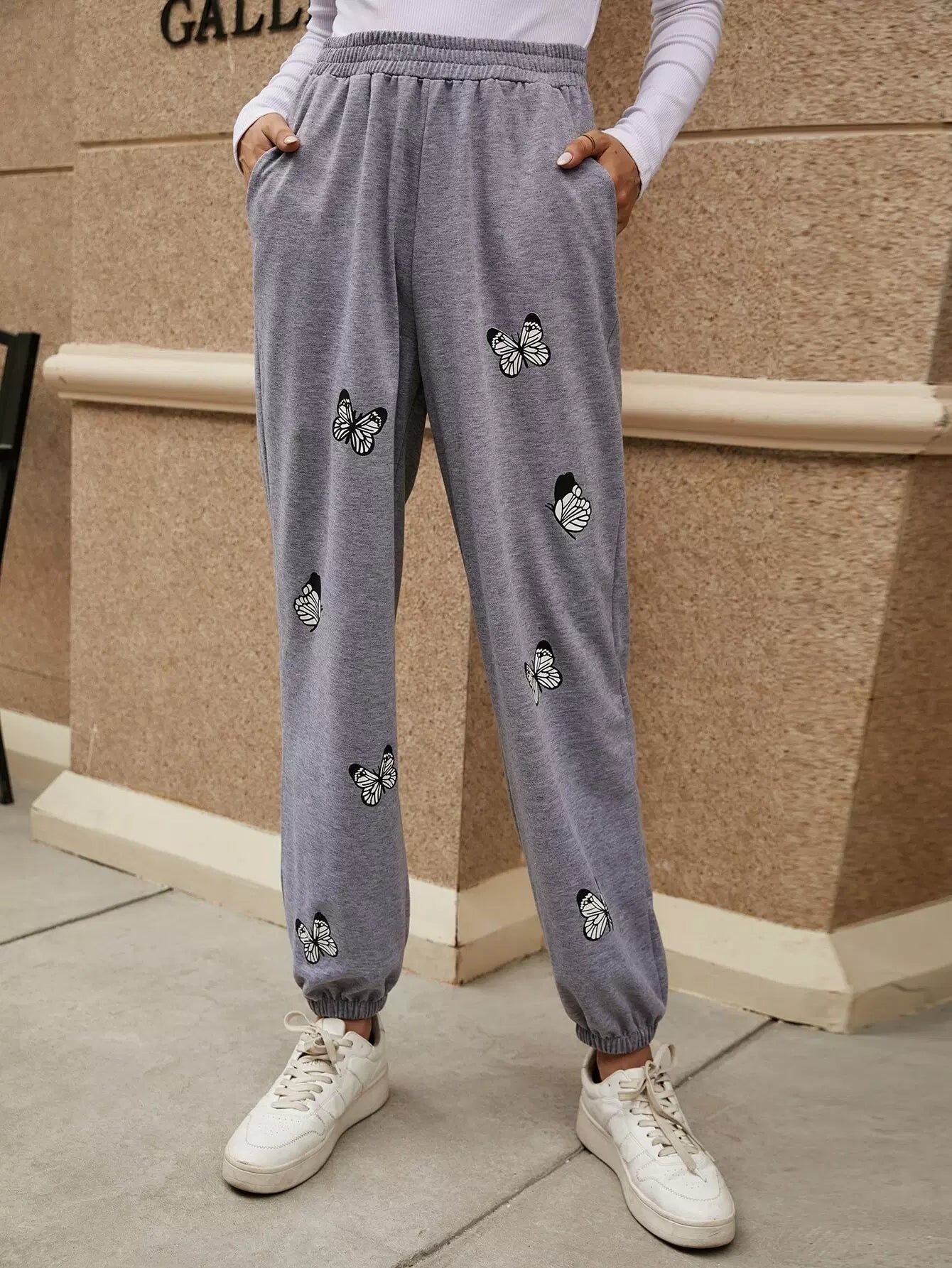 بنطال رياضي بطبعة فراشات وخصر مطاطي
