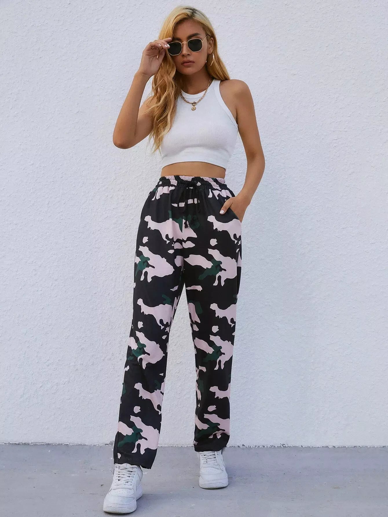 بنطال رياضي بخصر مطاطي بطبعة كامو