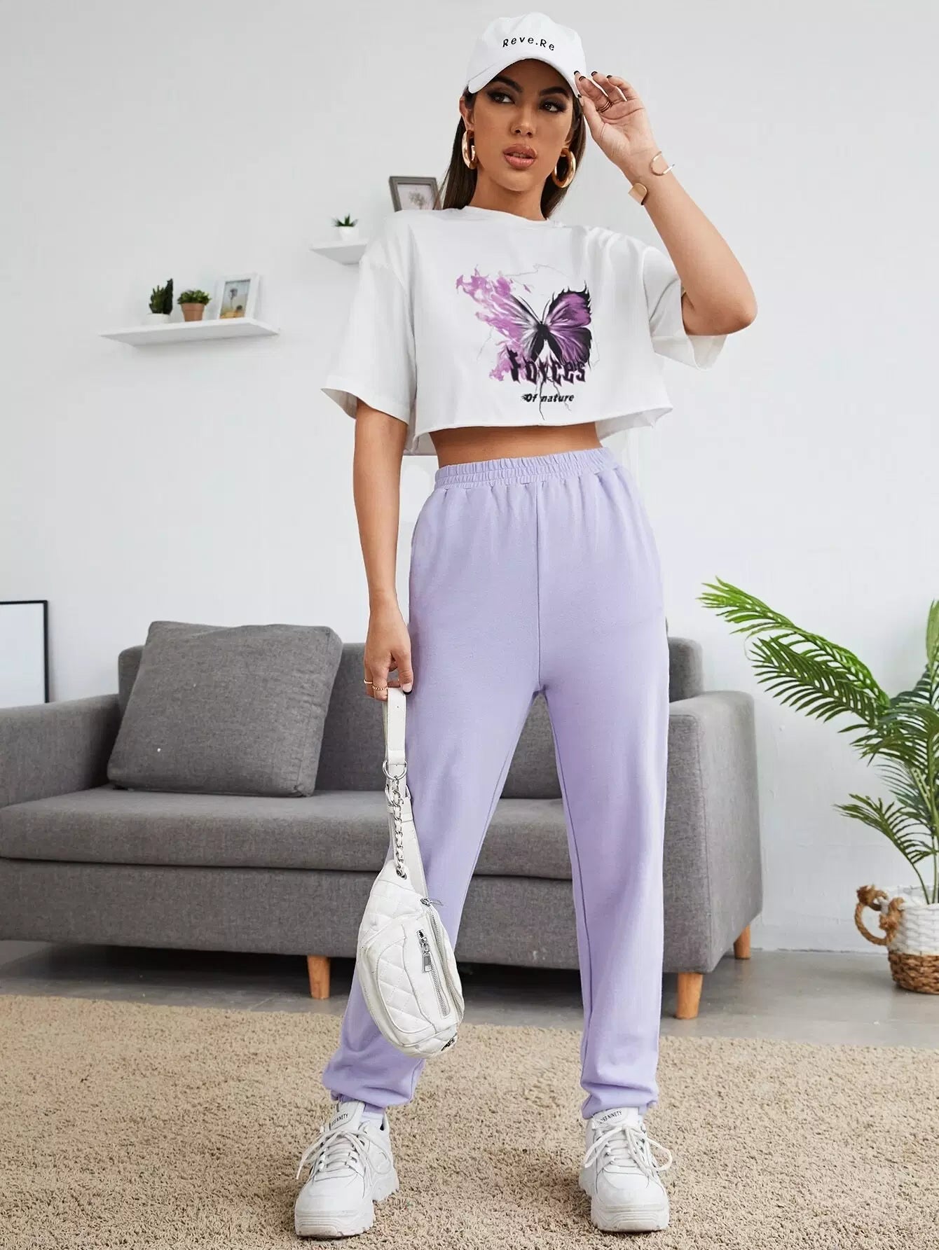 بنطلون رياضي بخصر مرن بجيب مائل مائل مائل