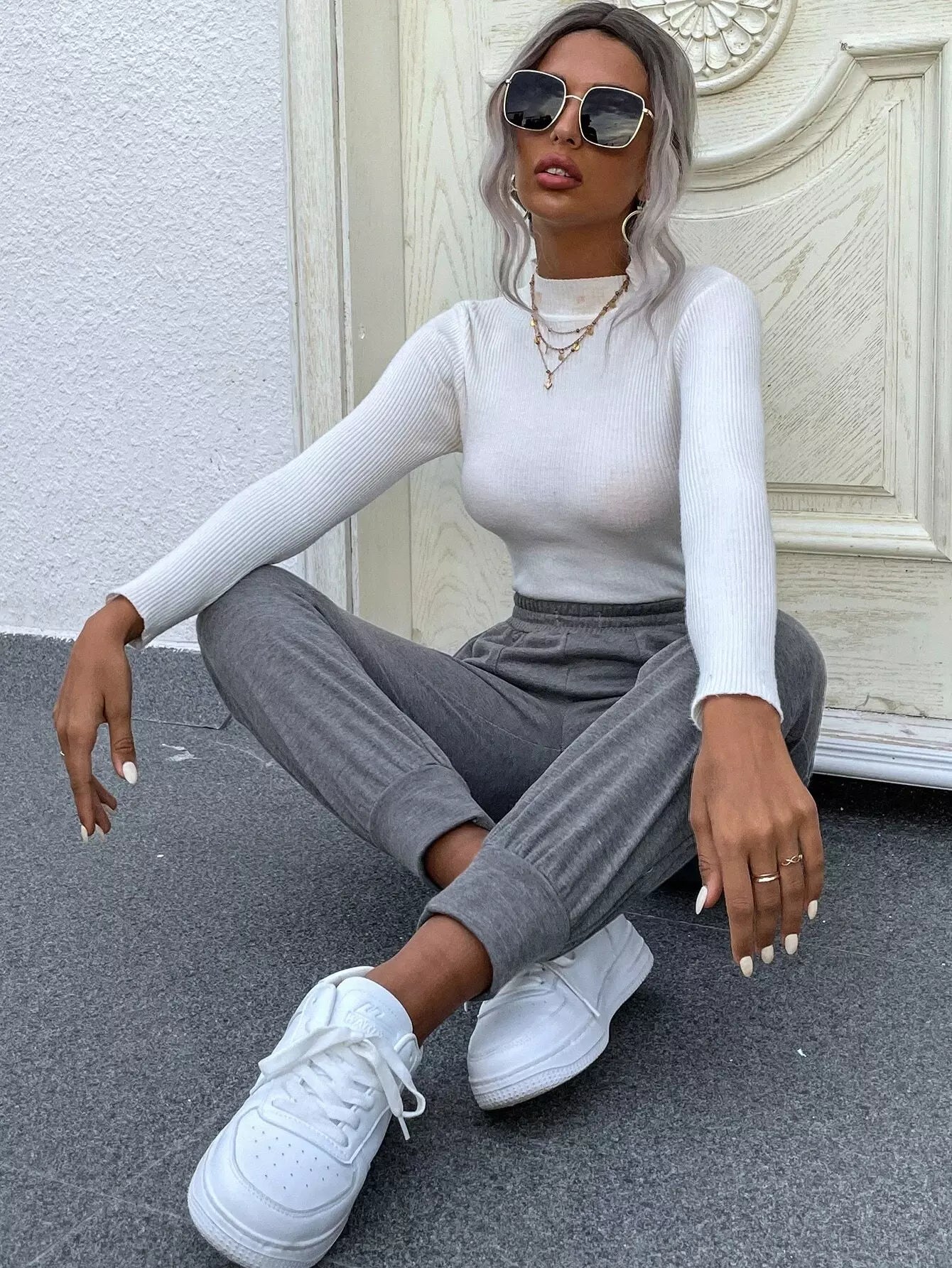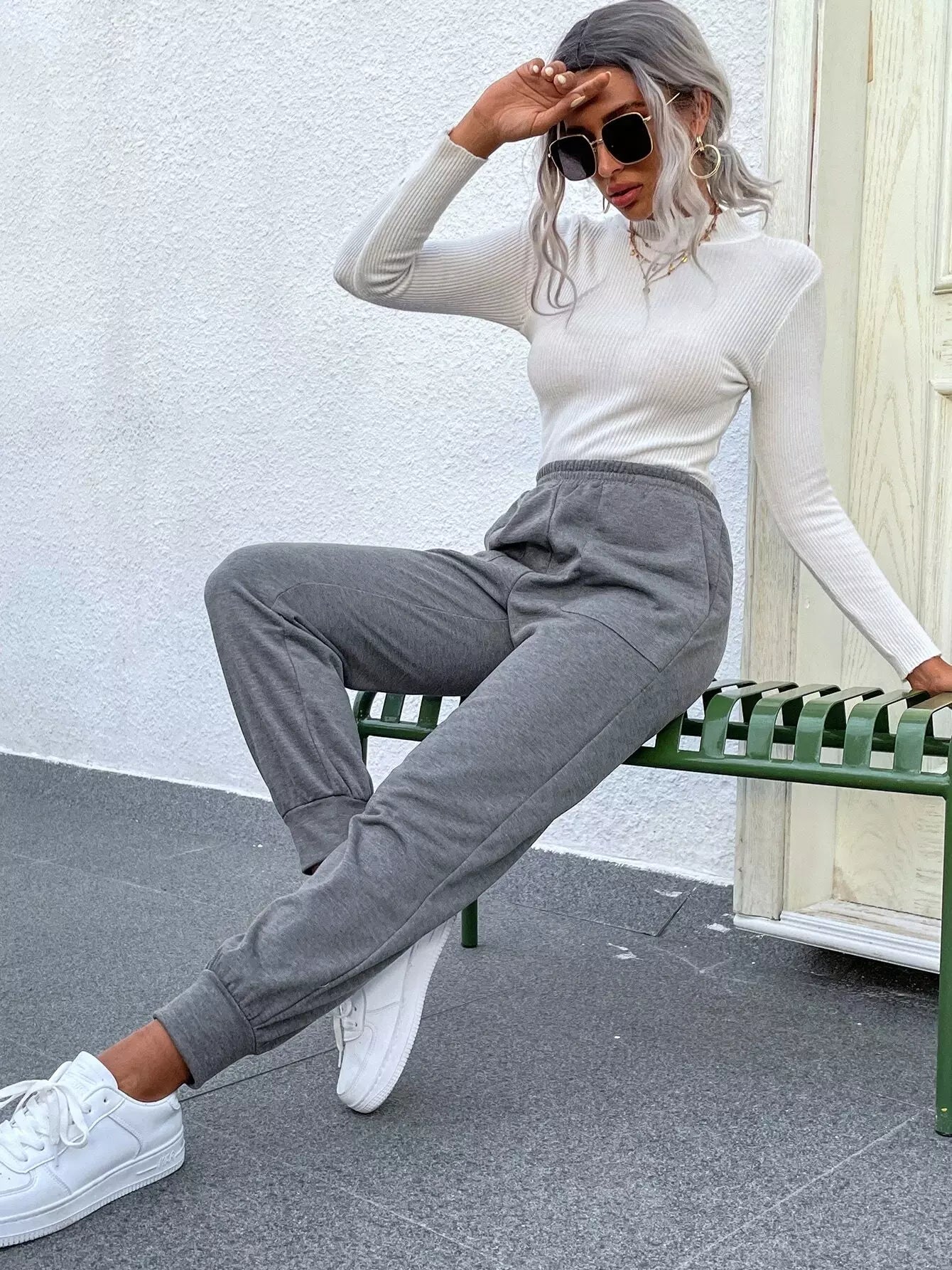 بنطال رياضي بخصر مطاطي مائل بجيب مائل