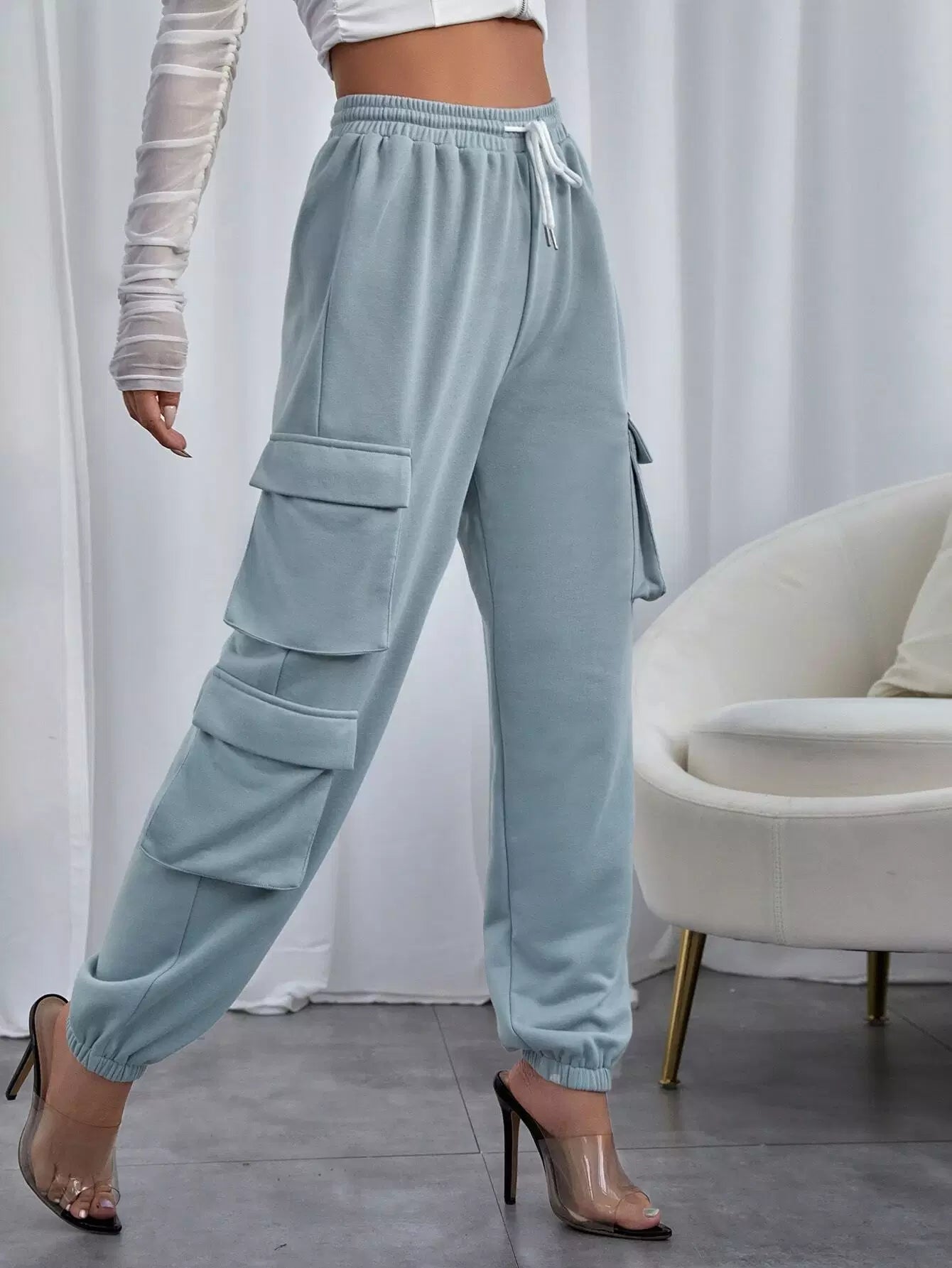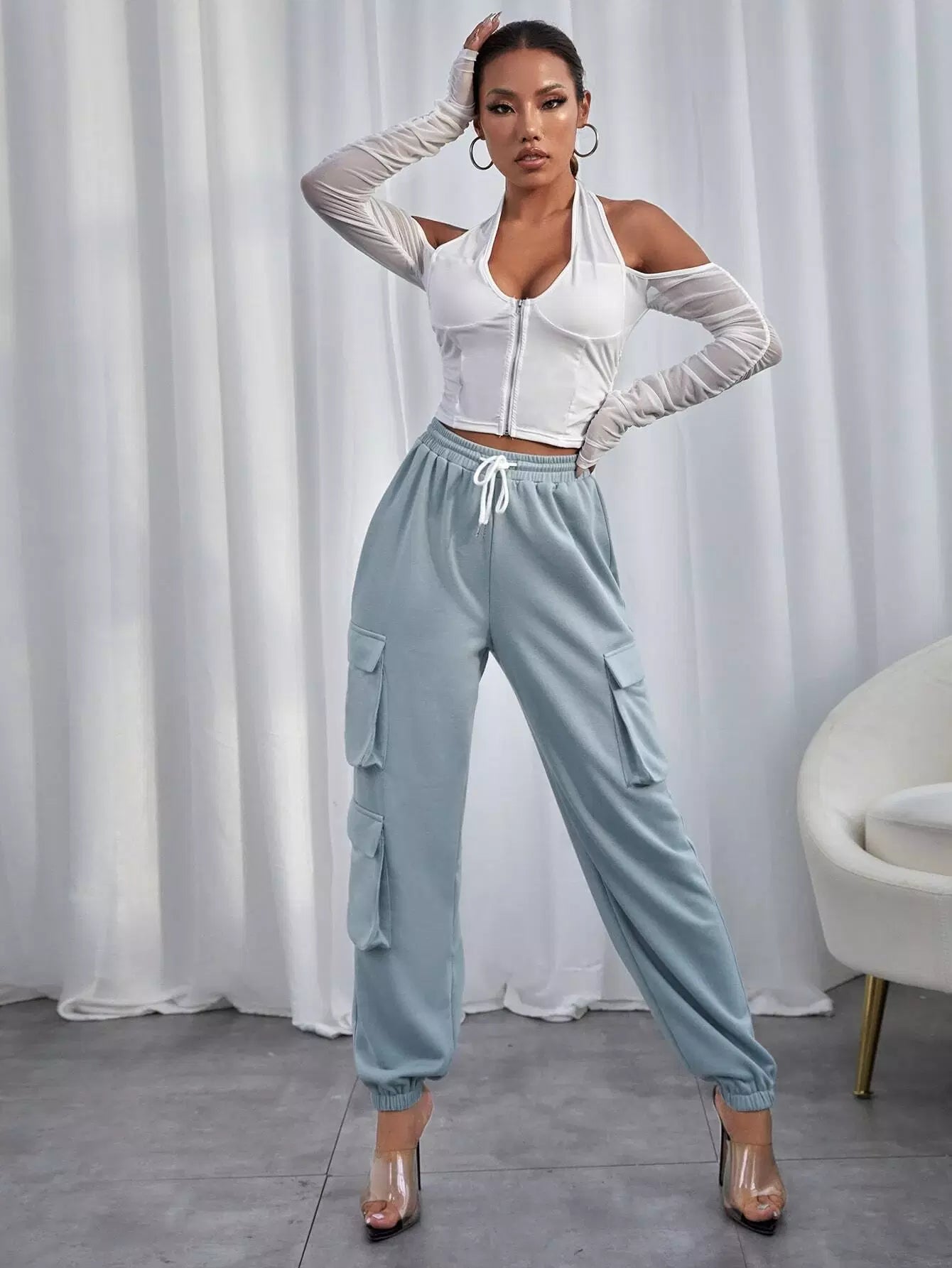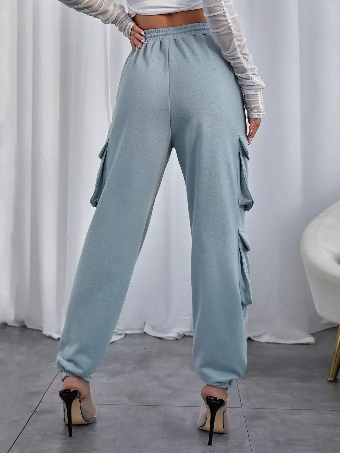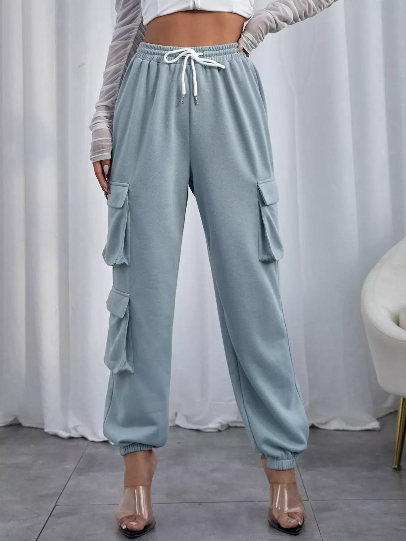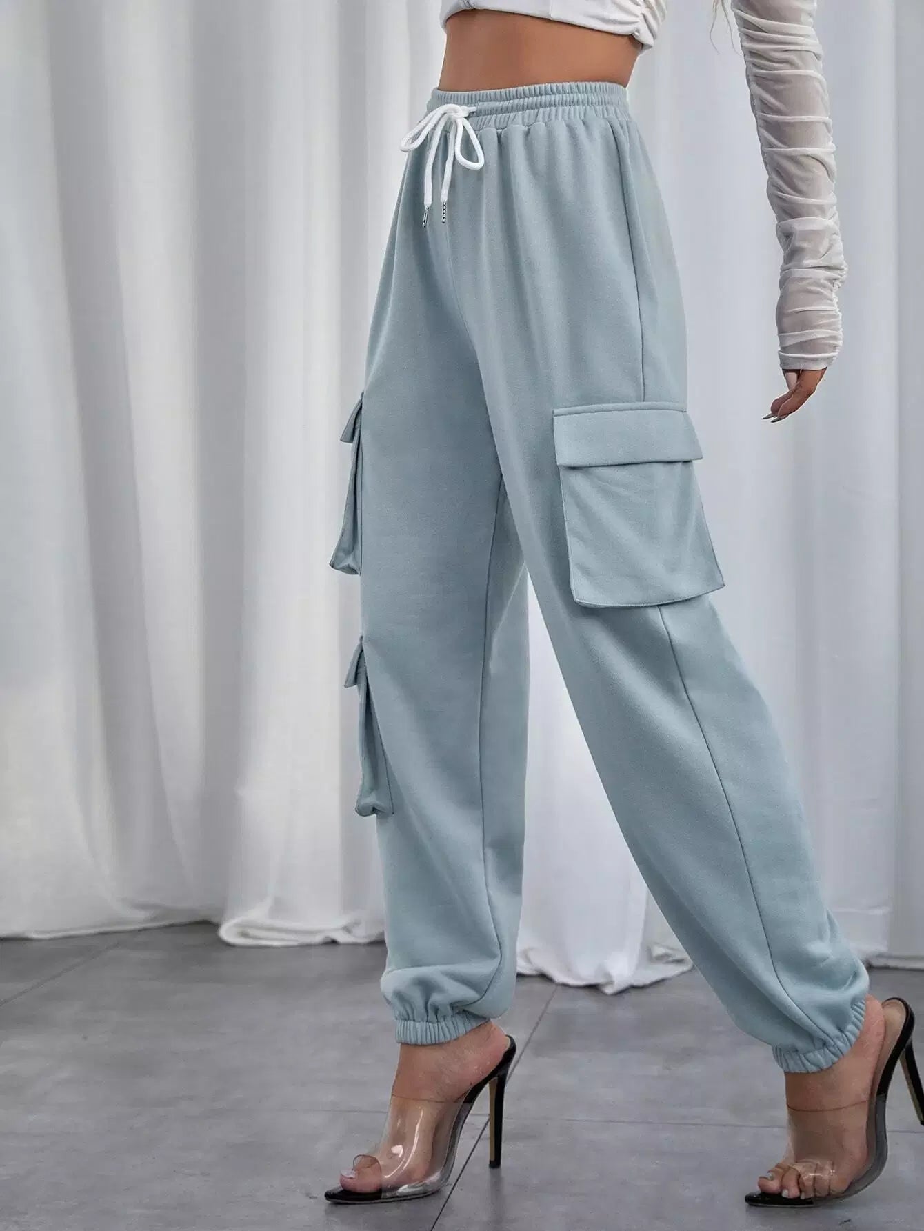 بنطال رياضي ضيق الخصر برباط بجيب بغطاء مفتوح ورباط على الخصر
