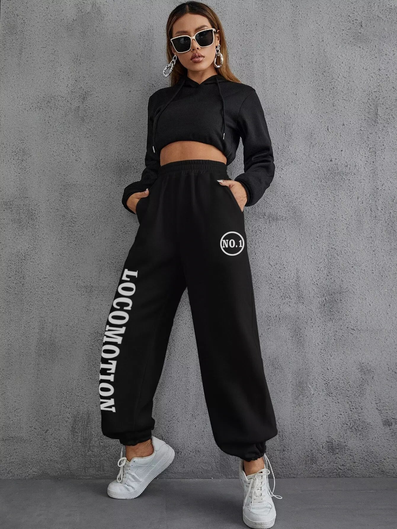 بنطلون رياضي بحاشية رباط جرافيك بحرف