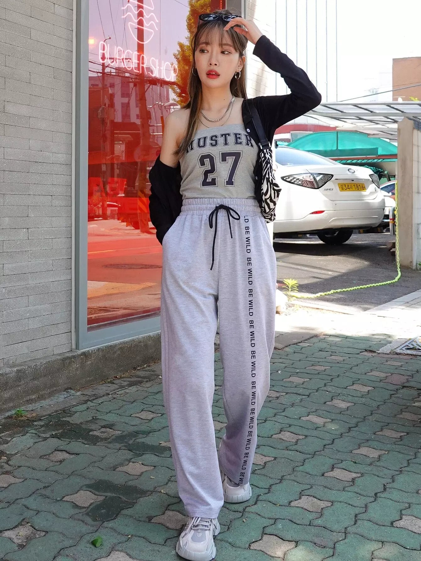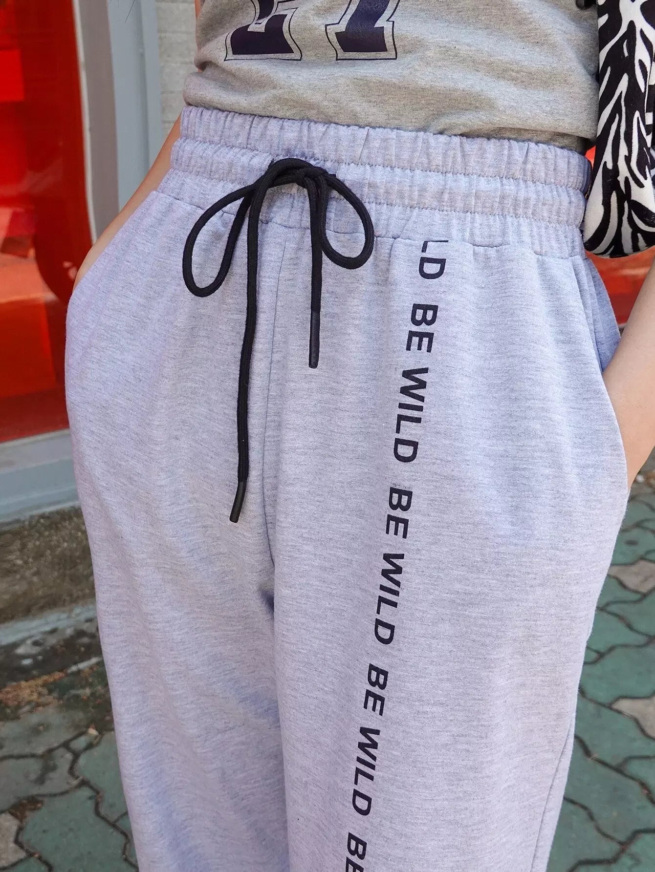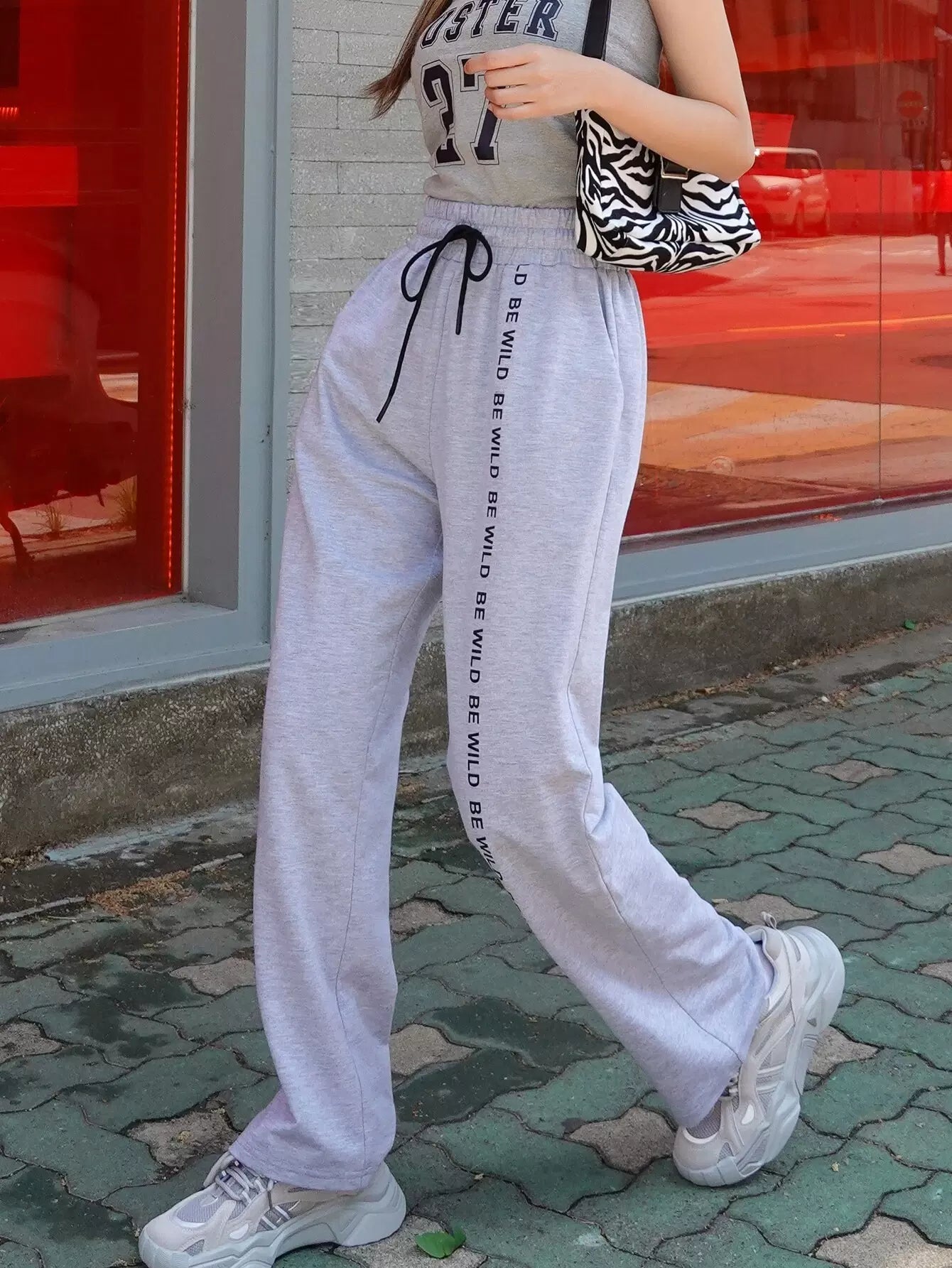 بنطلون رياضي برباط خصر برسومات على شكل حرف