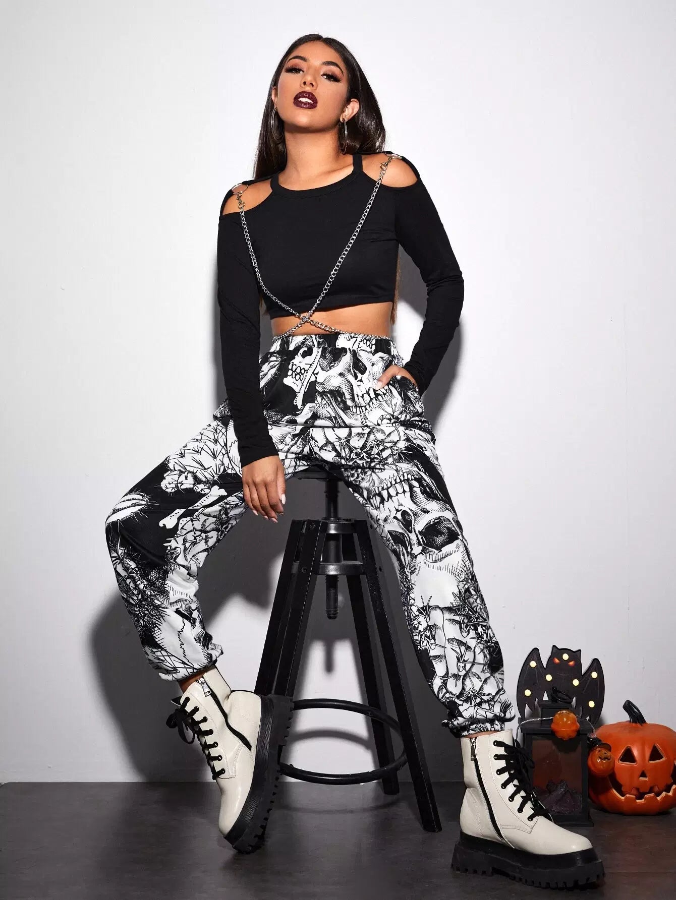 بنطال بطبعة الهالوين بجيوب مائلة