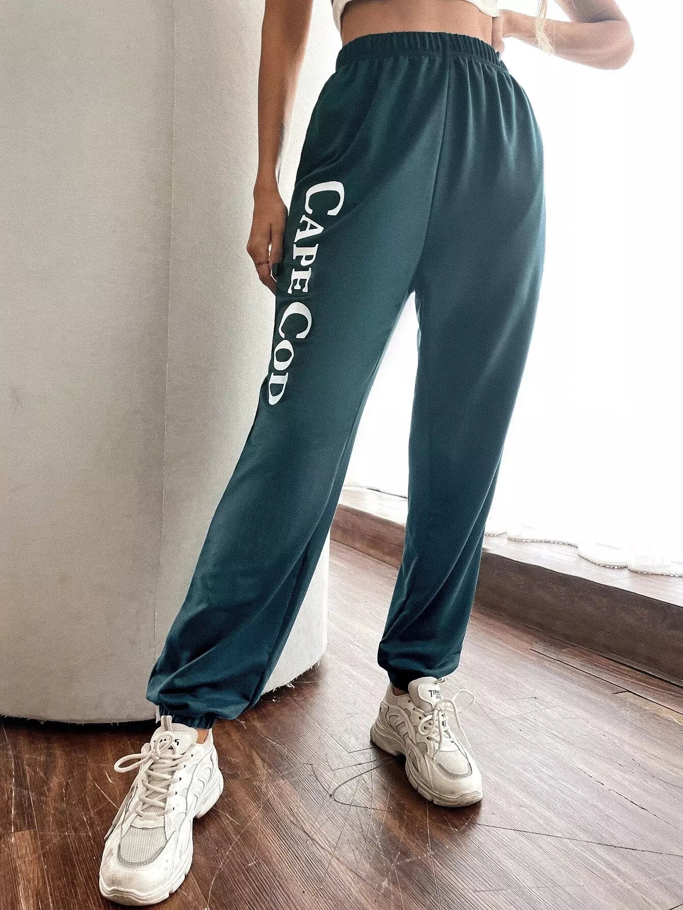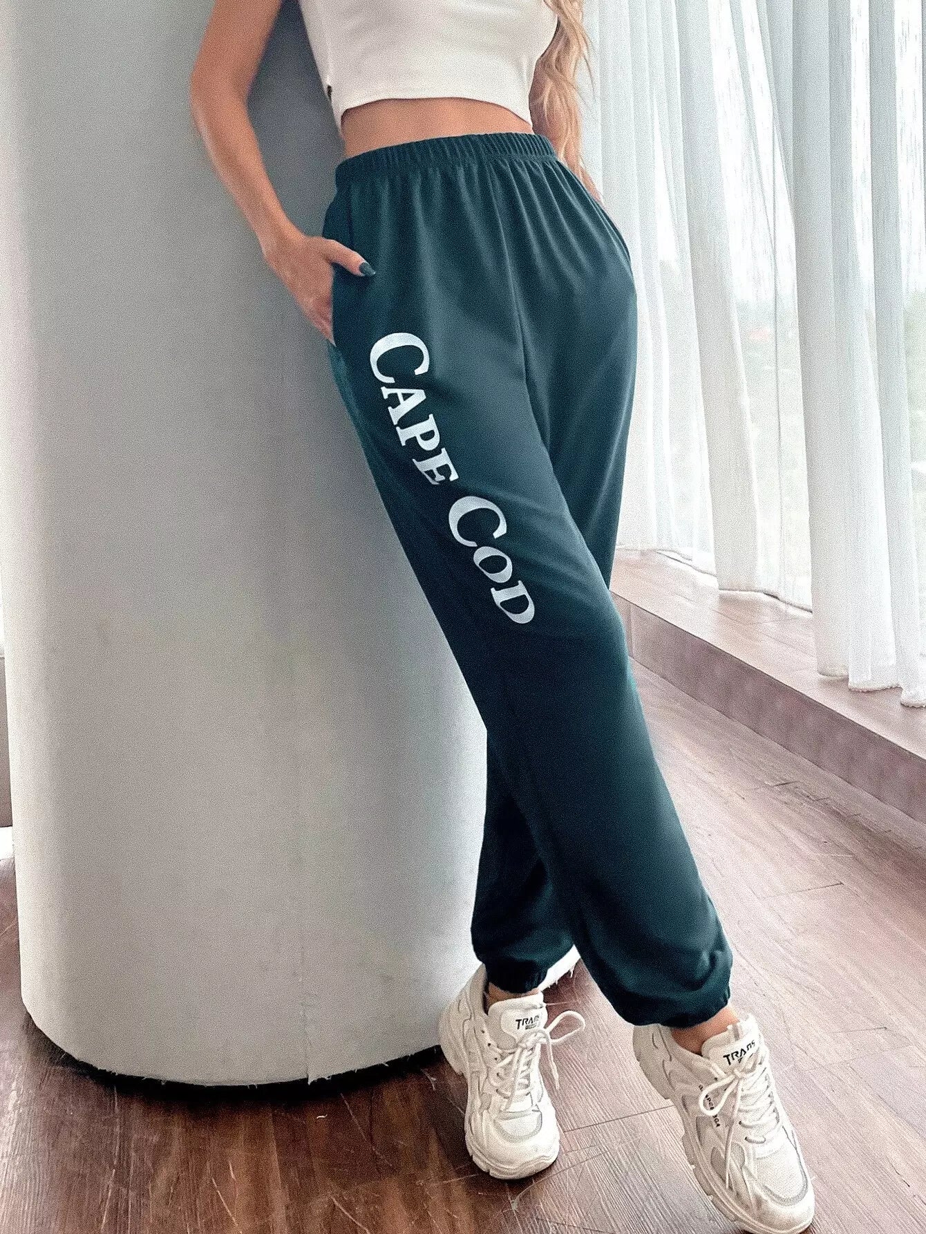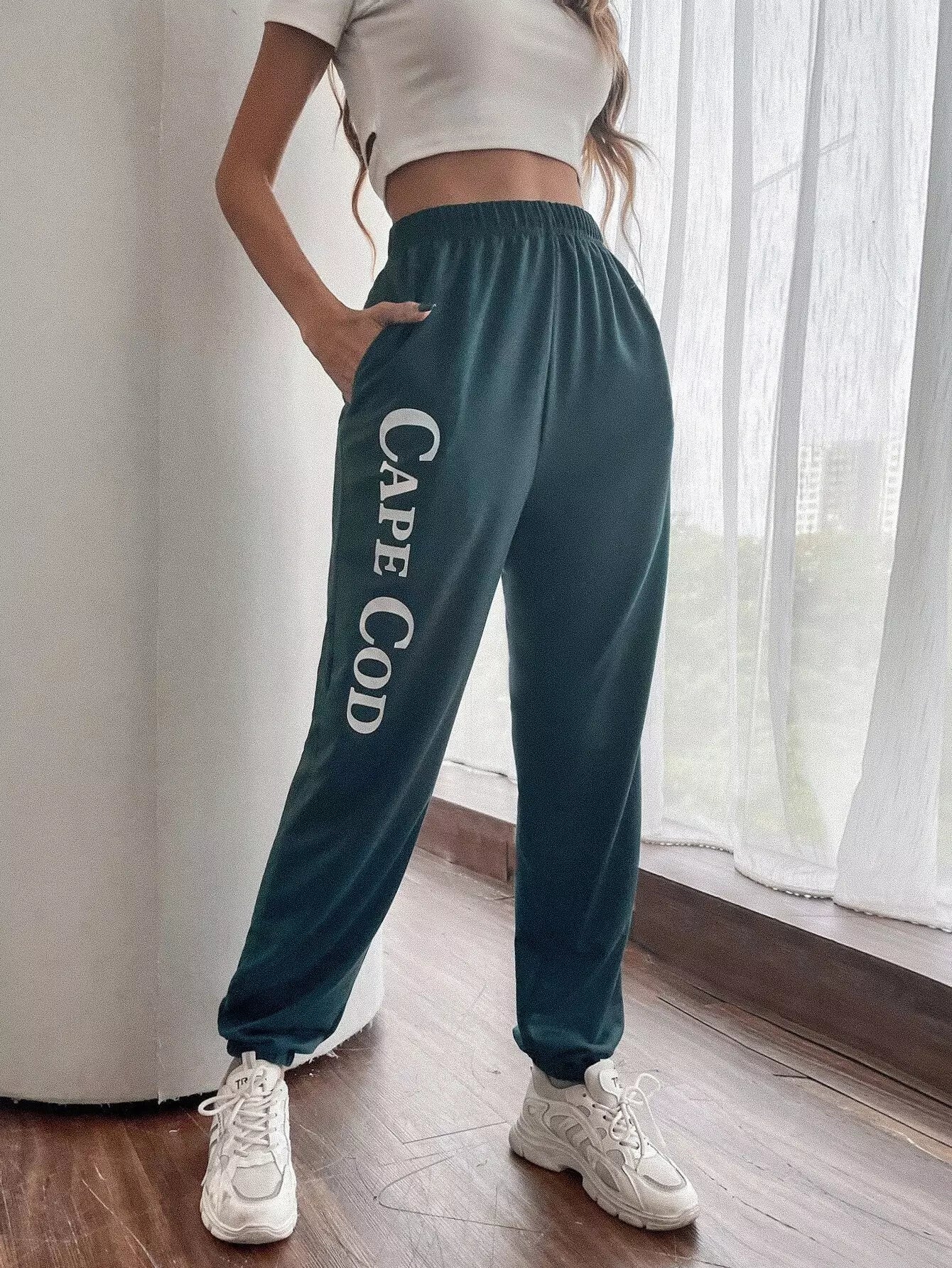 بنطلون رياضي بجيب مائل برسومات حروف مائلة