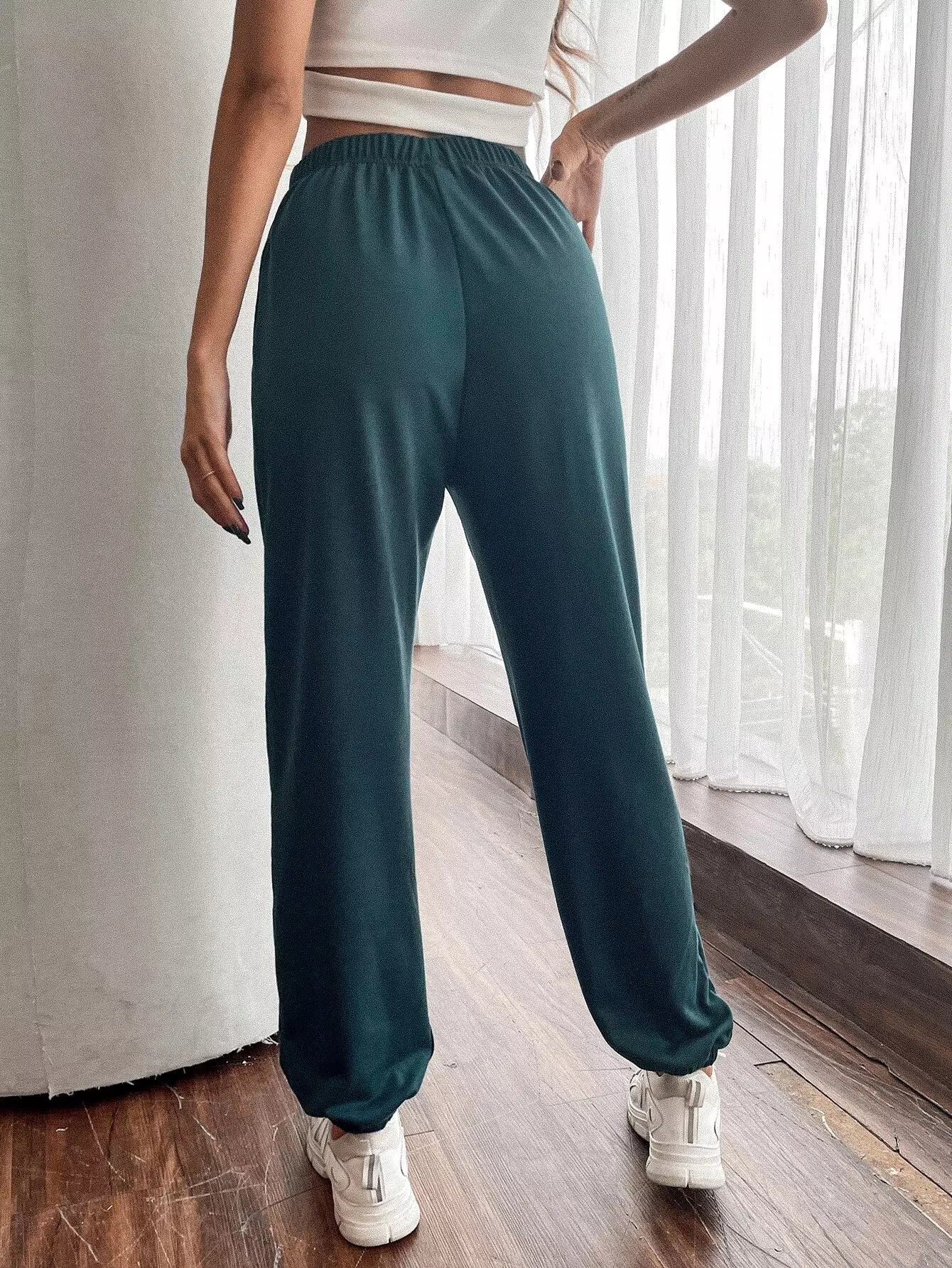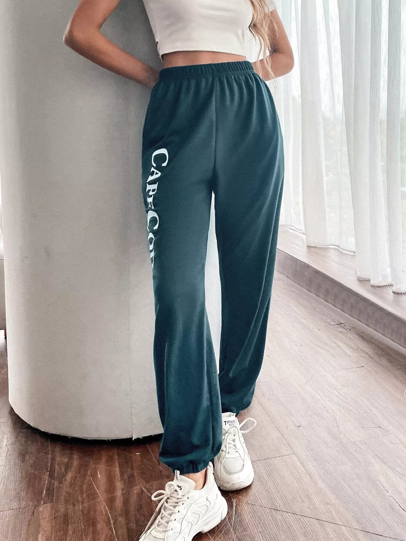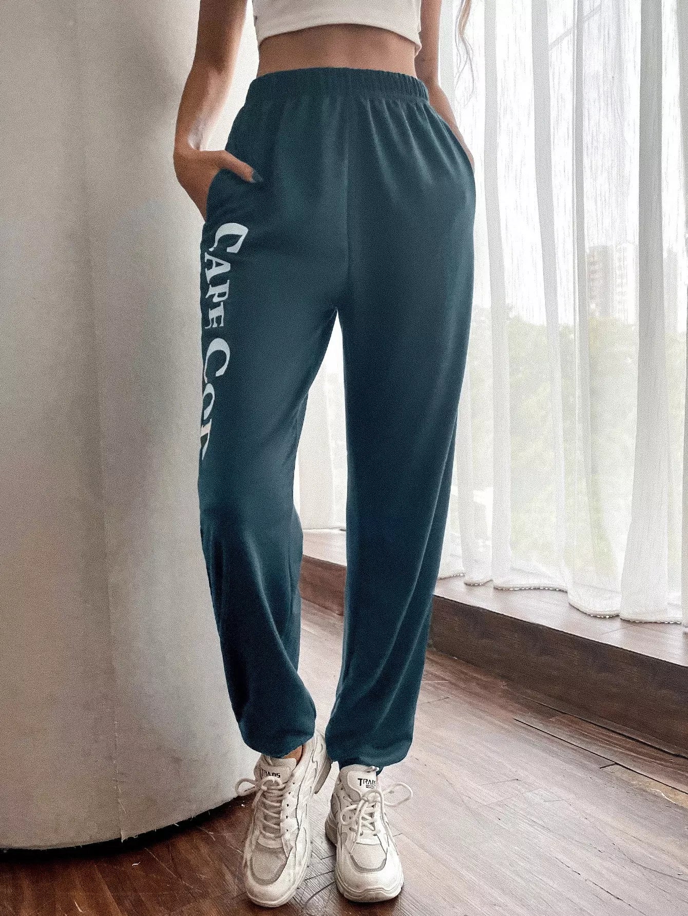 بنطلون رياضي بجيب مائل برسومات حروف مائلة