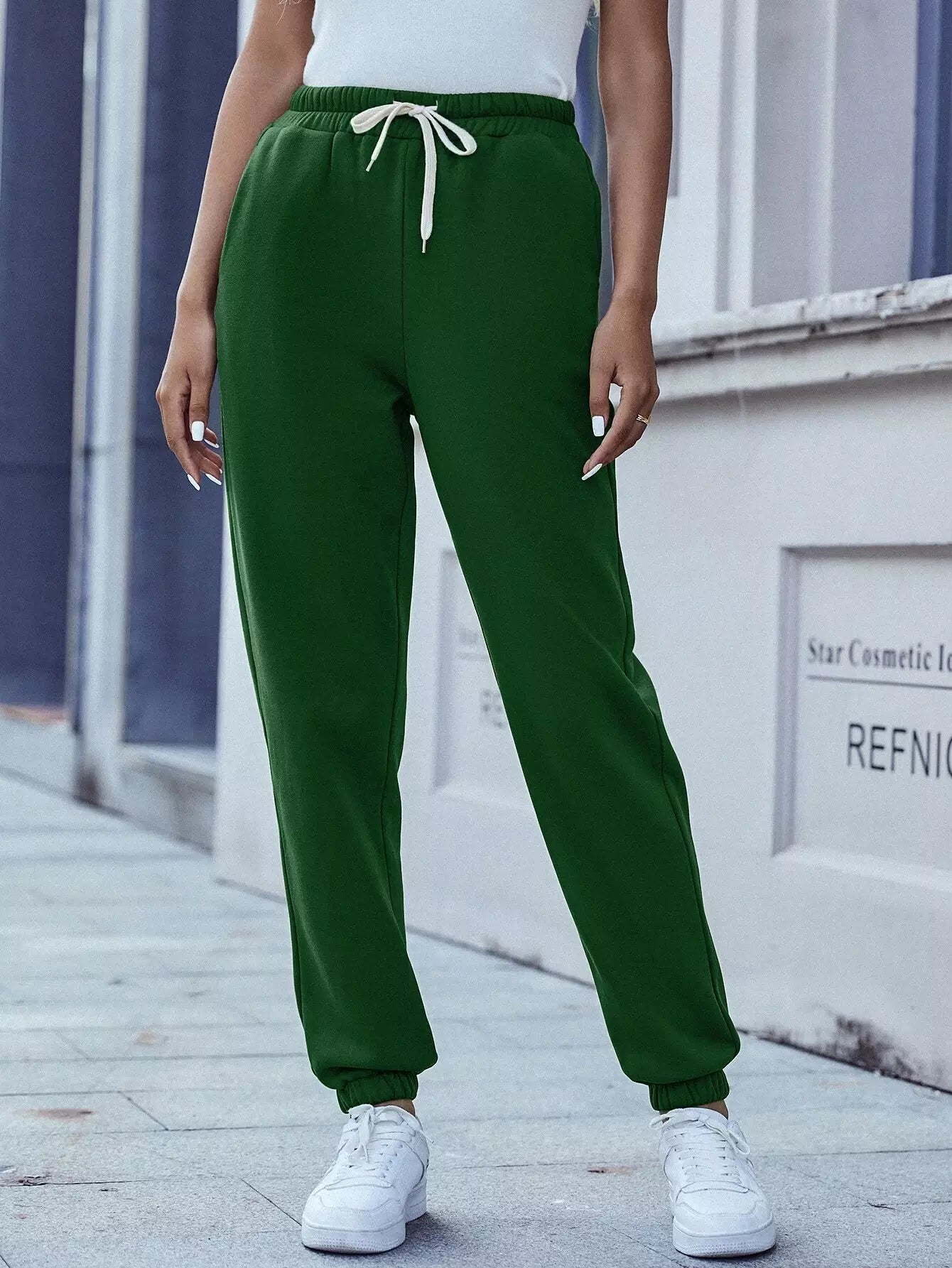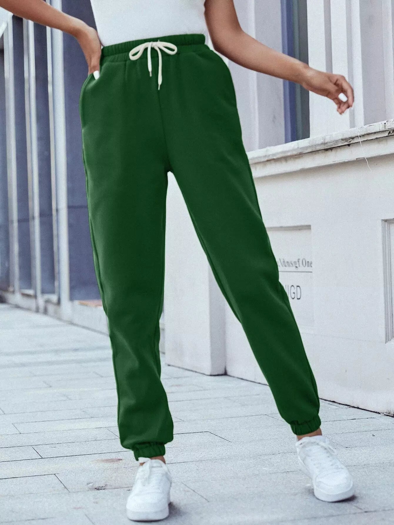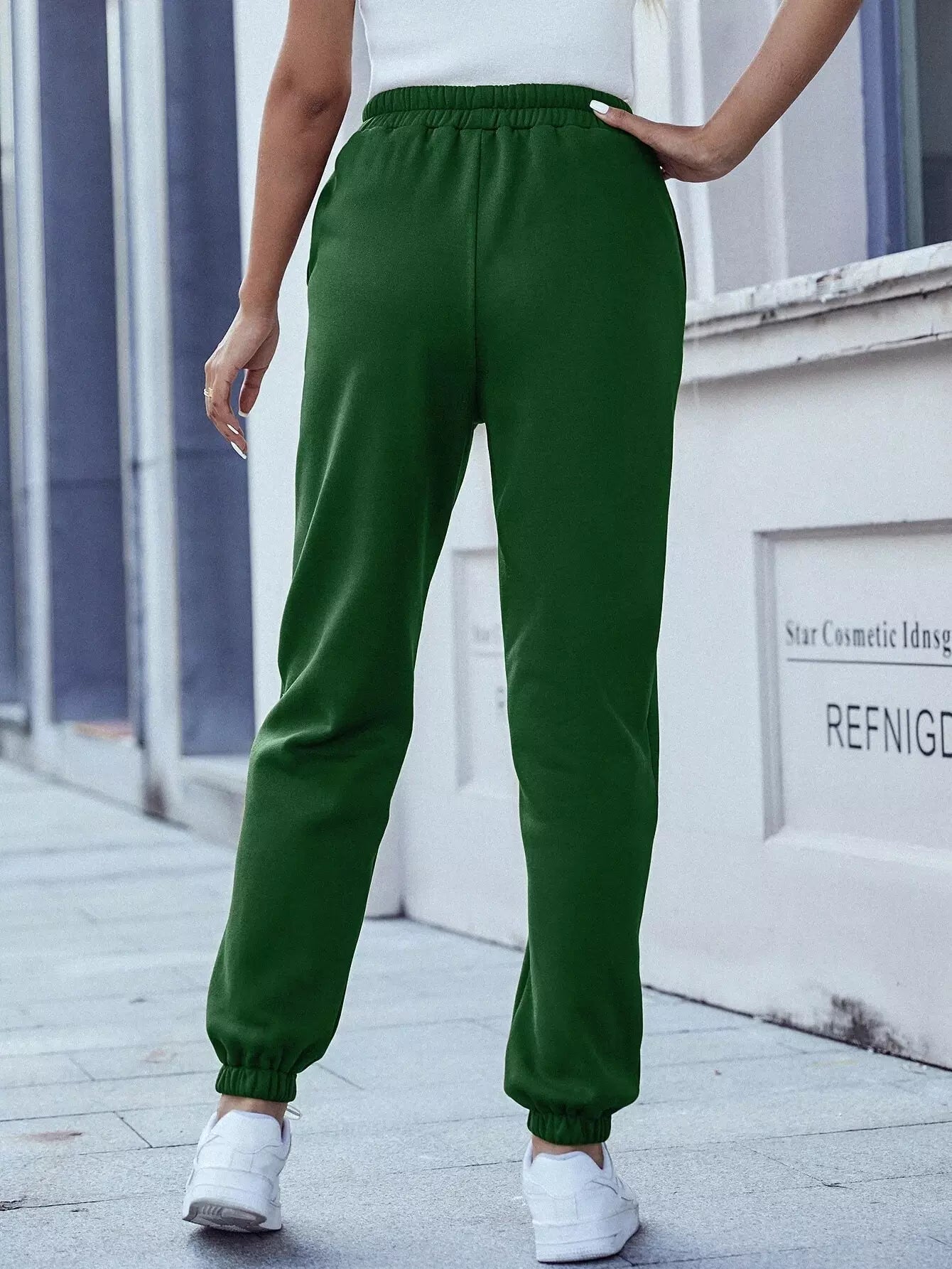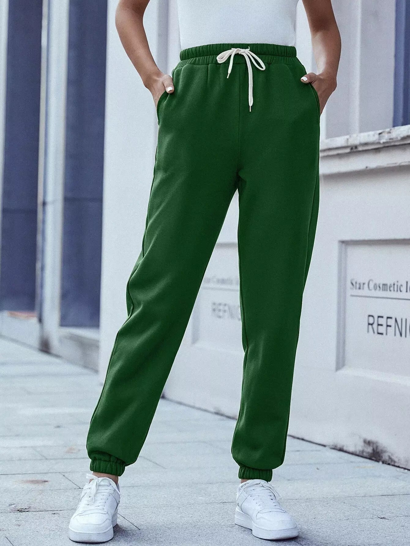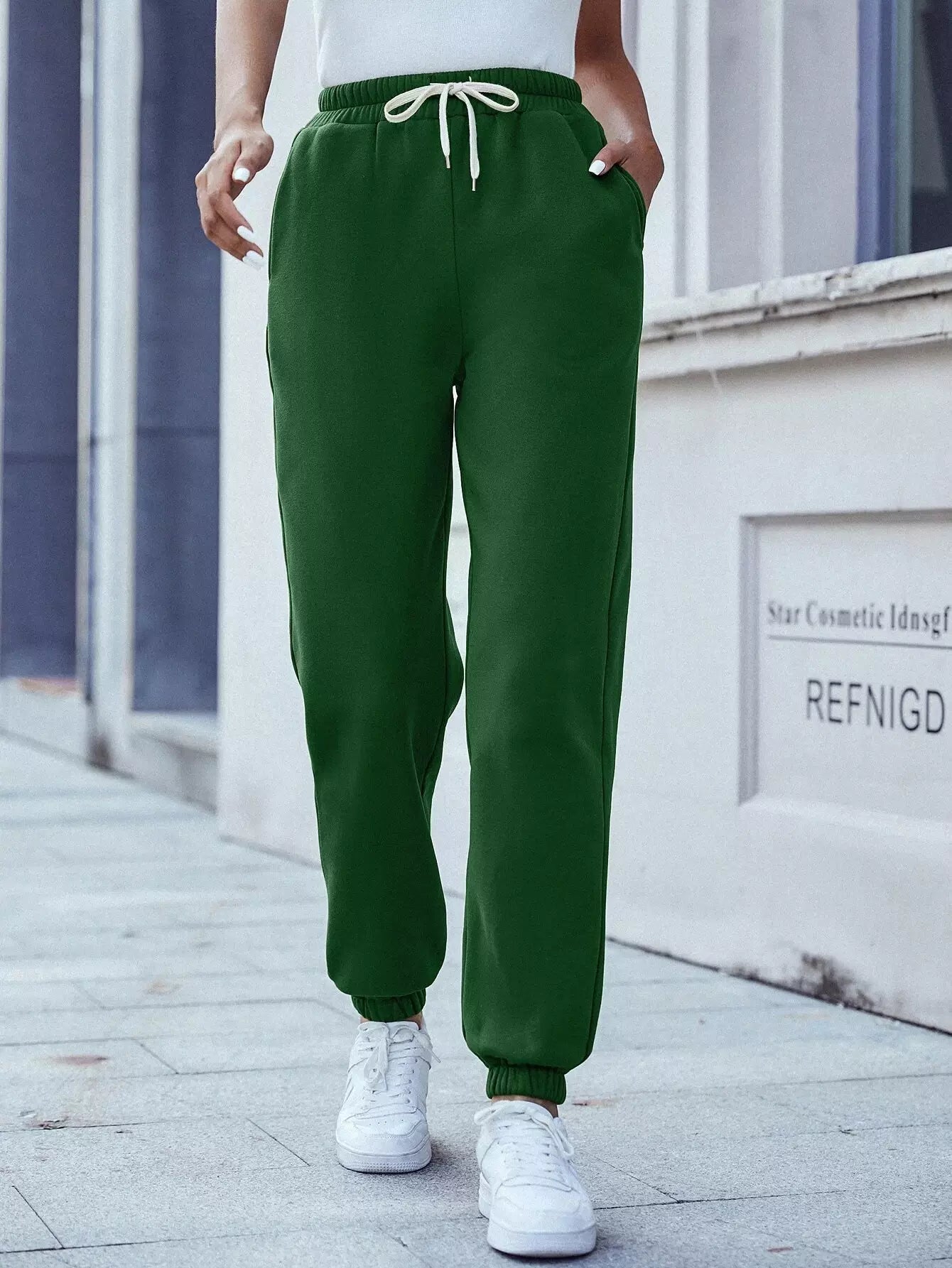 للنساء - بنطال رياضي بخصر برباط وجيوب مائلة
