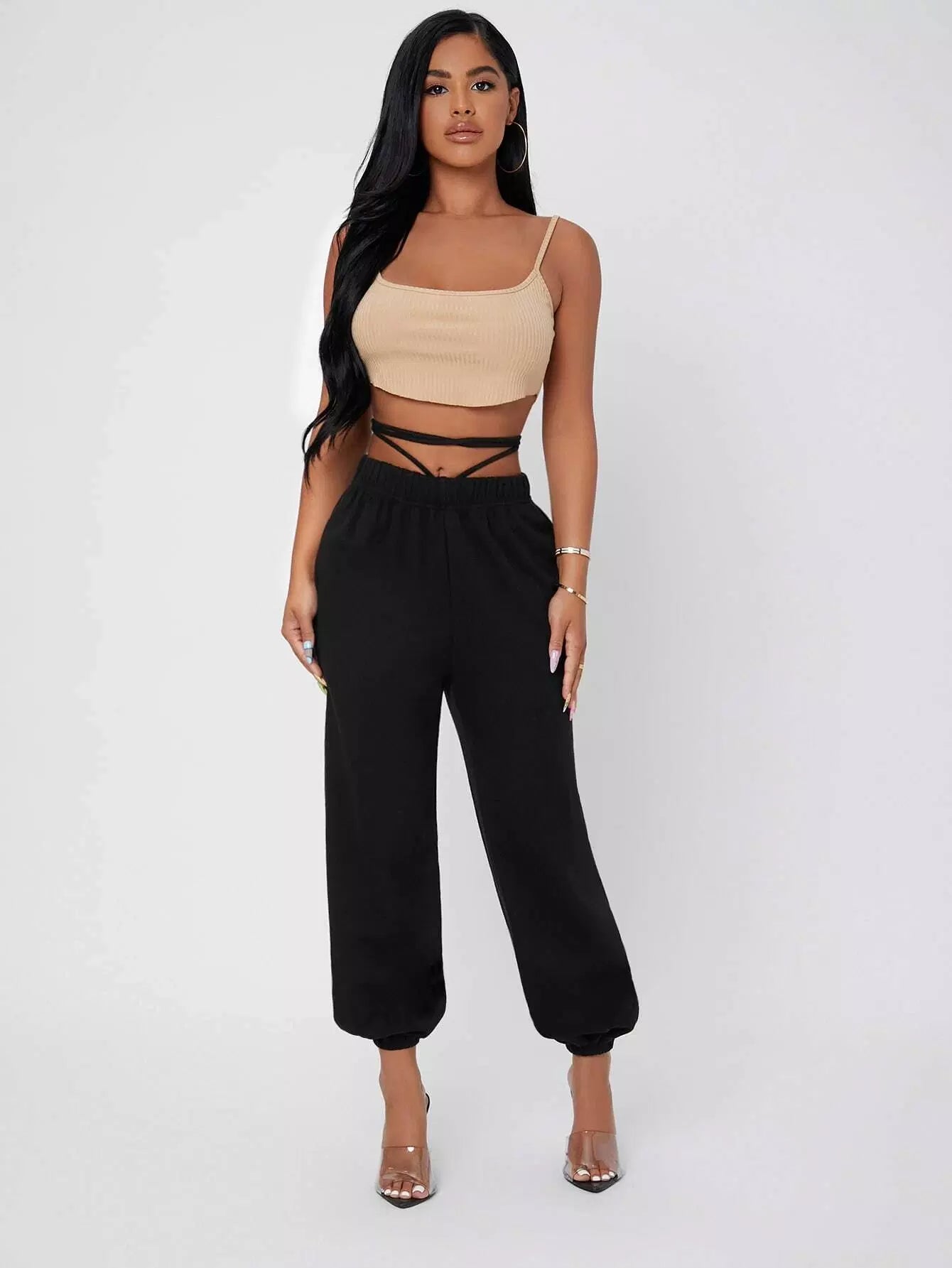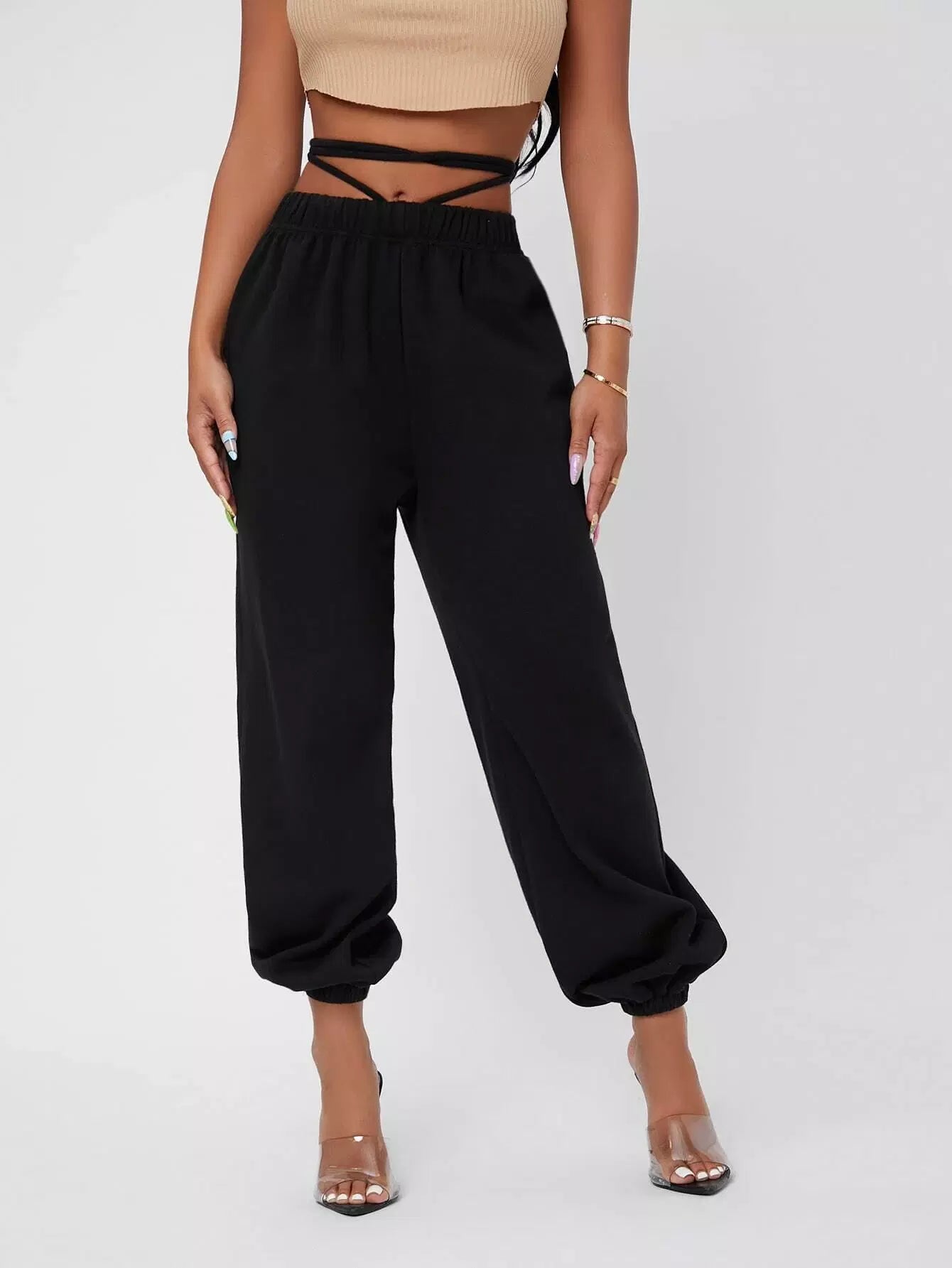 بنطال رياضي بخصر مطاطي مطاطي متقاطع برباط من الخلف