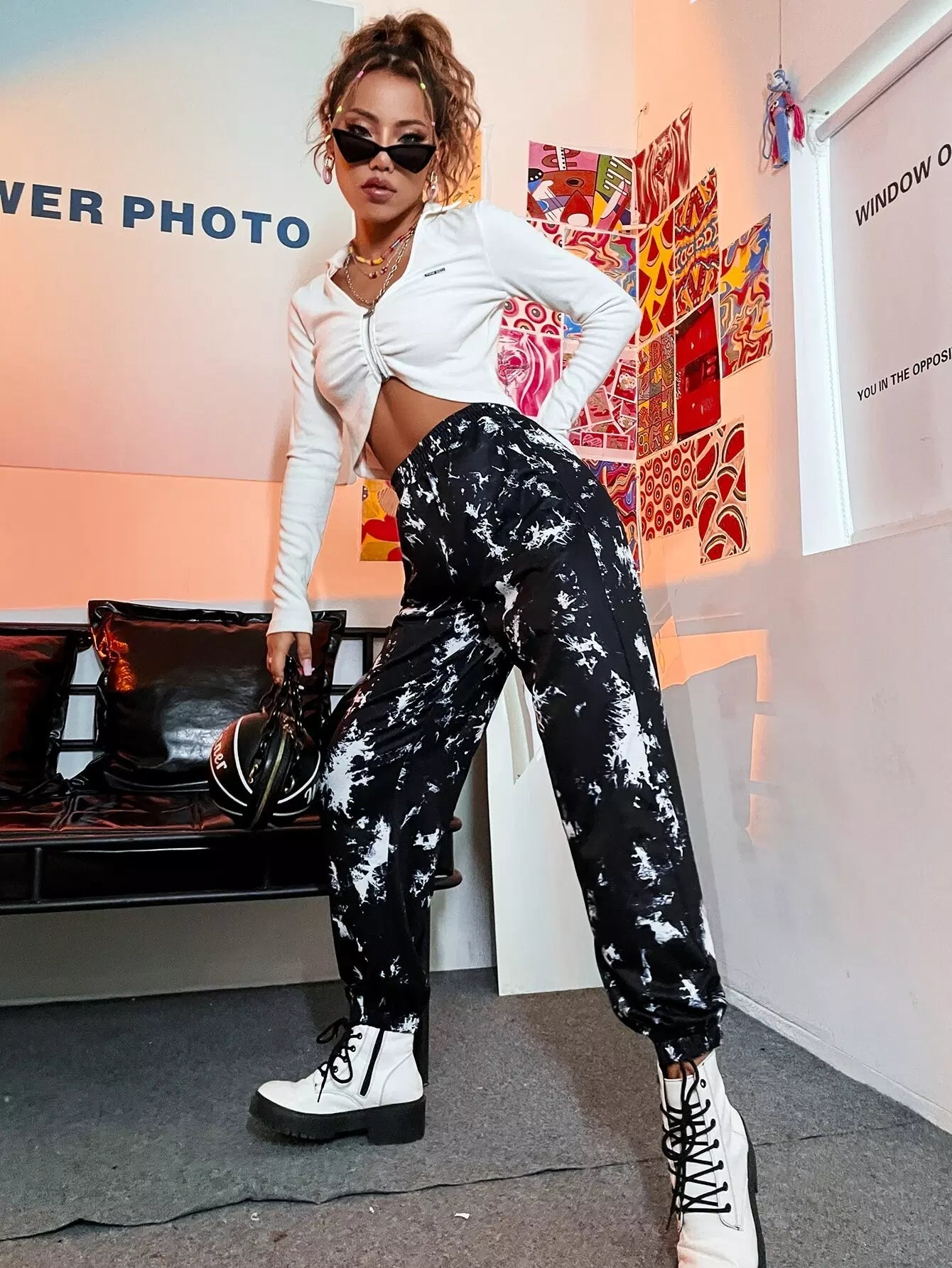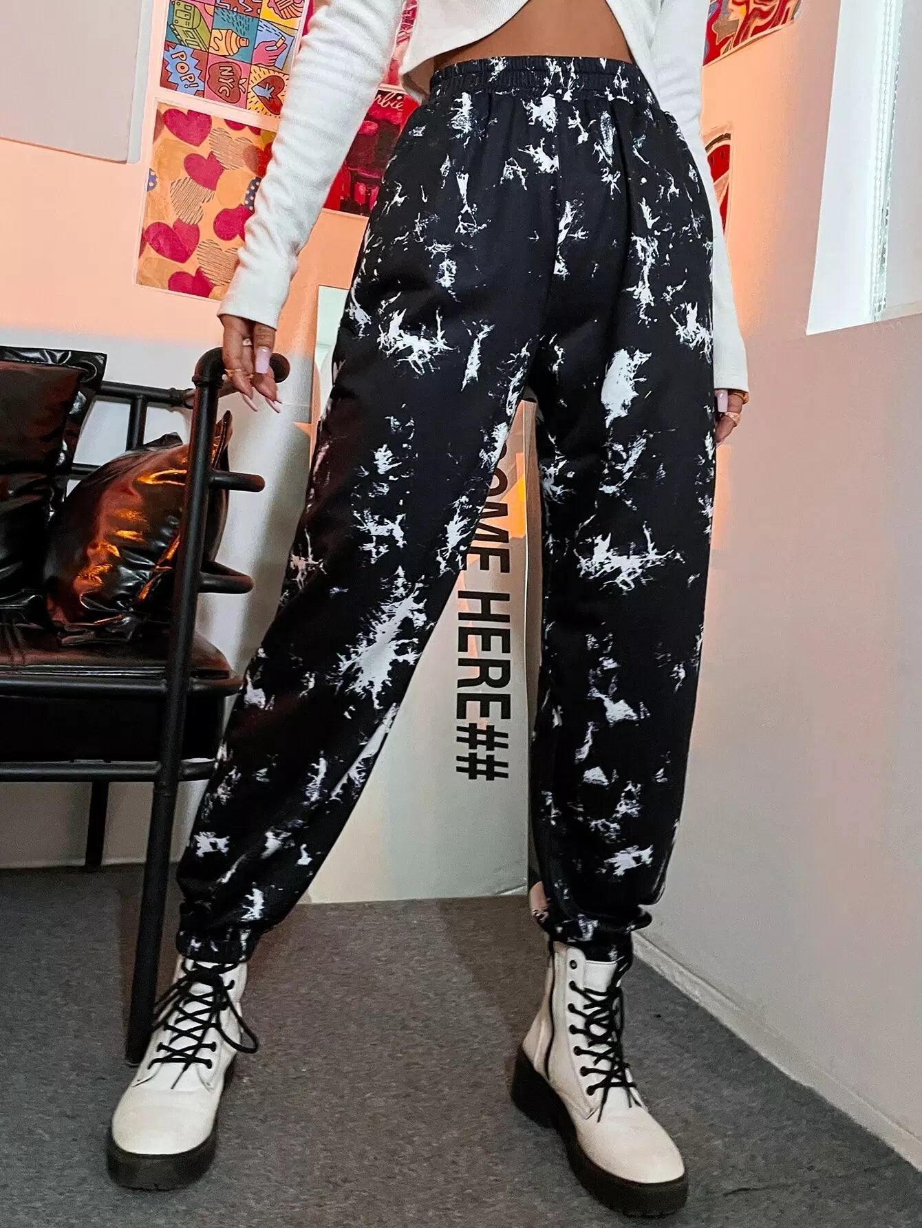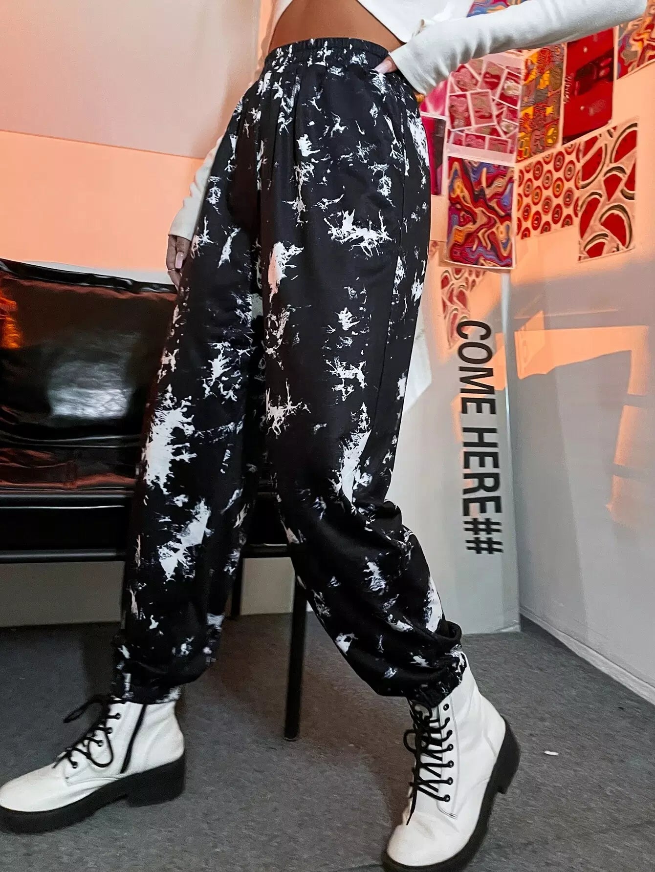 بنطلون رياضي بخصر مطاطي مصبوغ بربطة عنق مصبوغ