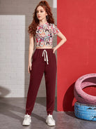 بنطلون مرقع الجيب برباط خصر بربطة عنق